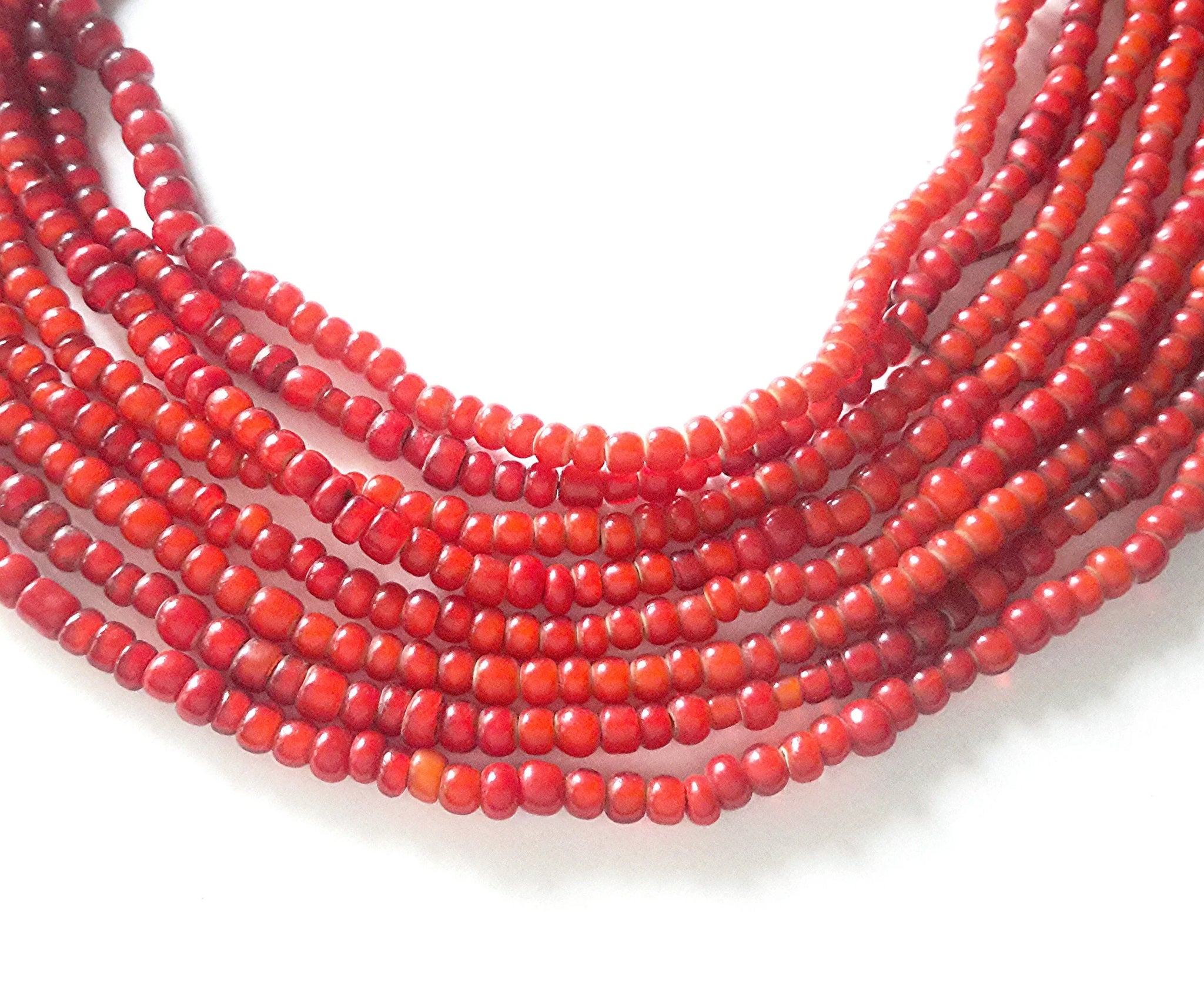 Length of Strand: 24" Beads are old beautiful rich red color to add to any of your jewelry or to just wear it alone