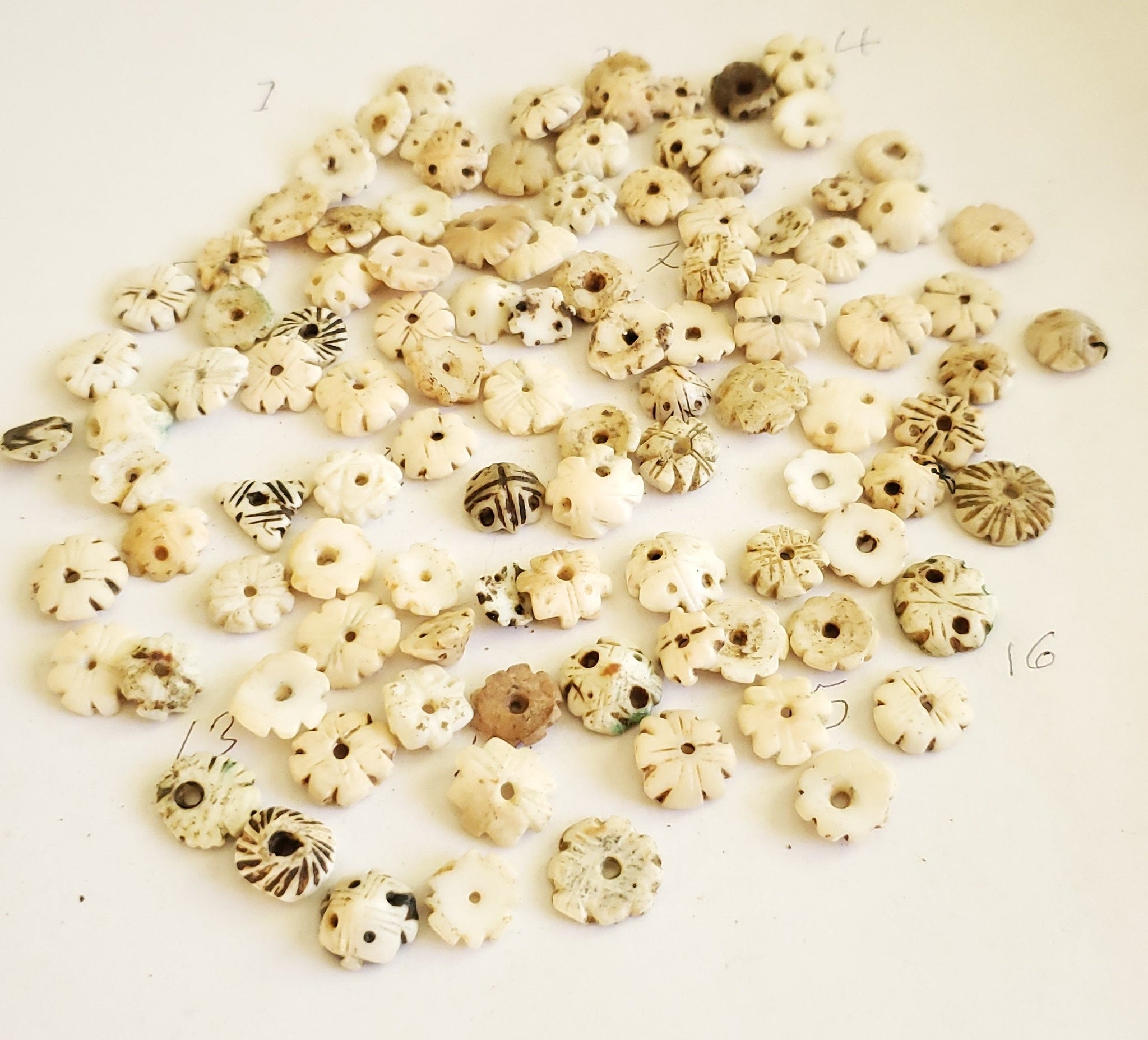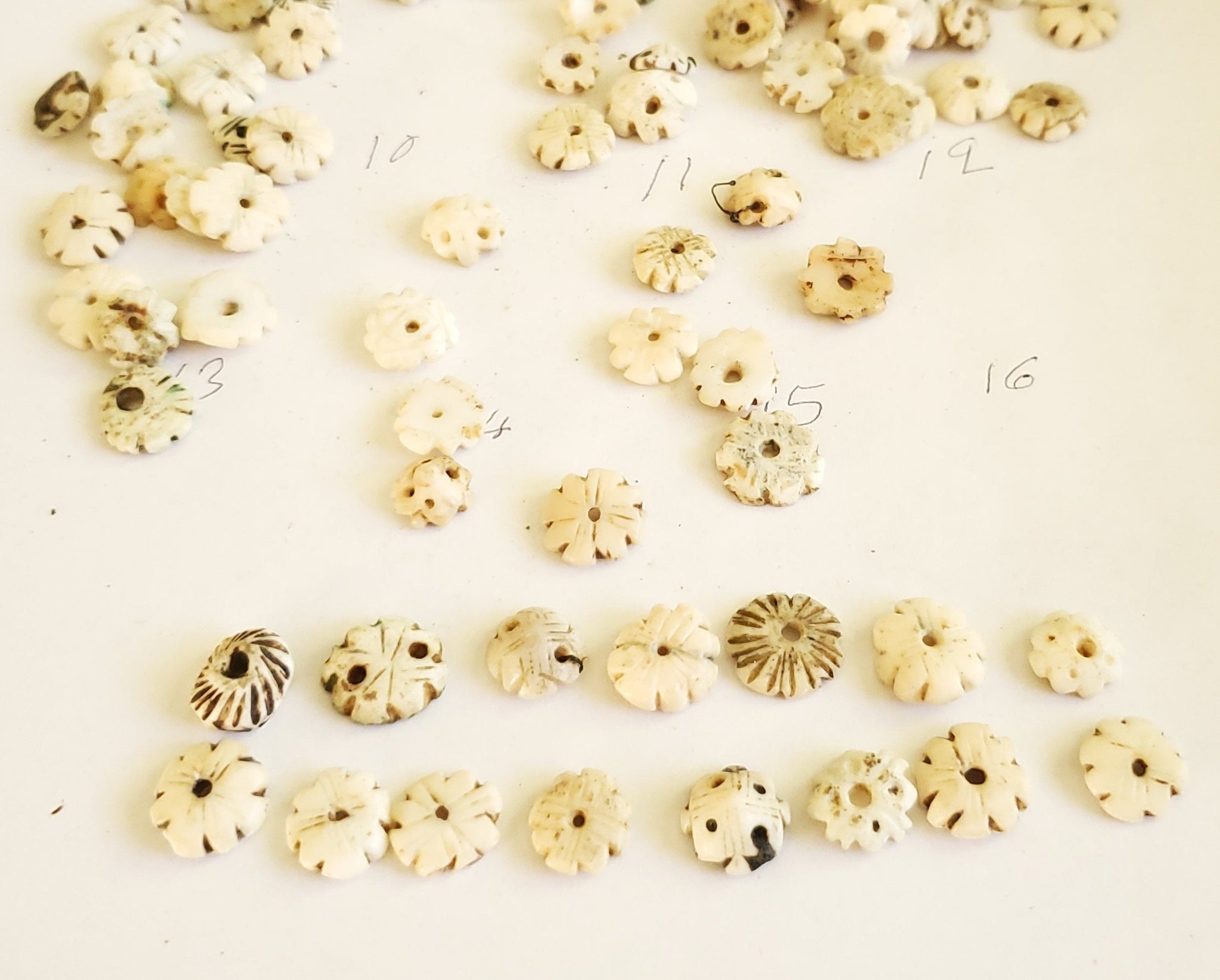 antique hand carved 13mm small shell 1 beads which were once used to designs Berber women of Mauritania used these antique hand carved shell beads to weave and braid into their hair. These shell beads were traded and used as money in Mauritania. Mostly these beads are flat backed, some being disk like and others being domed or more three-dimensional They are also used in necklaces and adornments among amber, coral, silver, glass and other beads. Hand made by cutting the base of the conus shell, grounded to give the shape and carved to made the incisions and designs. These antique rare beads would be great for using in jewelry work and also for sewing onto fabric or clothing .Measures Length 13mm by 13mm' please refer to the photos for the exact size