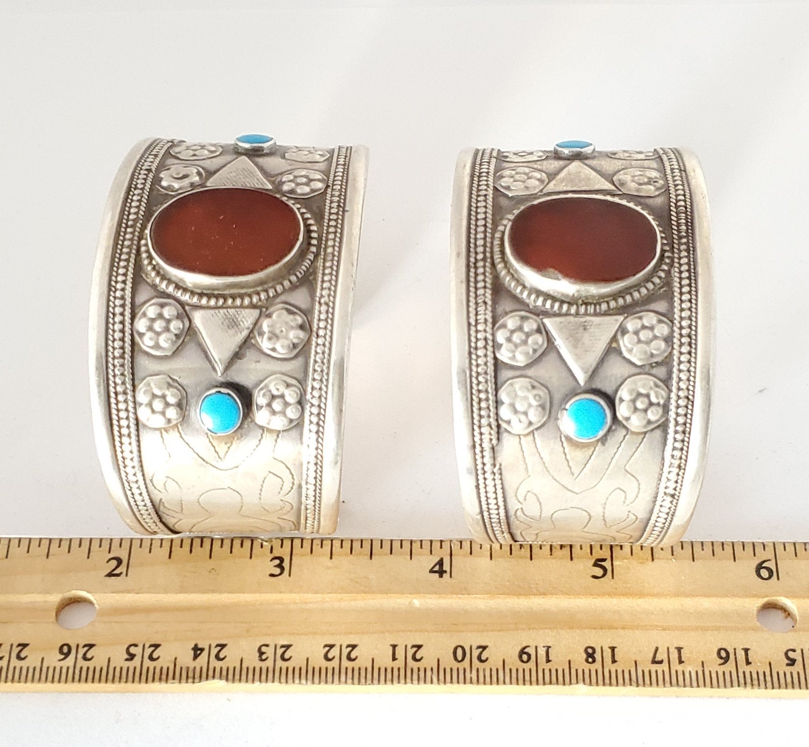 beautiful Antique Goldwashed Turkmen Tekke silver bracelet with carnelian .