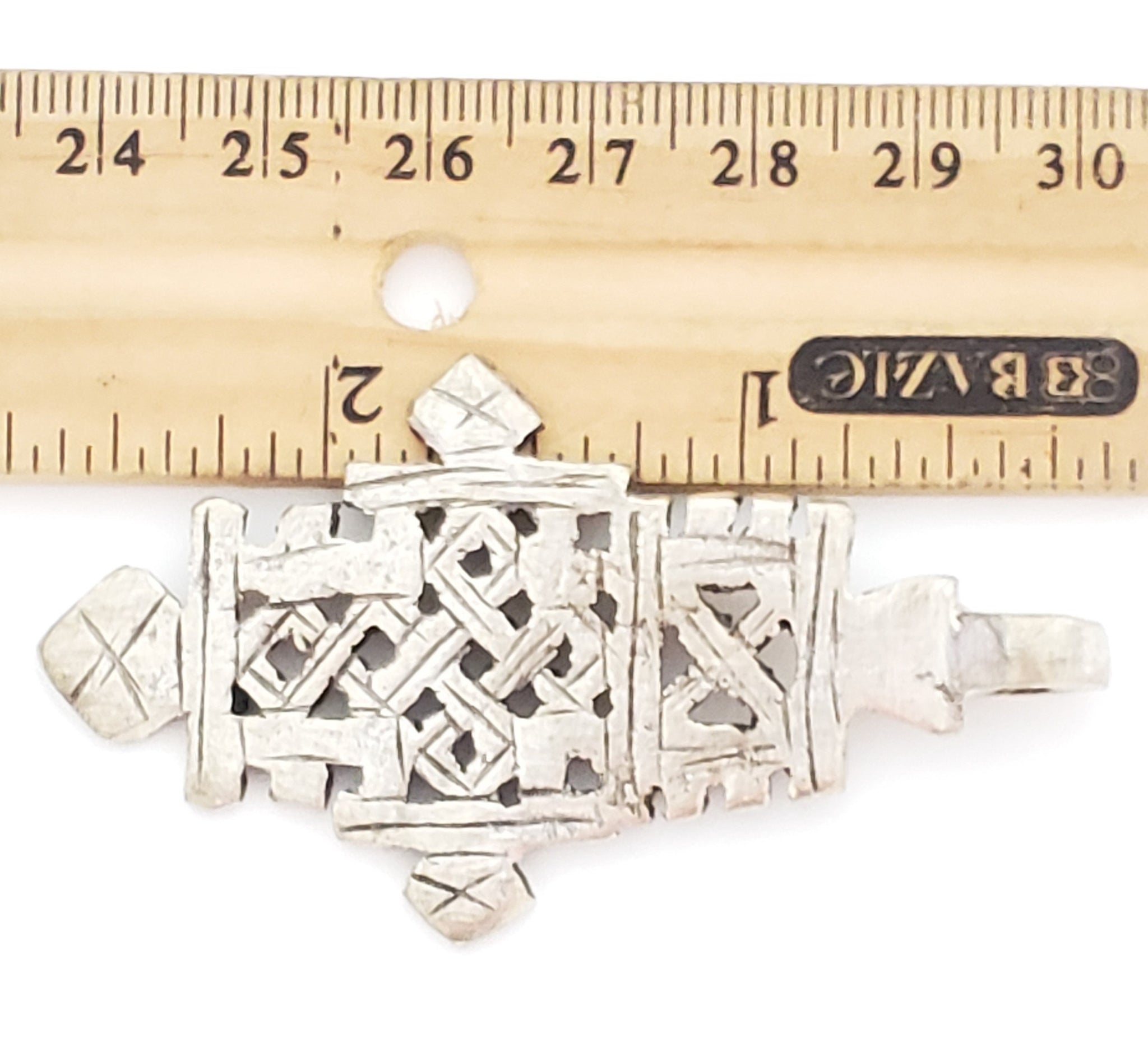 beautiful handmade Ethiopian cross pendant made of steel. In Ethiopia particularly among Orthodox Church followers, to wear a cross implied to be protected by the lord himself as well as to show that they are a devoted Christian. Neck or pictorial crosses are tied round their owner's neck with a piece of blue thread or cord, which was sometimes given to the wearer at baptism. This particular cross pendants they have not been used. Measures approximatelty 2" x 1''.5 long condition Collectible other shop https://www.etsy.com/shop/Africanbazar2US?ref=seller-platform-mcnav