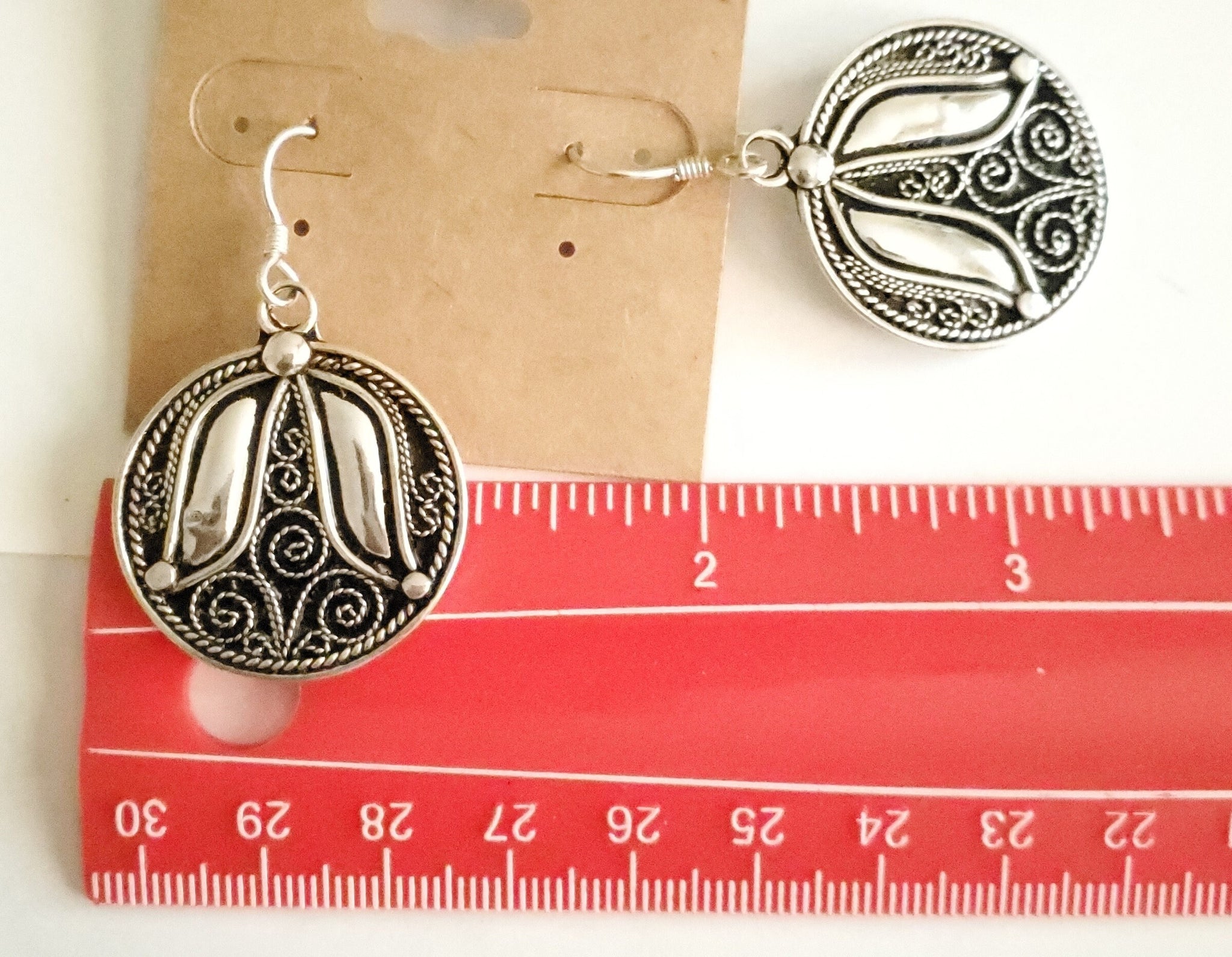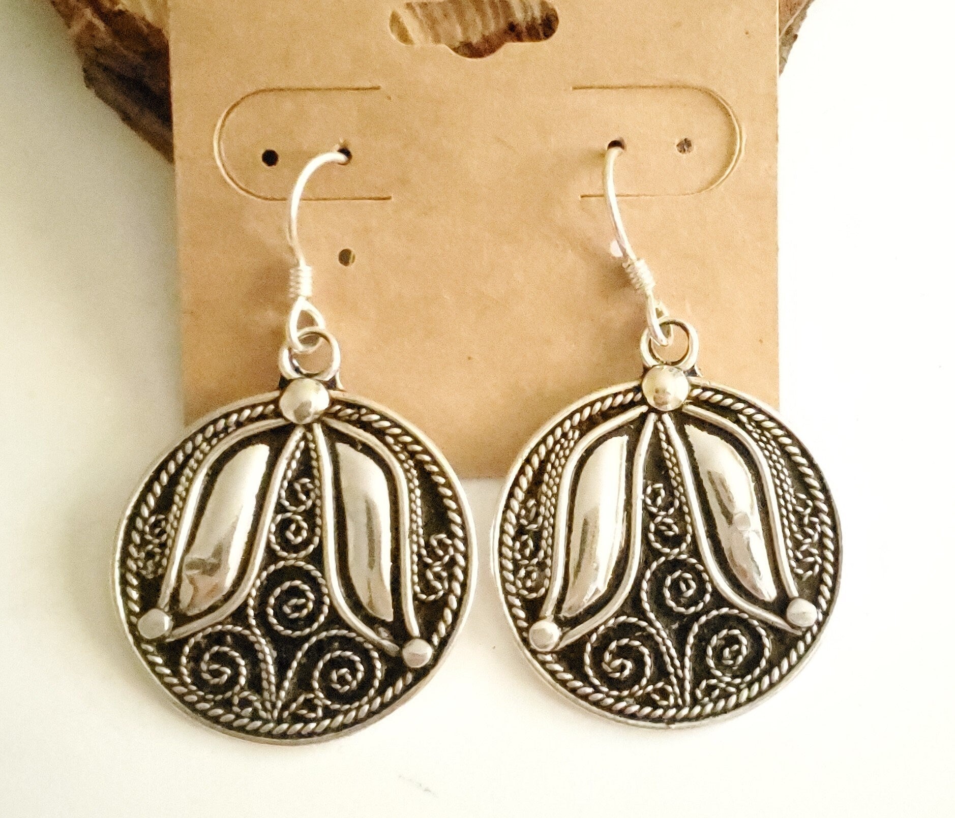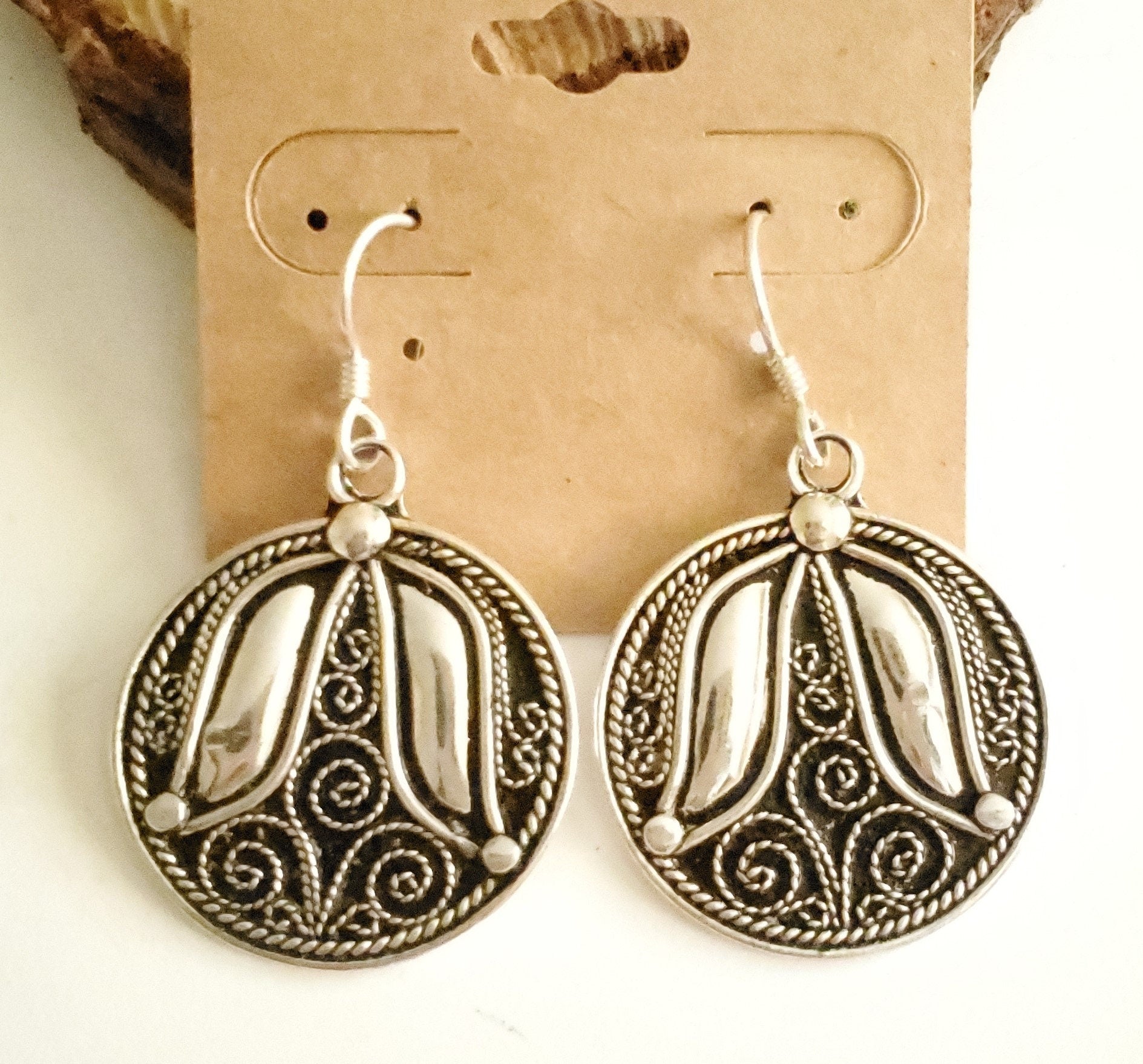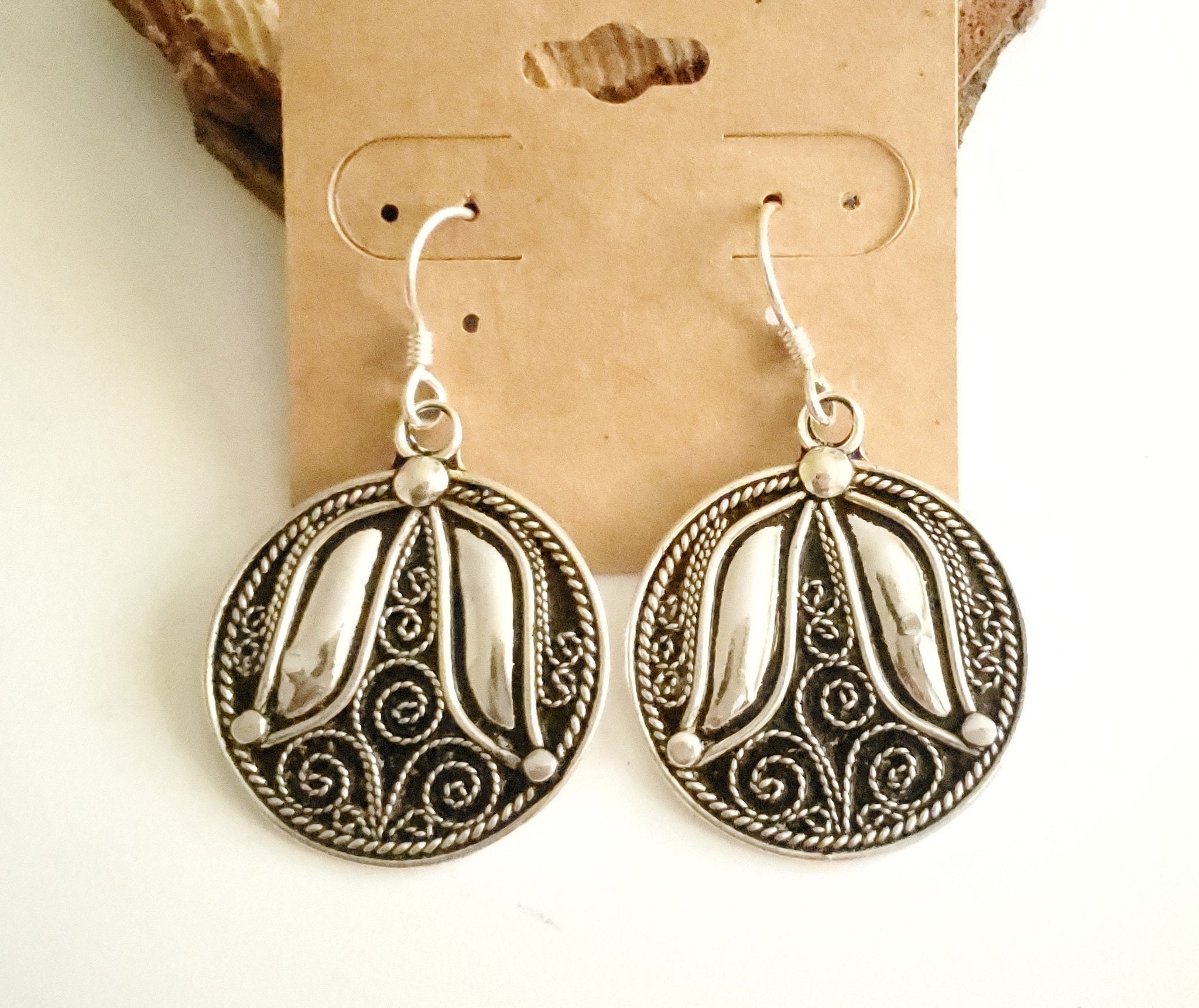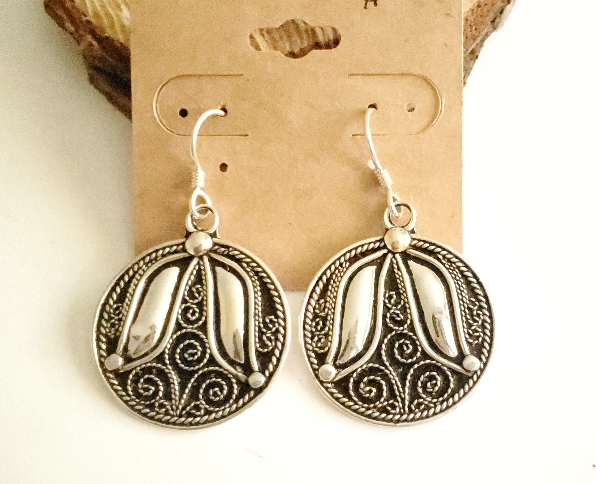 Moroccan Berber Filigree Sterling Silver Dangle Earrings This is a great authentic Filigree jewelry from Morocco. Each earring measures just over 1.5" long and just under 1''.5 wide./ 13.gr The workmanship is wonderful .These earrings were hand made sterling silver 925 new high-silver content if you have any questions - Feel free to contact me. . Thank you for visiting my shop All my jewelry has been collected over 20 years ago .I will be listing more pieces shortly as I am constantly always working on posting more. piece to add to the collection .I ship all over the world and price includes a tracking service........africanbazaarus.com