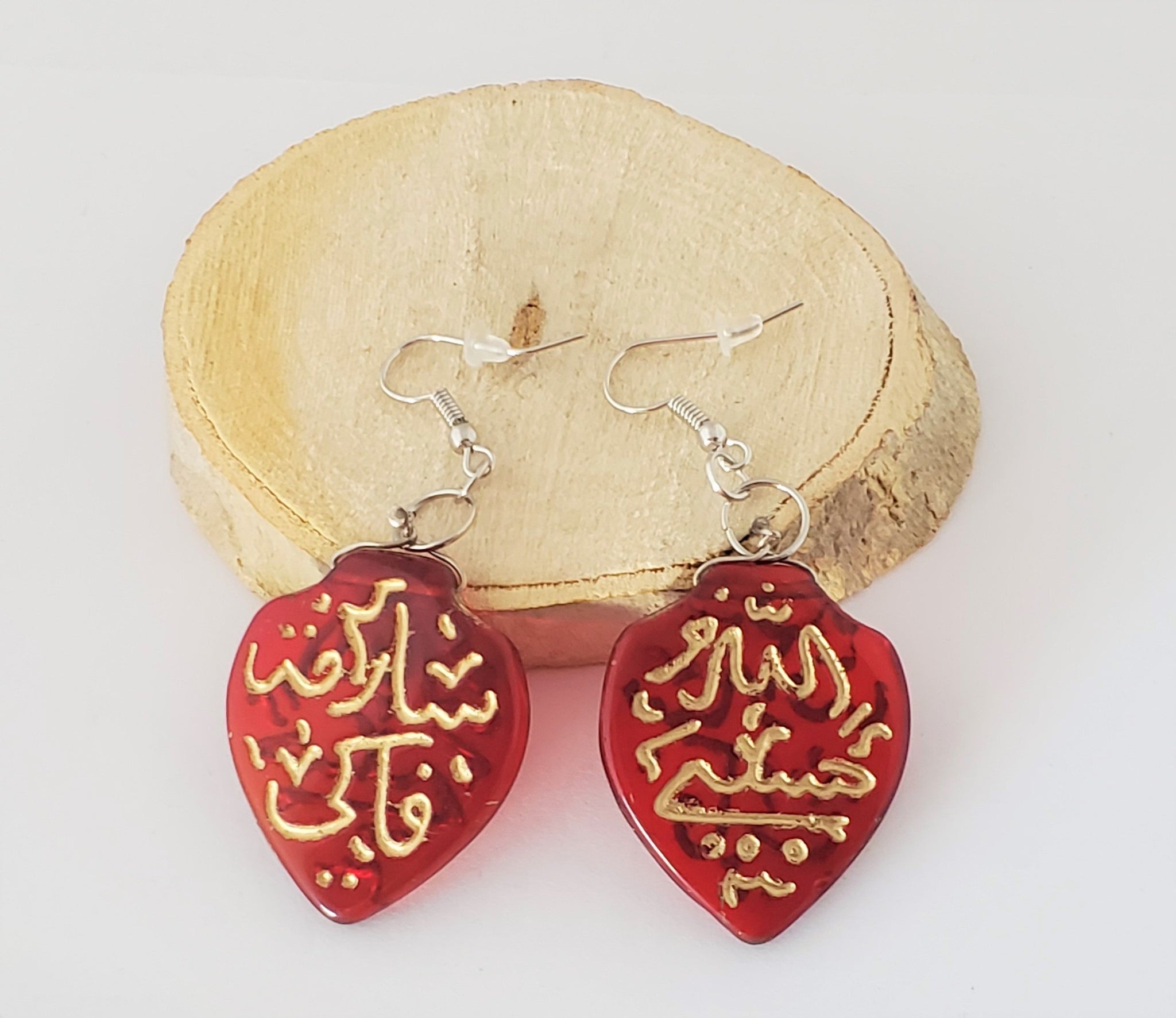 Moroccan Czech Glass Red Earrings with Silver Ethnic Tribal is a traditional Large Czech glass beads with gold design Earrings