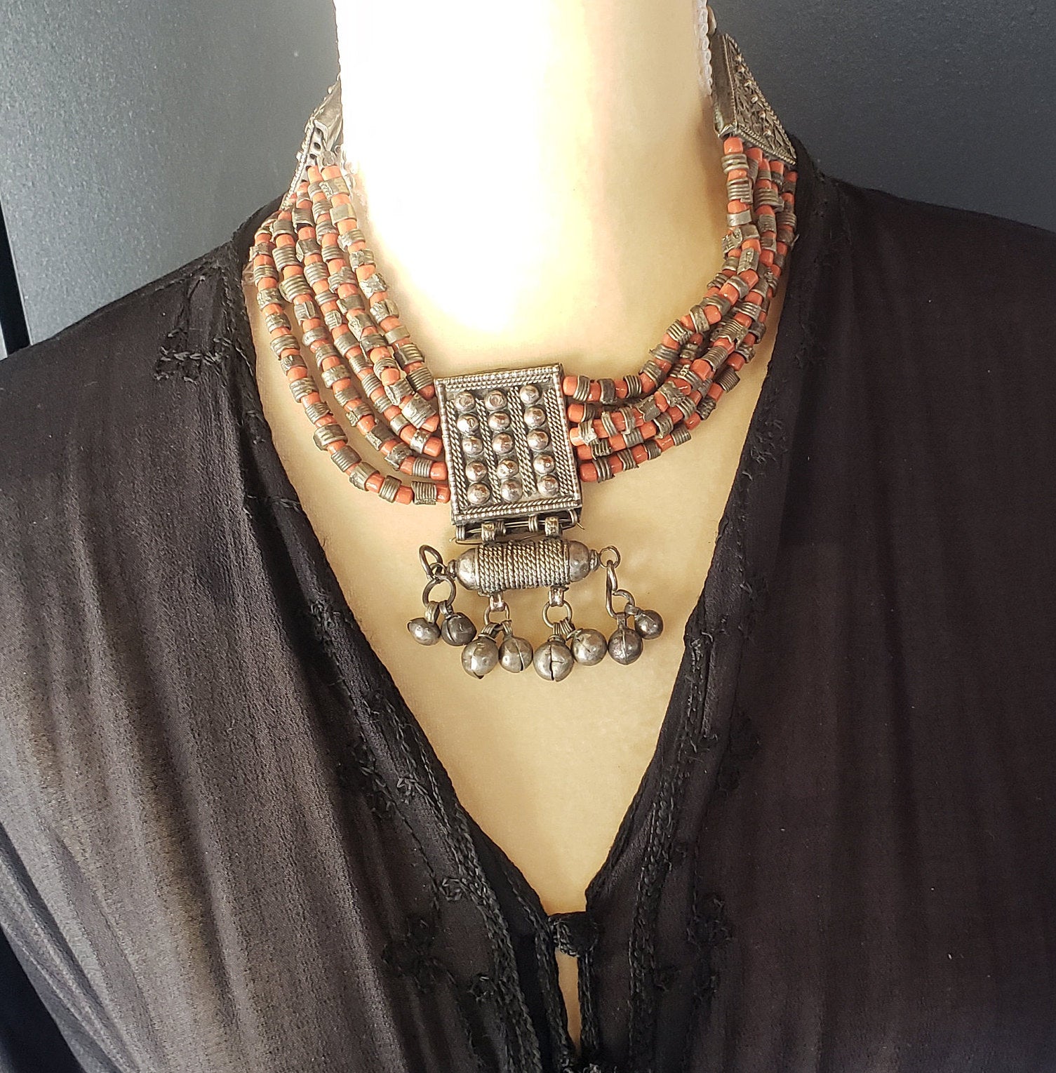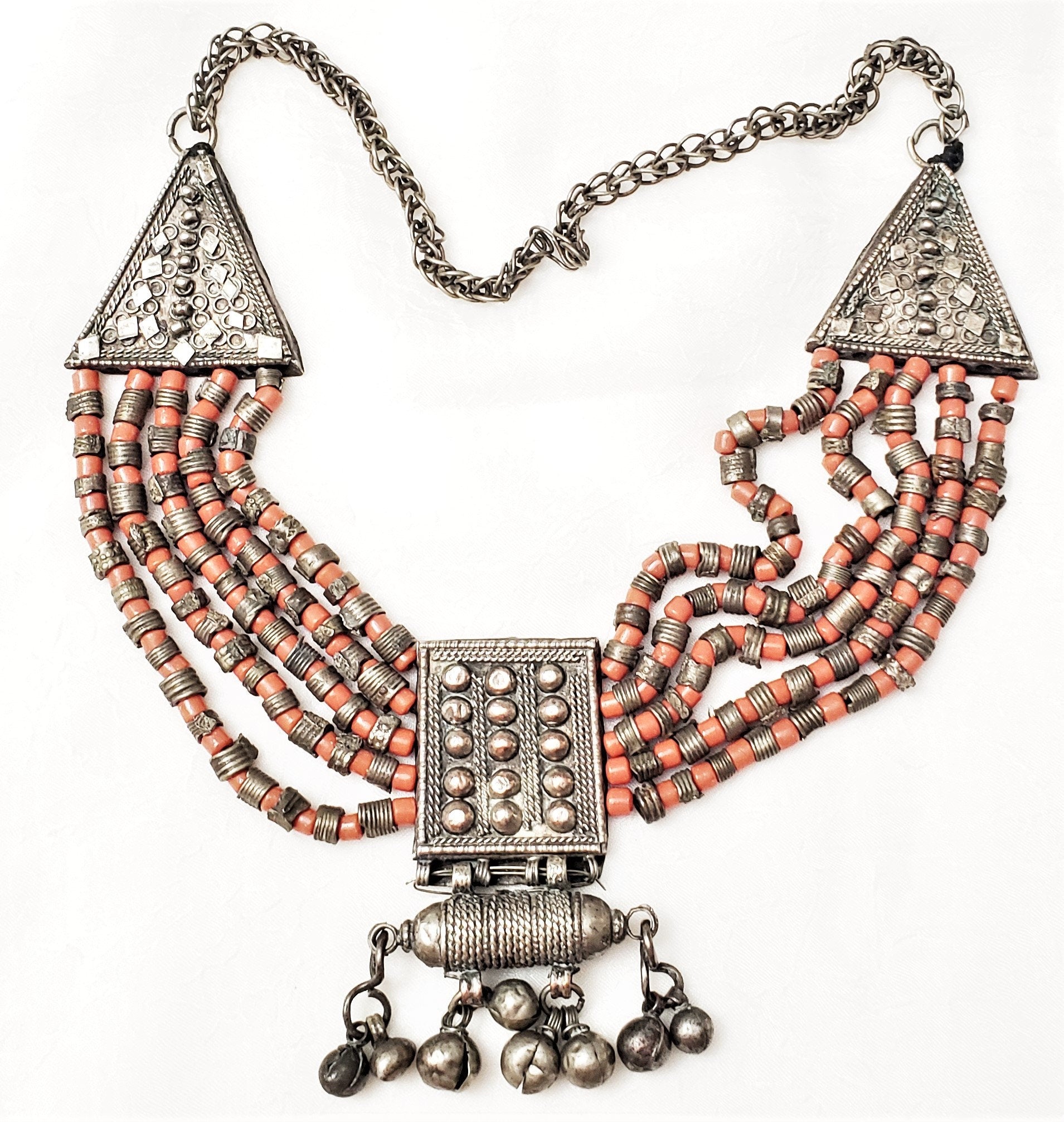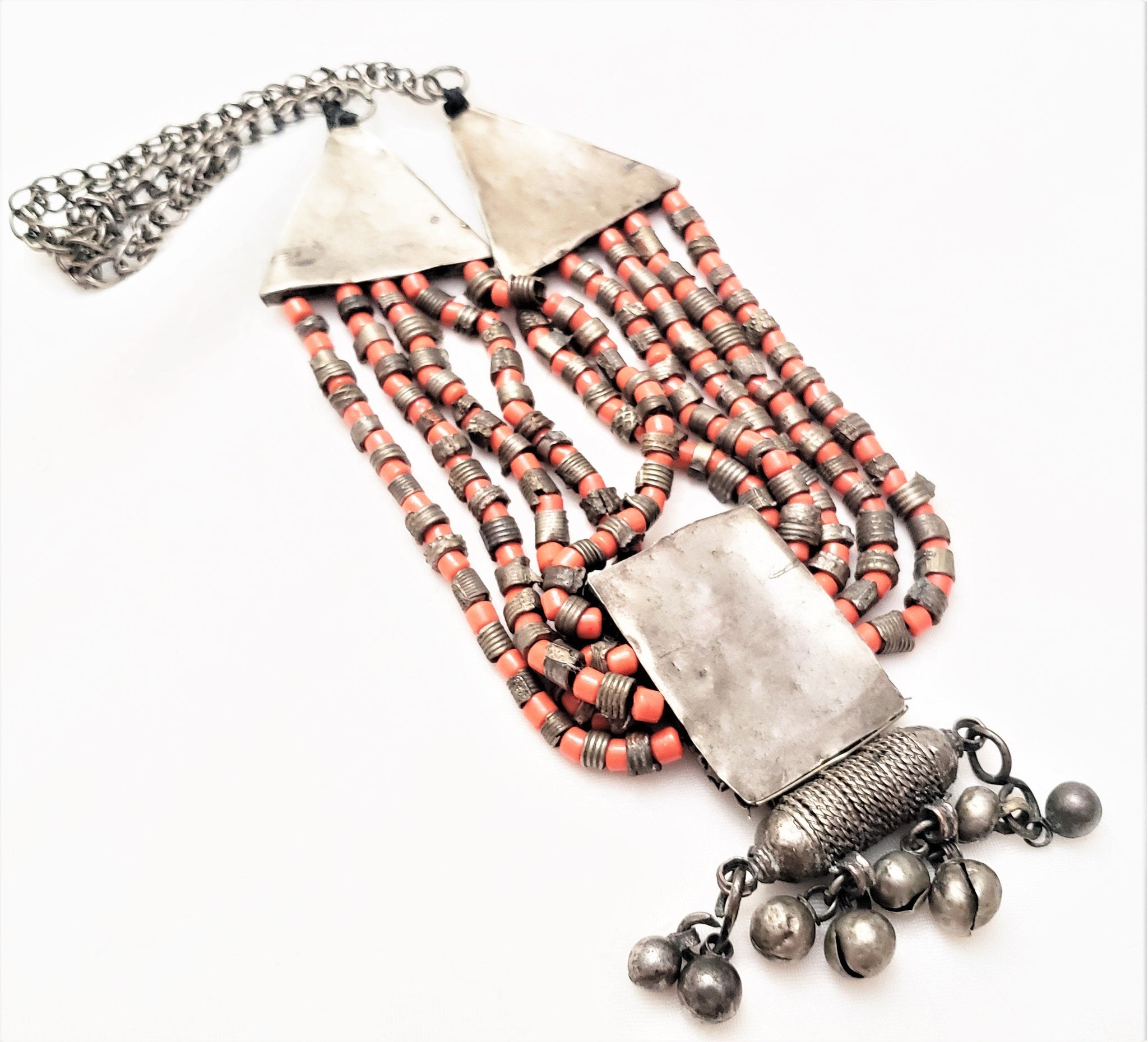 Beautiful Antique Yemenite Silver Filigree Multi-strand Beads Necklace from Yemen.