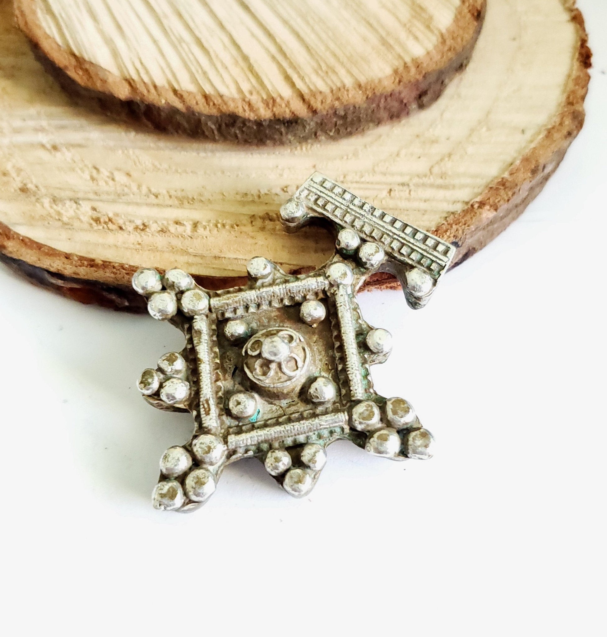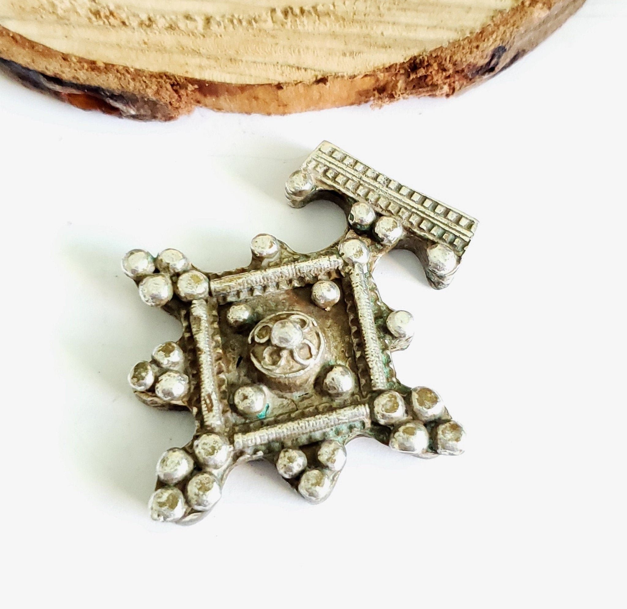 Beautiful Moroccan Old Very rare traditional silver cross from the Berbers of south Morocco. This kind of Moroccan crosses. Good condition with usual dents in the back side (see pictures). Collectible and useful as jewelry supplies.Measures: 2.5 by 2'' in weight is 26 grams Collectible Feel free to email me for more pictures. Thank you for visiting my shop All my jewelry has been collected over 18 years ago.I will be listing more pieces shortly as I am constantly always working on posting more. piece to add to the collection.I ship all over the world and price includes a tracking service.