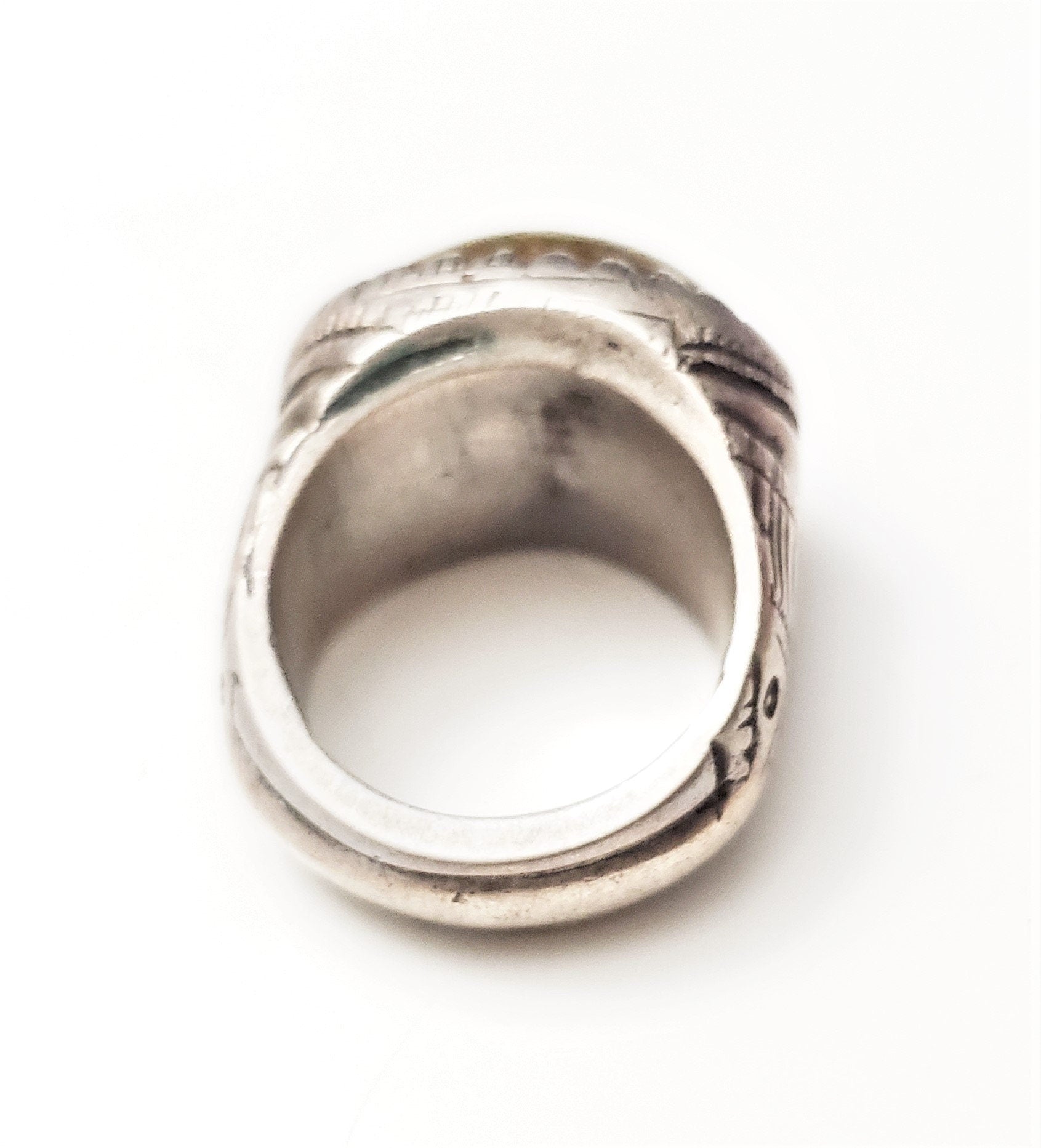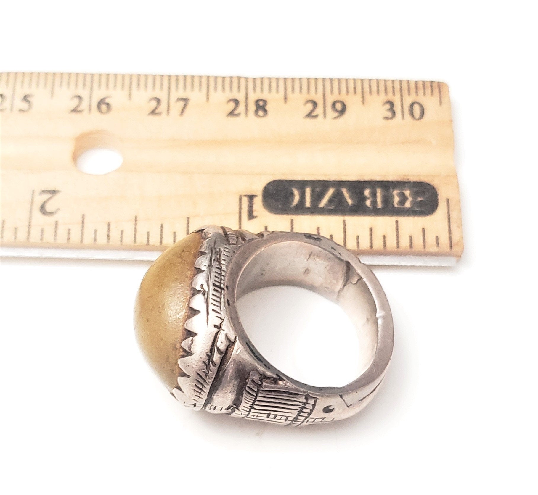 old Yemeni Silver Ancient Carnelian ring from Yemen from the 1930 century The decoration is made using vintage Silver Ancient Carnelian The Bedihi´s were responsible for the best quality granulation work like this ring, and also all kind of berry Yemeni beads Unique Yemeni Ring size 6 x 1'' Weight: 16 gr.Good condition size (see pictures) Collectible It is not marked but acid tested positive for 925 Silver, other shop https://www.etsy.com/shop/Africanbazar2US?ref=seller-platform-mcnav