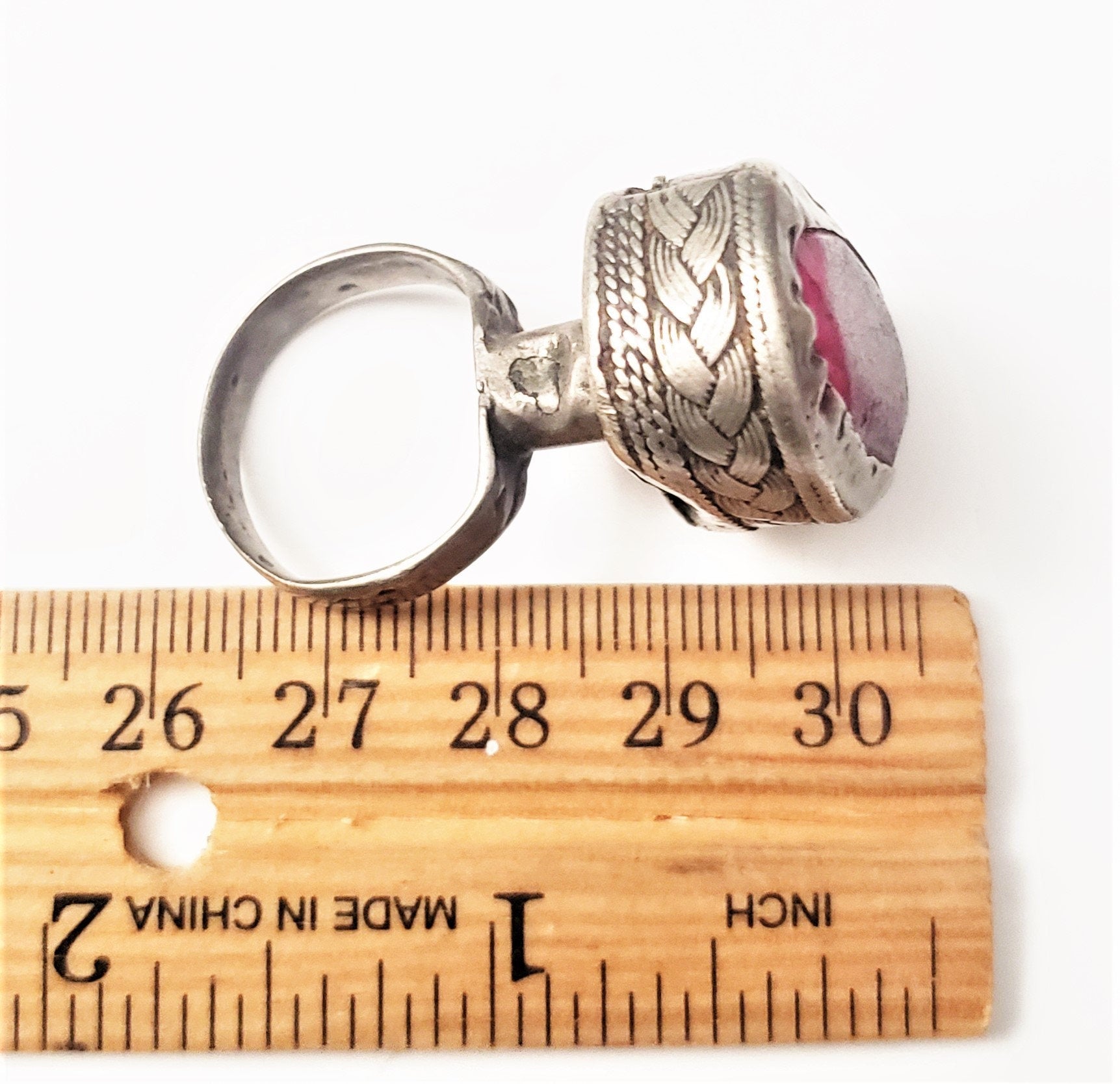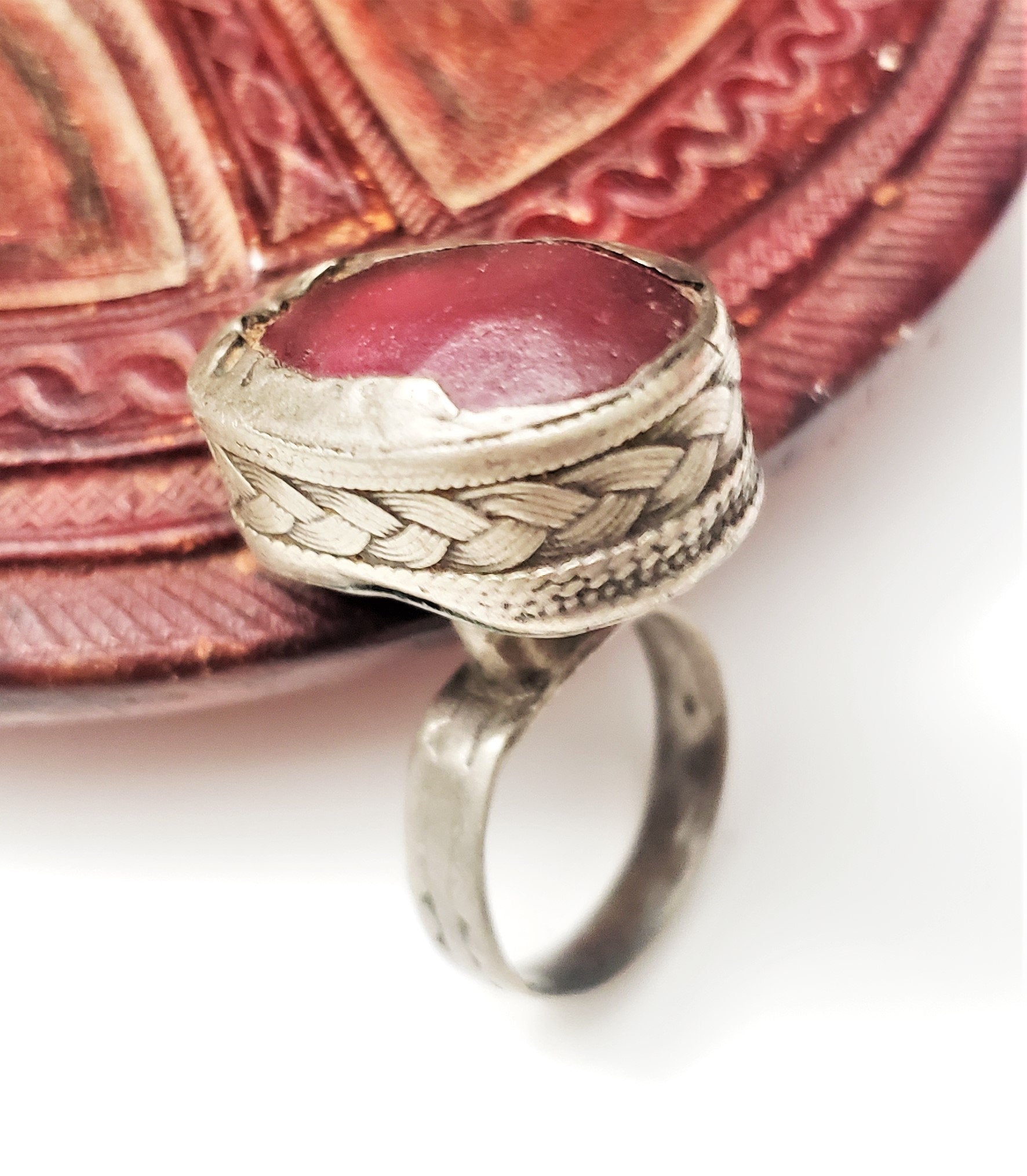 antique Tuareg elevated red Stone silver ring from 1930sThis is a classic old design which is increasingly rare to find.