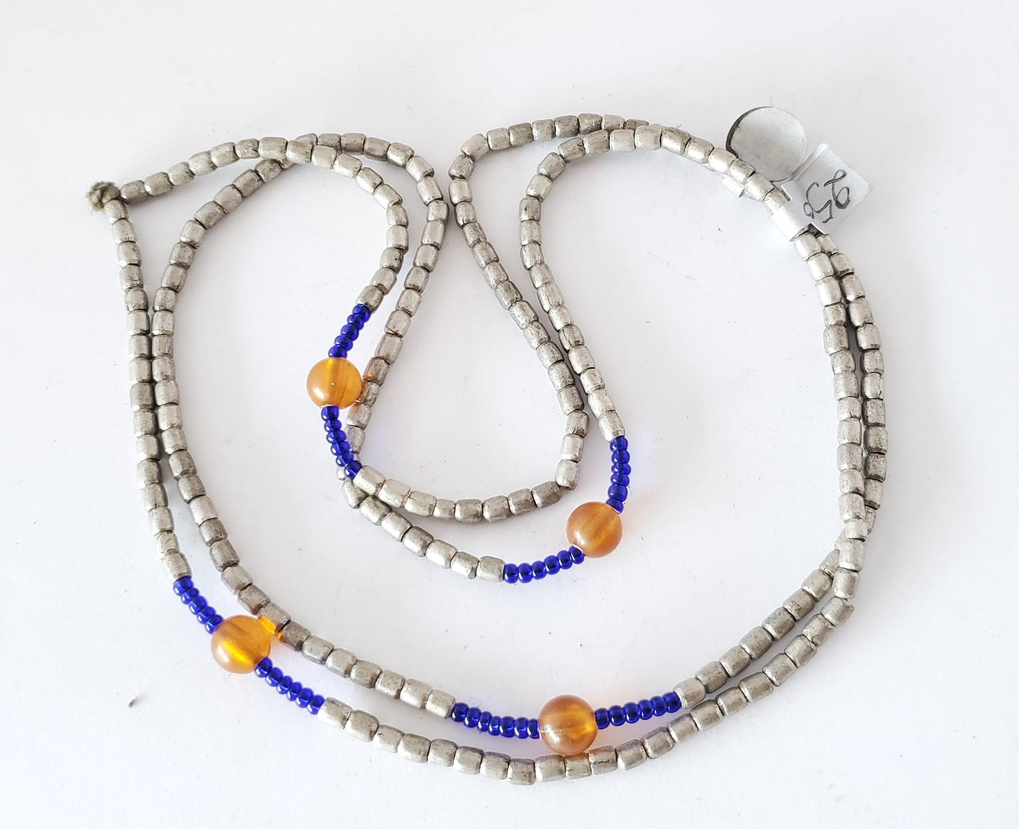beautiful! strand of antique silver heishi and beads from Ethiopia. Most are 4mm diameter on raffia 40 inches strand Silver bead measures of 2mm diameter x 3mm thick and The hole is 2mm wide/ heishi from Ethiopia; high silver content. Over 100 years old....
