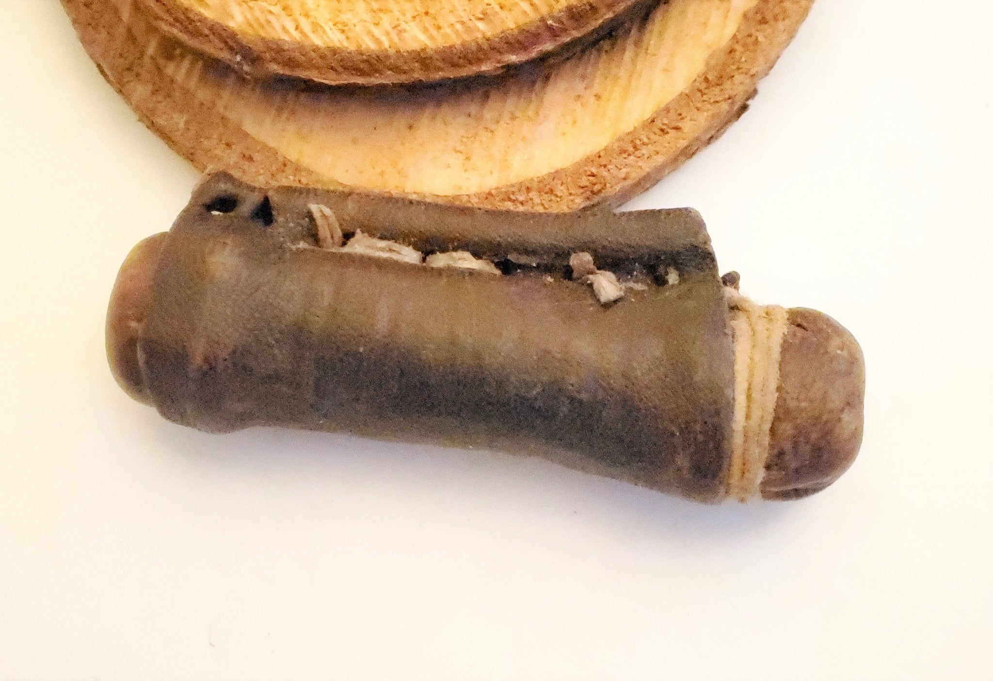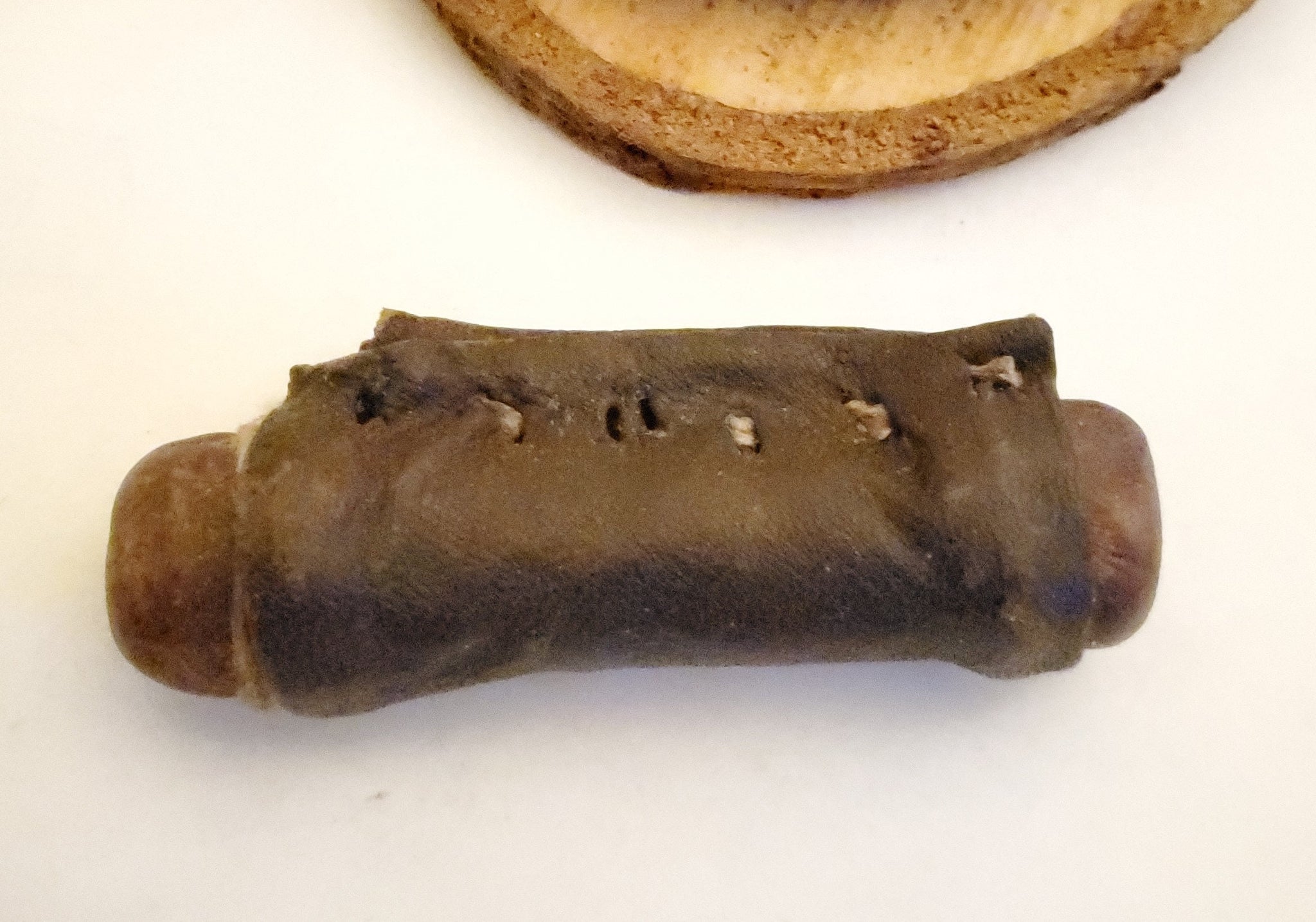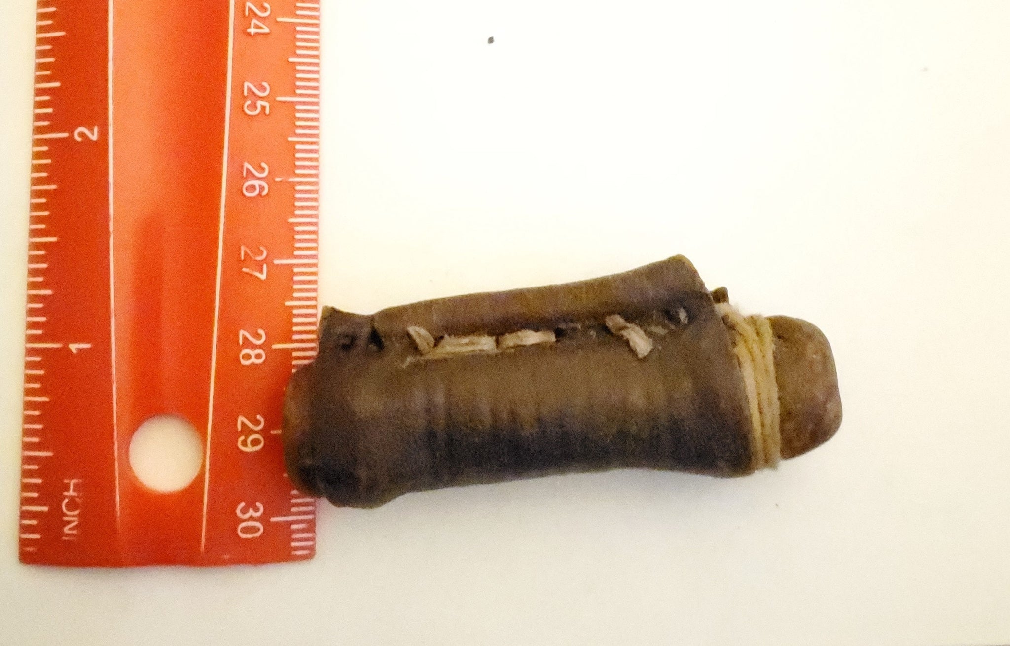 an antique Ethiopian scroll which has been encased and sewn into a leather talisman amulet for the purpose of every day wearable protection, healing and blessings. Each protective amulet also known as a Kitabe was made specifically for an individual for a focused reason and usually the scroll was made of goatskin which had been worked into parchment like material called vellum which was rolled or folded before being wrapped and sewn into the leather casing. Usually the writing on the scroll is in handmade black and red paint or ink and is written in Ethiopic Ge'ez a language no longer used except for religious purposes. The scrolls were inscribed by religious scribes, dabtaras (unordained clerics) or priests and contain Christian oriented prayers and / or stories or pertinent text from Ethiopian Christian Manuscripts / Bibles sometimes pictures are added