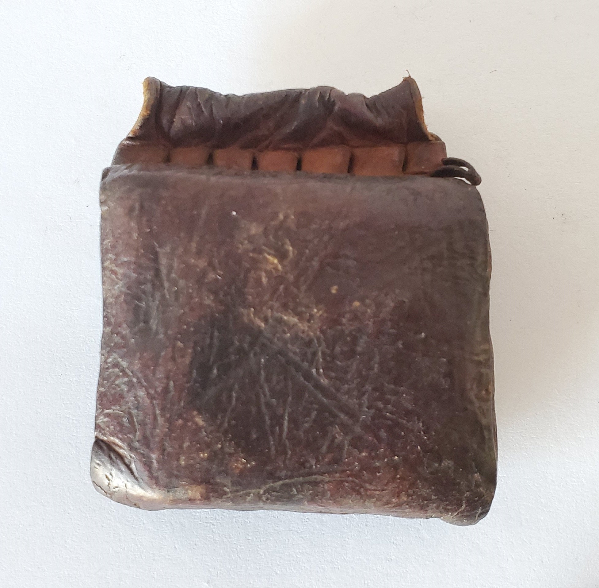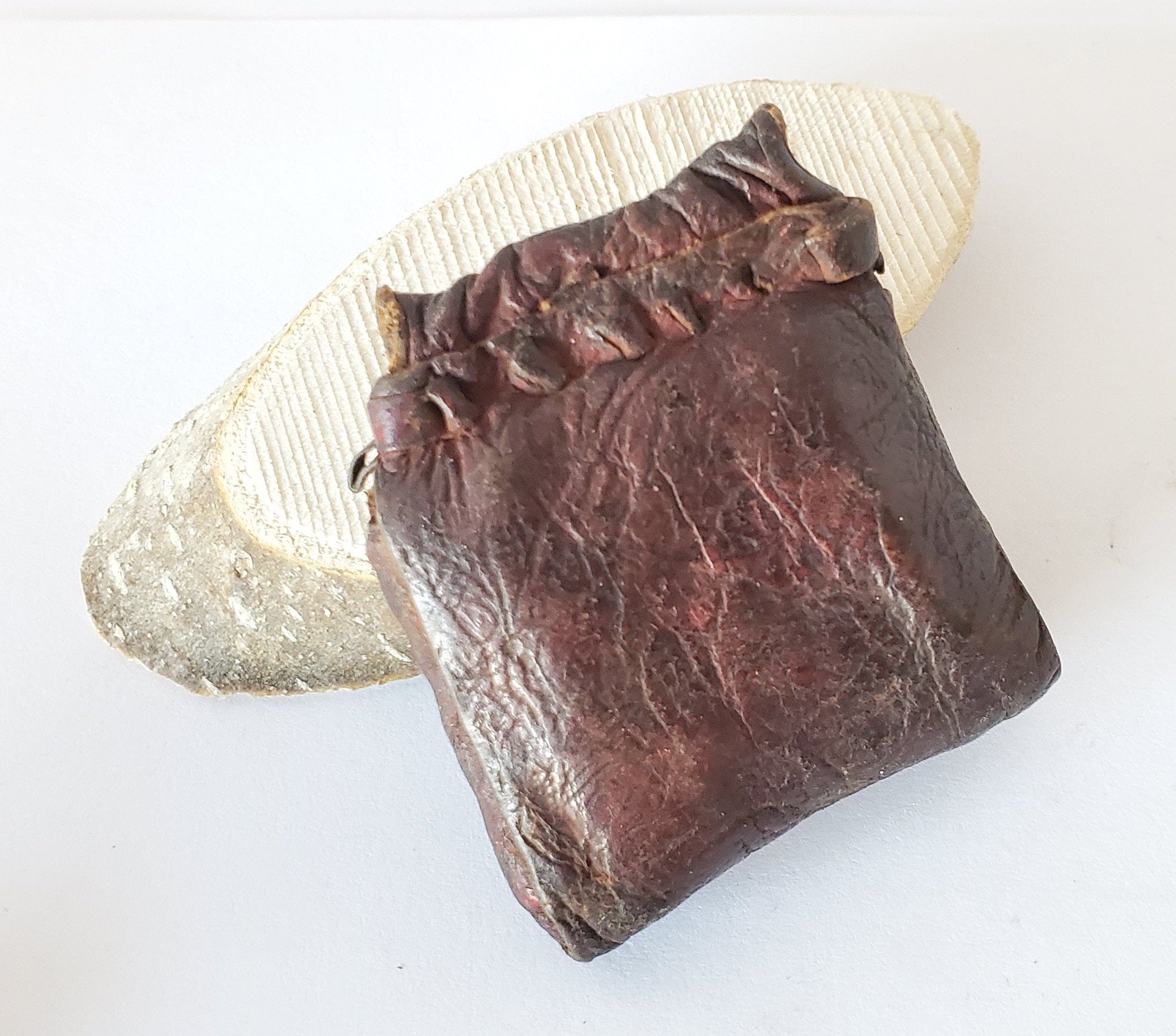 an antique Ethiopian scroll which has been encased and sewn into a leather talisman amulet for the purpose of every day wearable protection, healing and blessings. Each protective amulet also known as a Kitabe was made specifically for an individual for a focused reason and usually the scroll was made of goatskin which had been worked into parchment like material called vellum which was rolled or folded before being wrapped and sewn into the leather casing. Usually the writing on the scroll is in handmade black and red paint or ink and is written in Ethiopic Ge'ez a language no longer used except for religious purposes. The scrolls were inscribed by religious scribes, dabtaras (unordained clerics) or priests and contain Christian oriented prayers and / or stories or pertinent text from Ethiopian Christian Manuscripts / Bibles sometimes pictures are added other shop