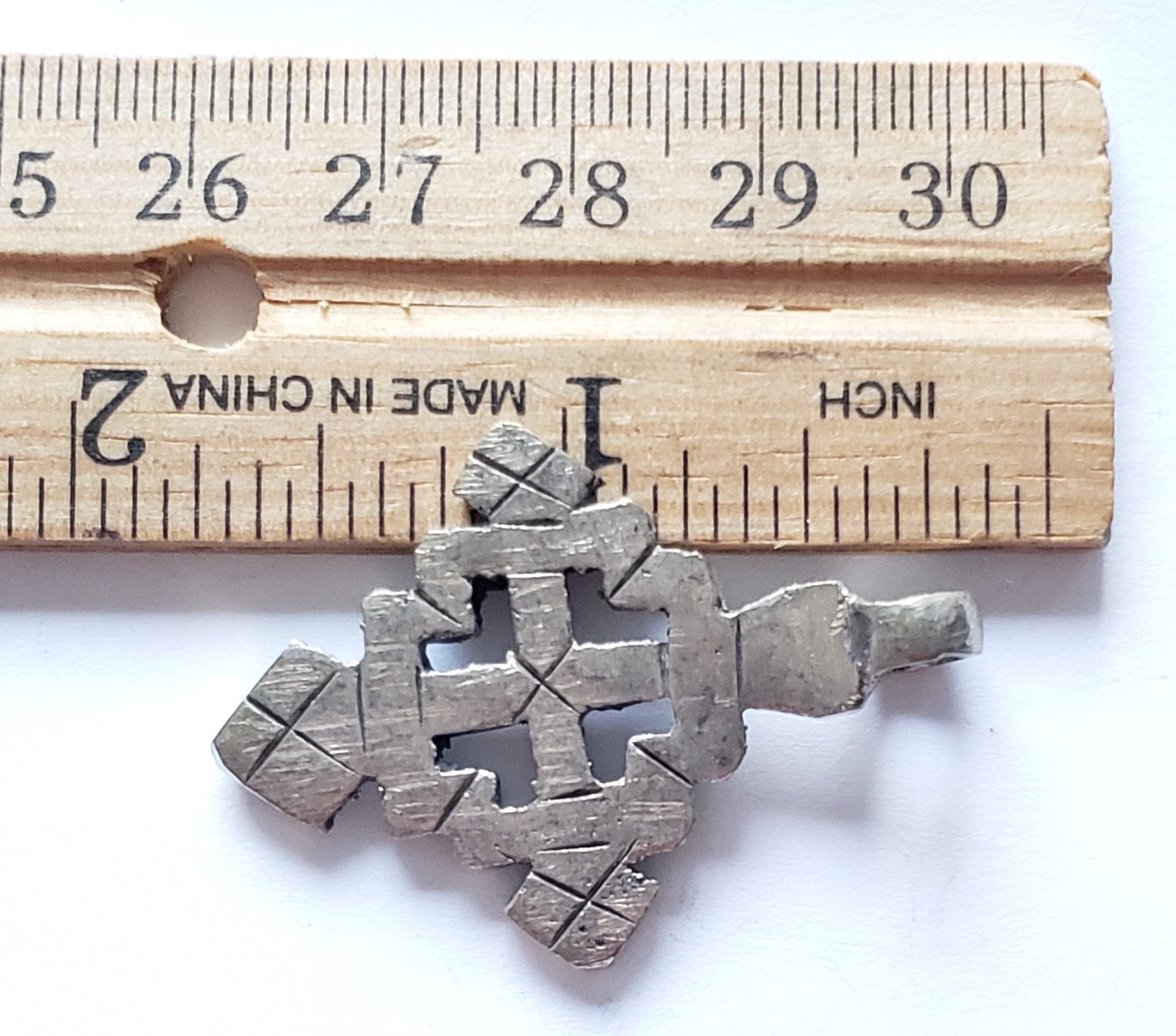beautiful large handmade Ethiopian cross pendant made of steel. In Ethiopia particularly among Orthodox Church followers, to wear a cross implied to be protected by the lord himself as well as to show that they are a devoted Christian. Neck or pictorial crosses are tied round their owner’s neck with a piece of blue thread or cord, which was sometimes given to the wearer at baptism. This particular cross pendants they have not been used. Measures approximatelty 2" x1''.5 long great condition Collectible other shop https://www.etsy.com/shop/Africanbazar2US?ref=seller-platform-mcnav