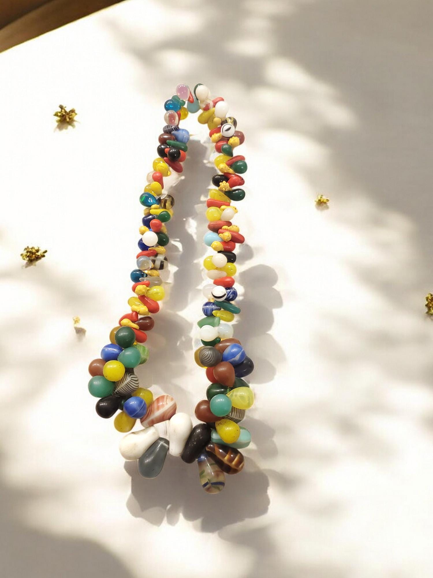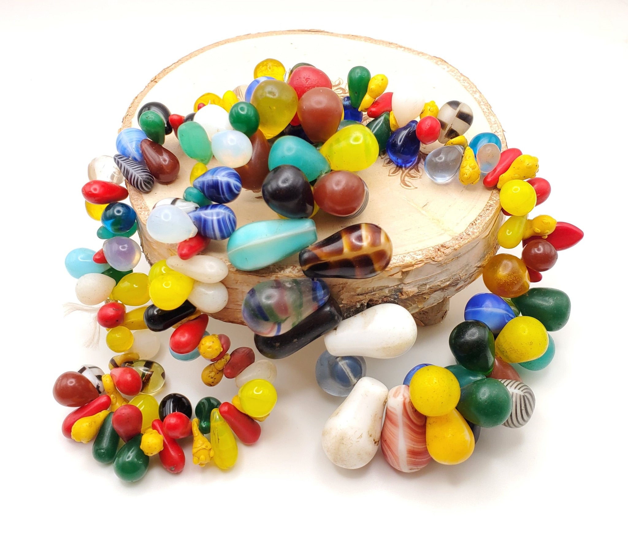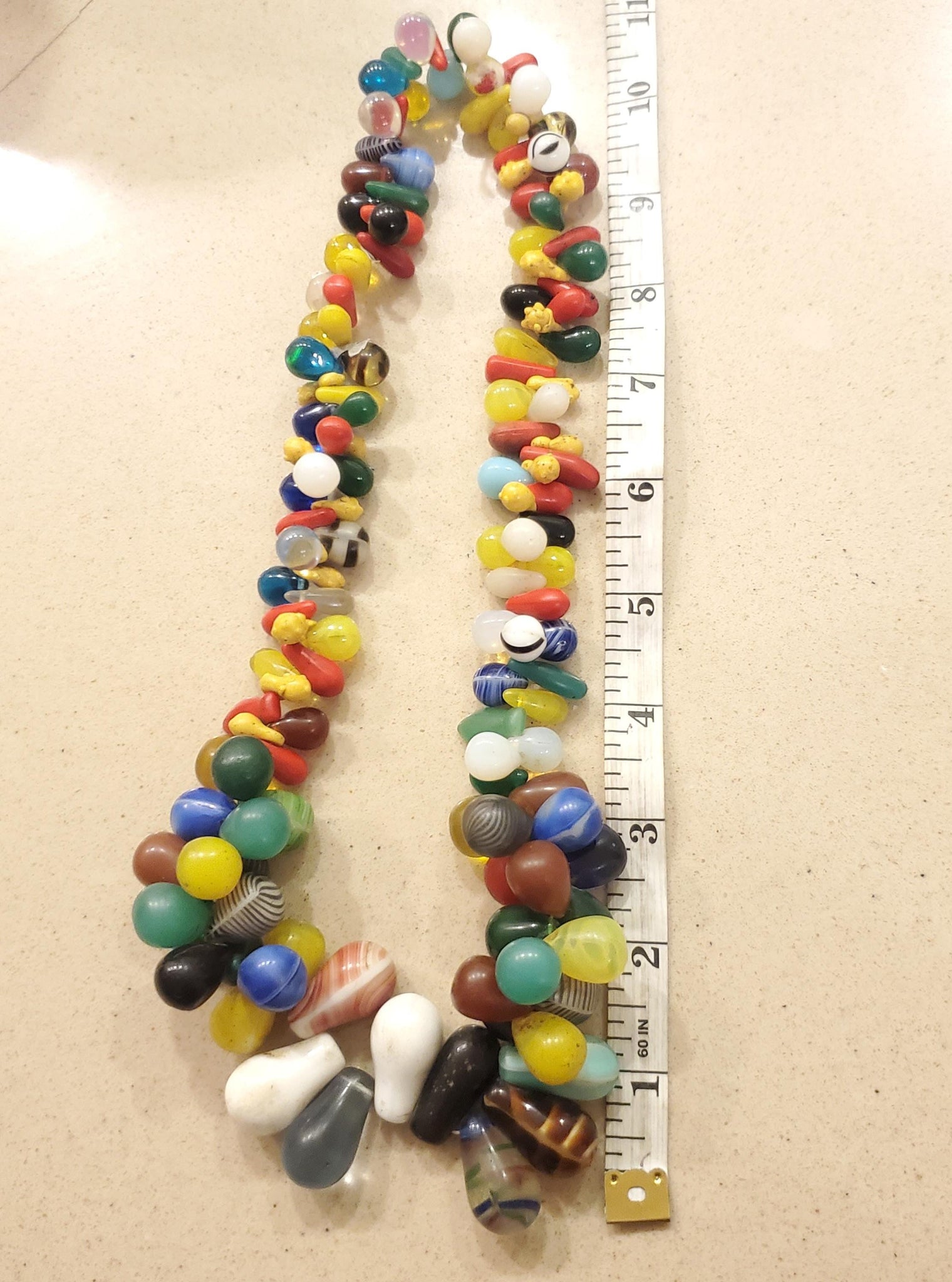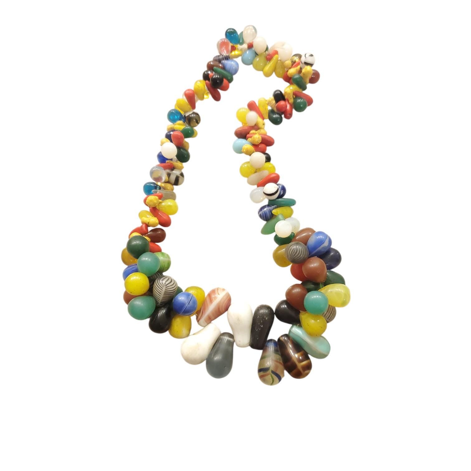 collection Antique Mixed Strand Africa Mali Large Bohemian Tear Drop Wedding Beads hand-made and are presented to brides on their wedding days. They were made in what was once known as Czechoslovakia, for trade in Africa. They are worn throughout West Africa, specifically in Mali. These beads are multicolored and come Mixed shape While each strand is unique, and may vary from the strand pictured, yet they have similarities. The glass beads are strung in a way that allows them to swivel around the cord. These beads are greatly treasured and worn by Fulani women.