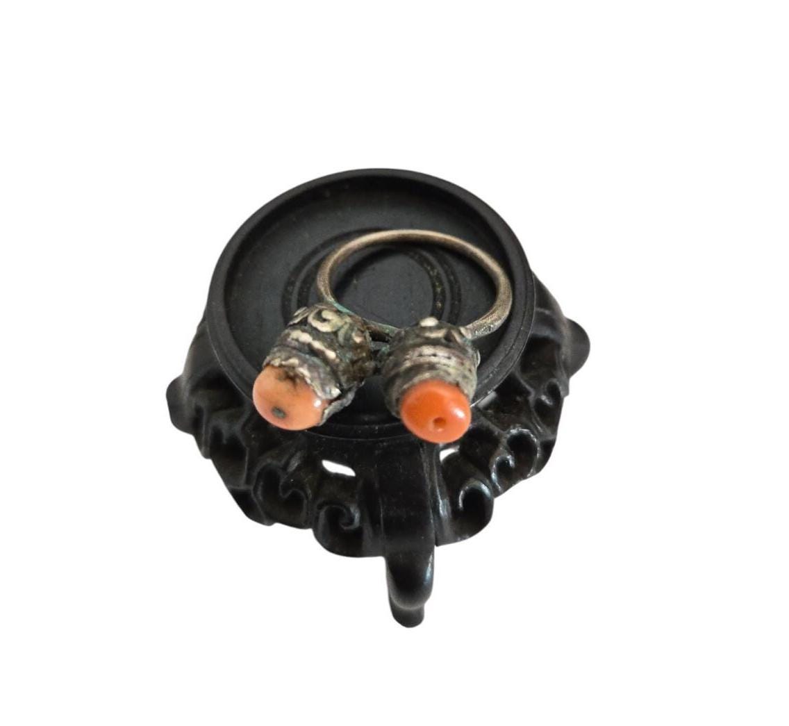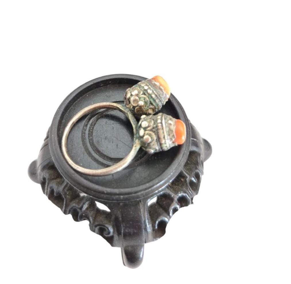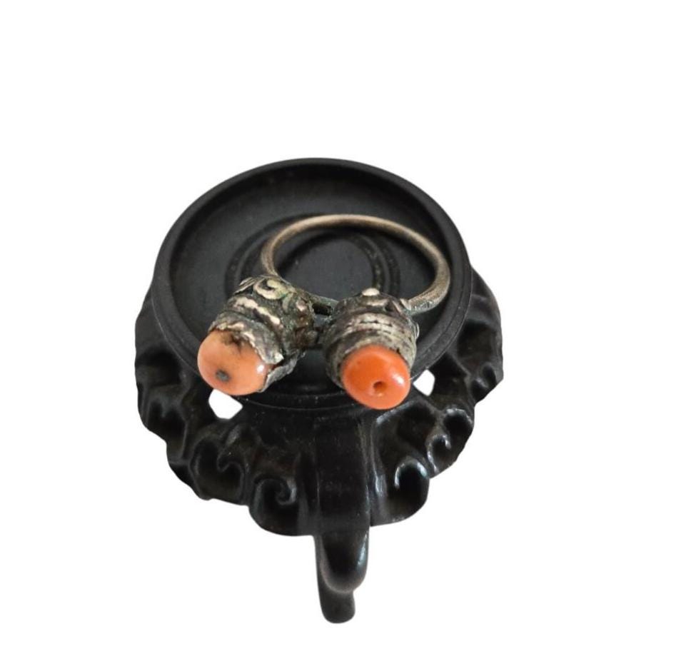 vintage Yemeni Jewish Bawsani Silver ring with red coral from Yemen from the 1910 century the decoration is made using genuine vintage red coral from the Mediterranean Sea Original Yemeni Jewish Ring from the early 1900 century, made by the best artisans in North Yemen. This ring shows the classic Bedihi granulation technique. The Bedihi´s were responsible for the best quality granulation work like this ring, and also all kind of berry Yemeni beads. The decor is made with vintage red coral Unique Yemeni wedding Ring size 7 ‘‘.5 x ‘‘.5 Weight:15 gr.Good condition size (see pictures) Collectible It is not marked but acid tested positive for 925 Silver,