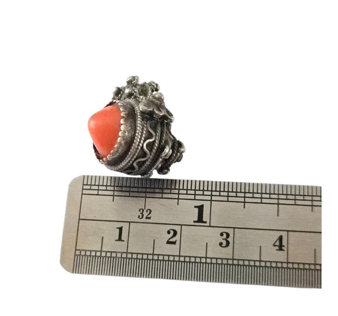 Antique Berber Natural coral Silver Pendant from Southern Morocco Genuine real Mediterranean coral Pendant traditional Berber silver work,