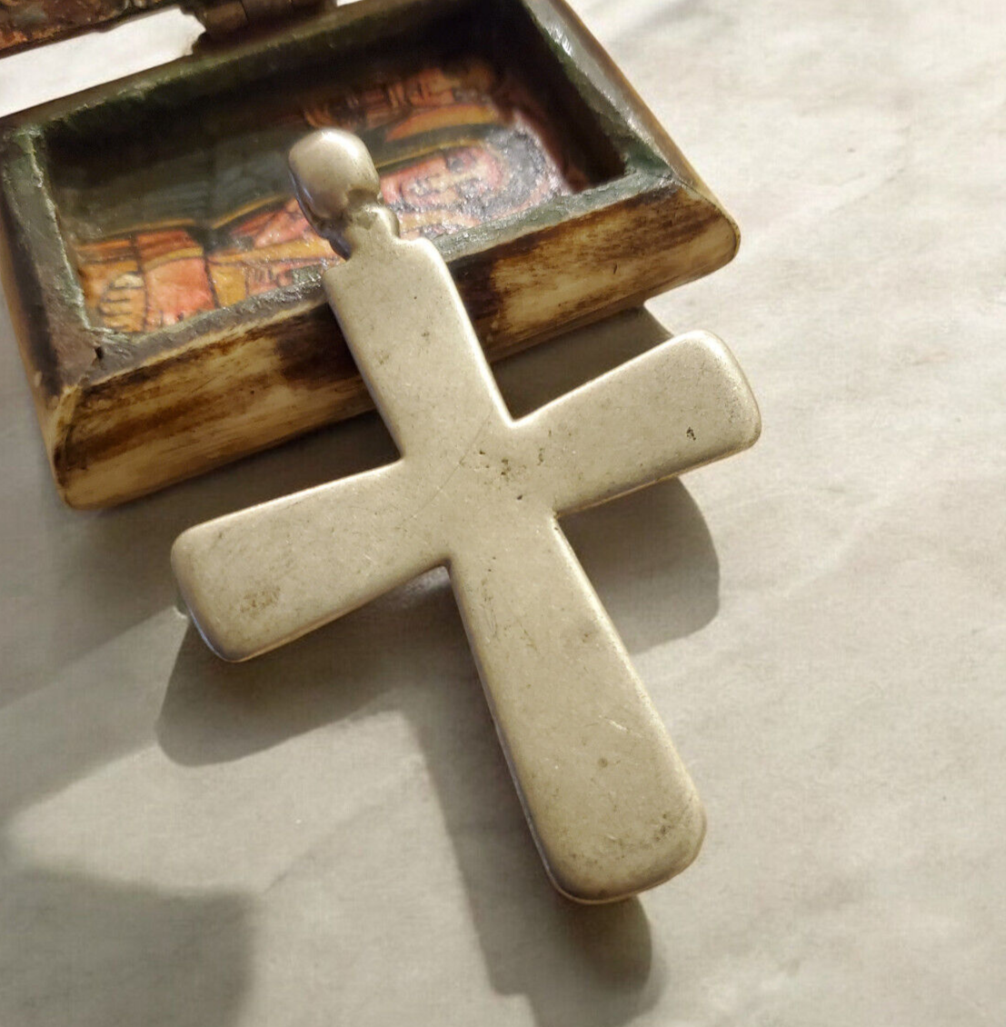 In Ethiopia particularly among Orthodox Church followers, to wear a cross implied to be protected by the lord himself as well as to show that they are a devoted Christian. Neck or pictorial crosses are tied round their owner’s neck with a piece of blue thread or cord, which was sometimes given to the wearer at baptism. This particular cross pendant is old and has been used.It is not marked but acid tested positive for 925 Silver