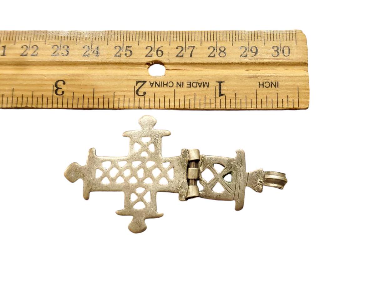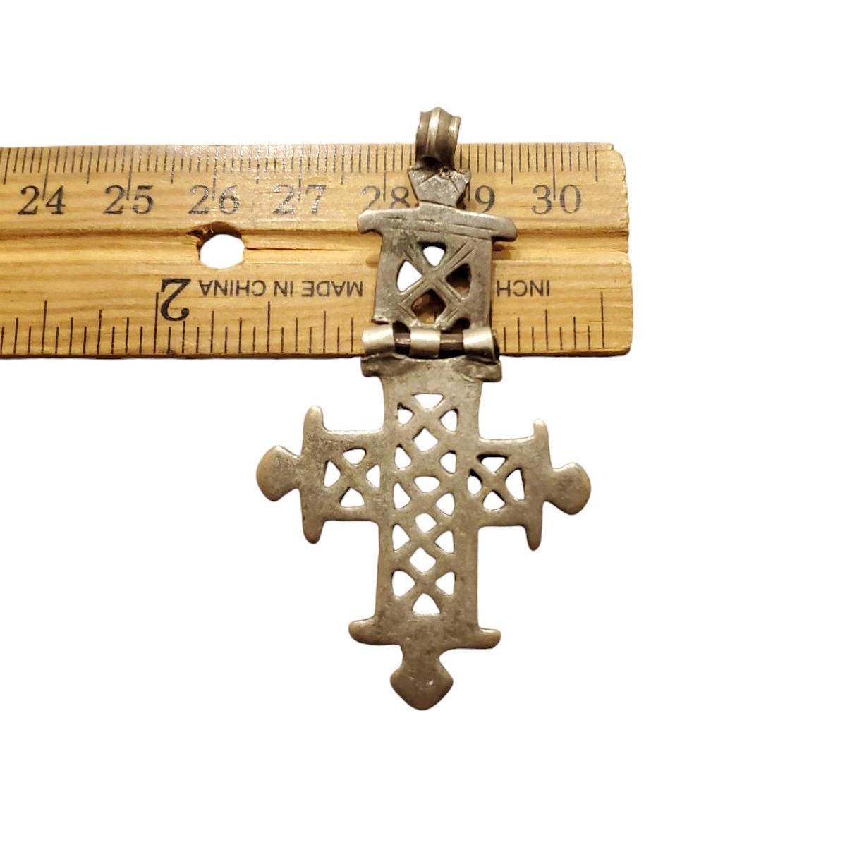 Antique Silver Ethiopian Coptic Cross Pendant: Handmade Tribal Jewelry