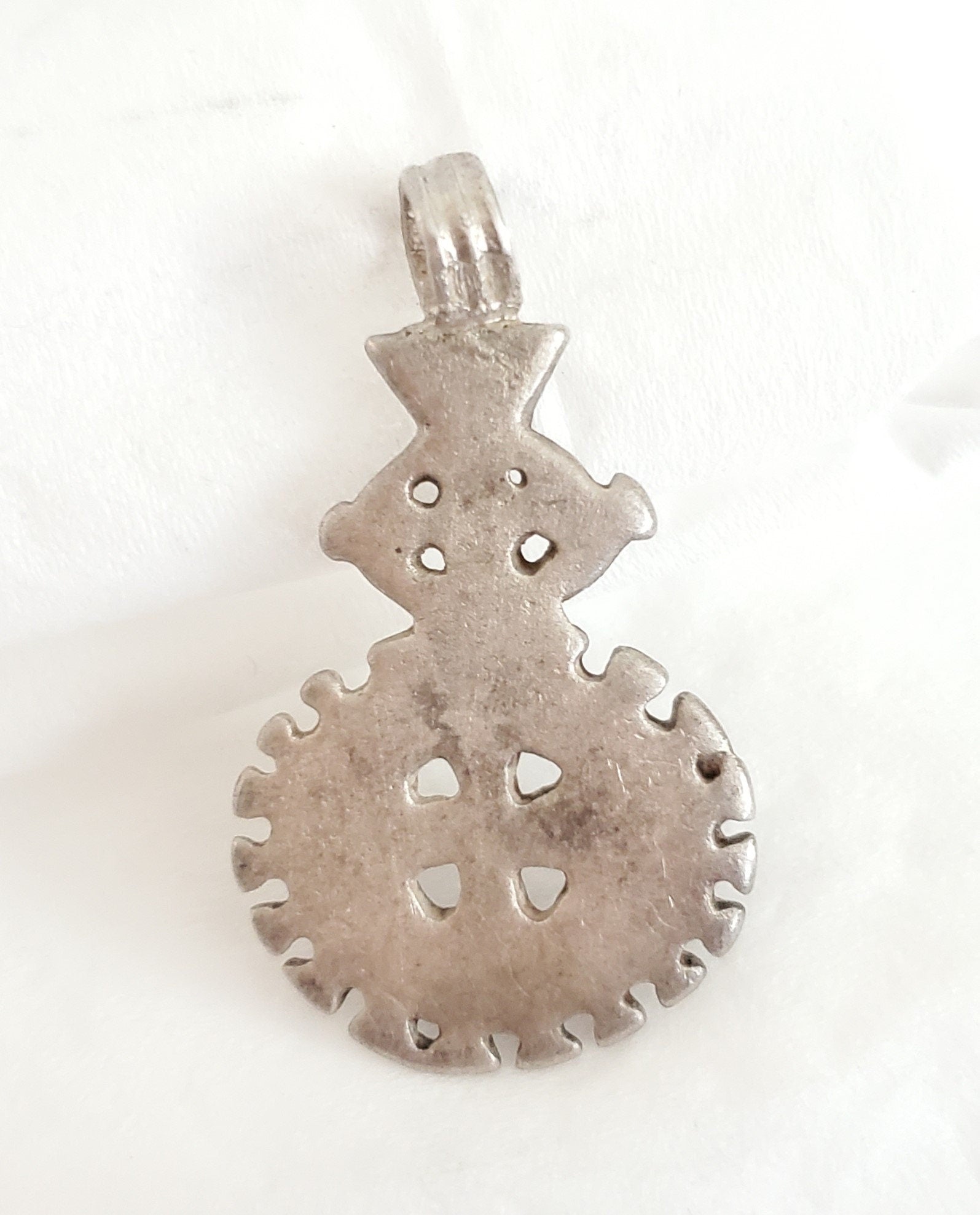 This is a very beautiful old handmade Ethiopian pendant made of good silver done by highly skilled silversmith collector's Coptic cross in good solid silver is a display of good craftsmanship. In Ethiopia particularly among Orthodox Church followers, to wear a cross implied to be protected by the lord himself as well as to show that they are a devoted Christian. Neck or pictorial crosses are tied round their owner's neck with a piece of blue thread or cord, which was sometimes given to the wearer at baptism. This particular cross pendant is old and has been used.