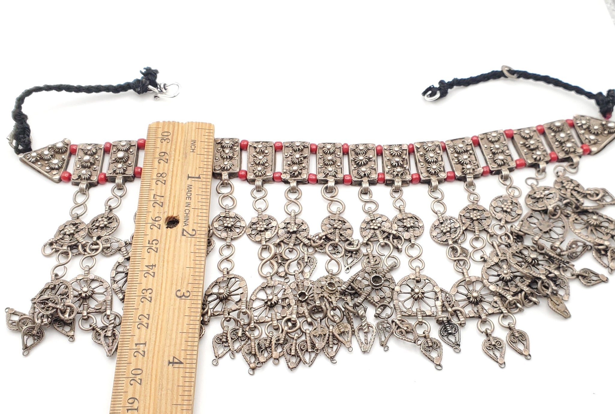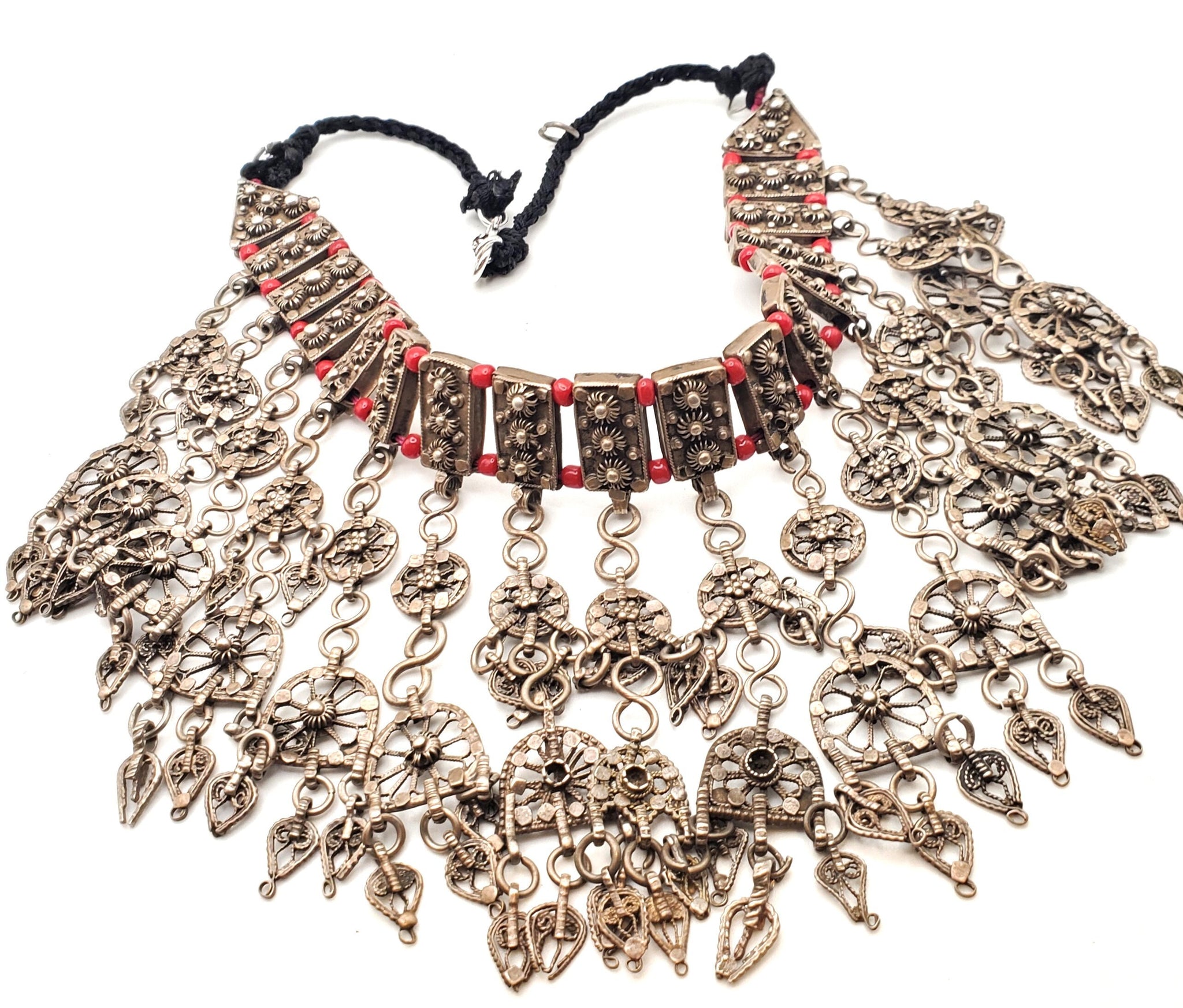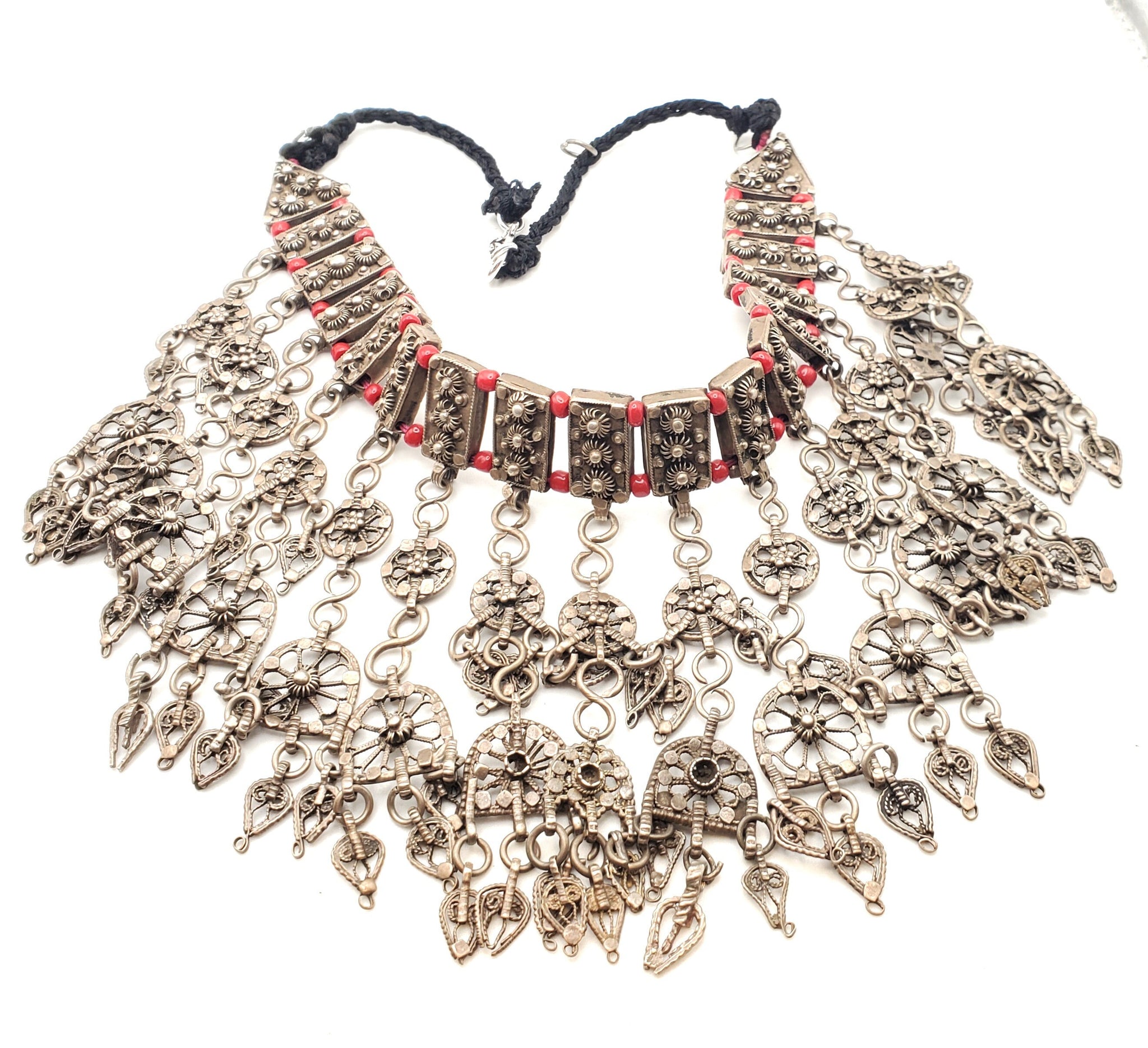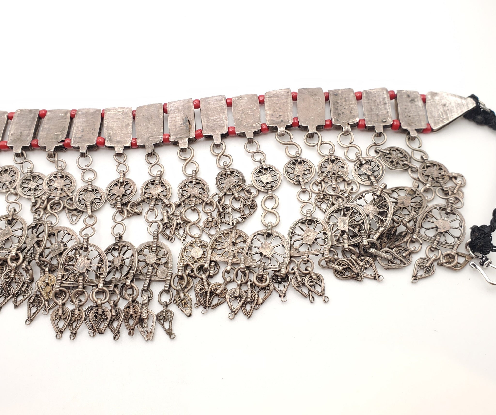 Beautiful Antique Yemen Silver coral Bawsani granulated Beads with granulated Dangled Beads Necklace from Yemen.