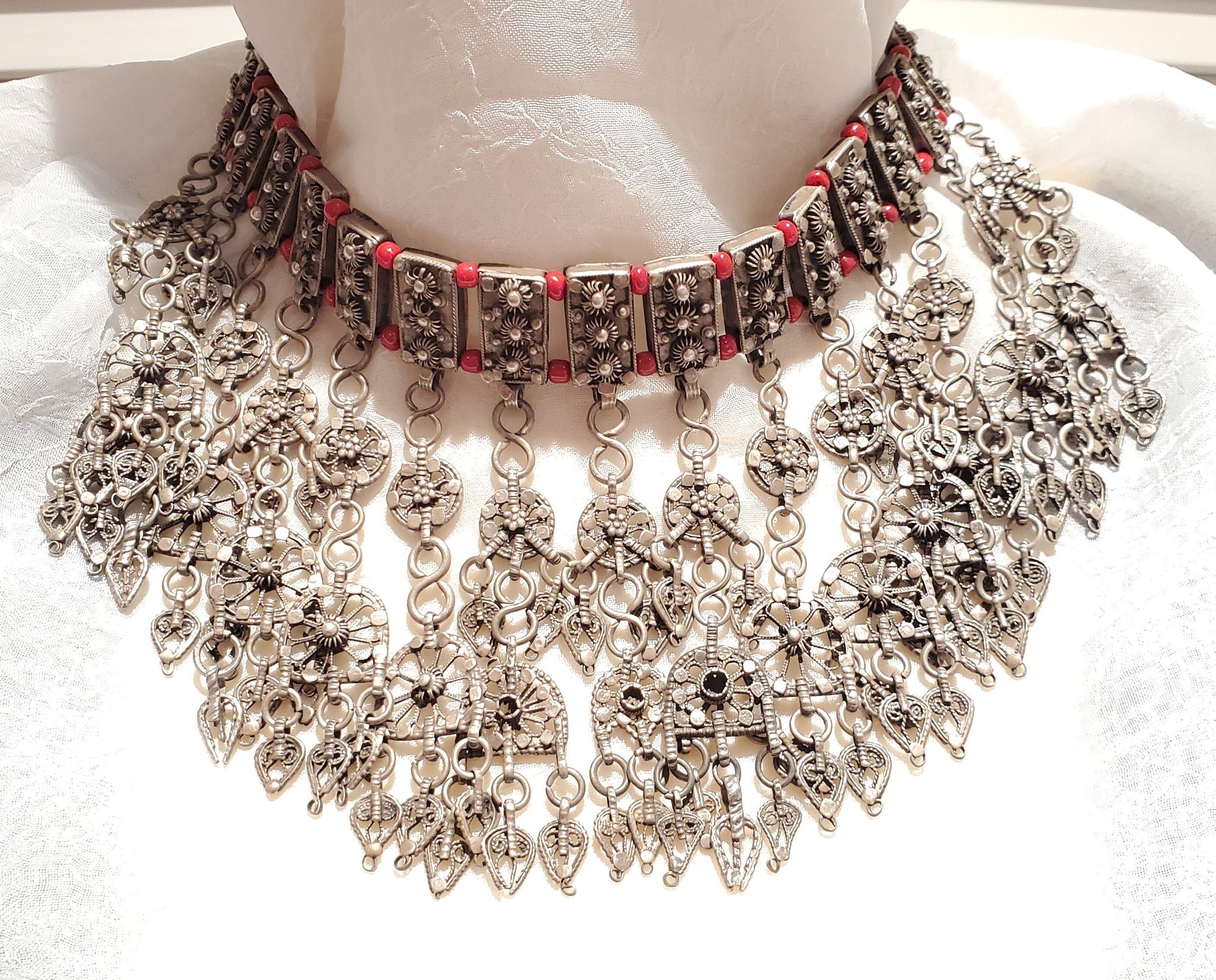 Silver: granulated Wheel Beads See similar necklace: The Yemenites. Two thousand years of Jewish culture. page 134. Muchawsky-Schnapper.The Israel Museum, Jerusalem. Collector´s piece. Thank you for visiting my shop All my jewelry has been collected over 18 years ago. I will be listing more pieces shortly as I am constantly always working on posting more. piece to add to the collection. other shop ...africanbazaarus.com