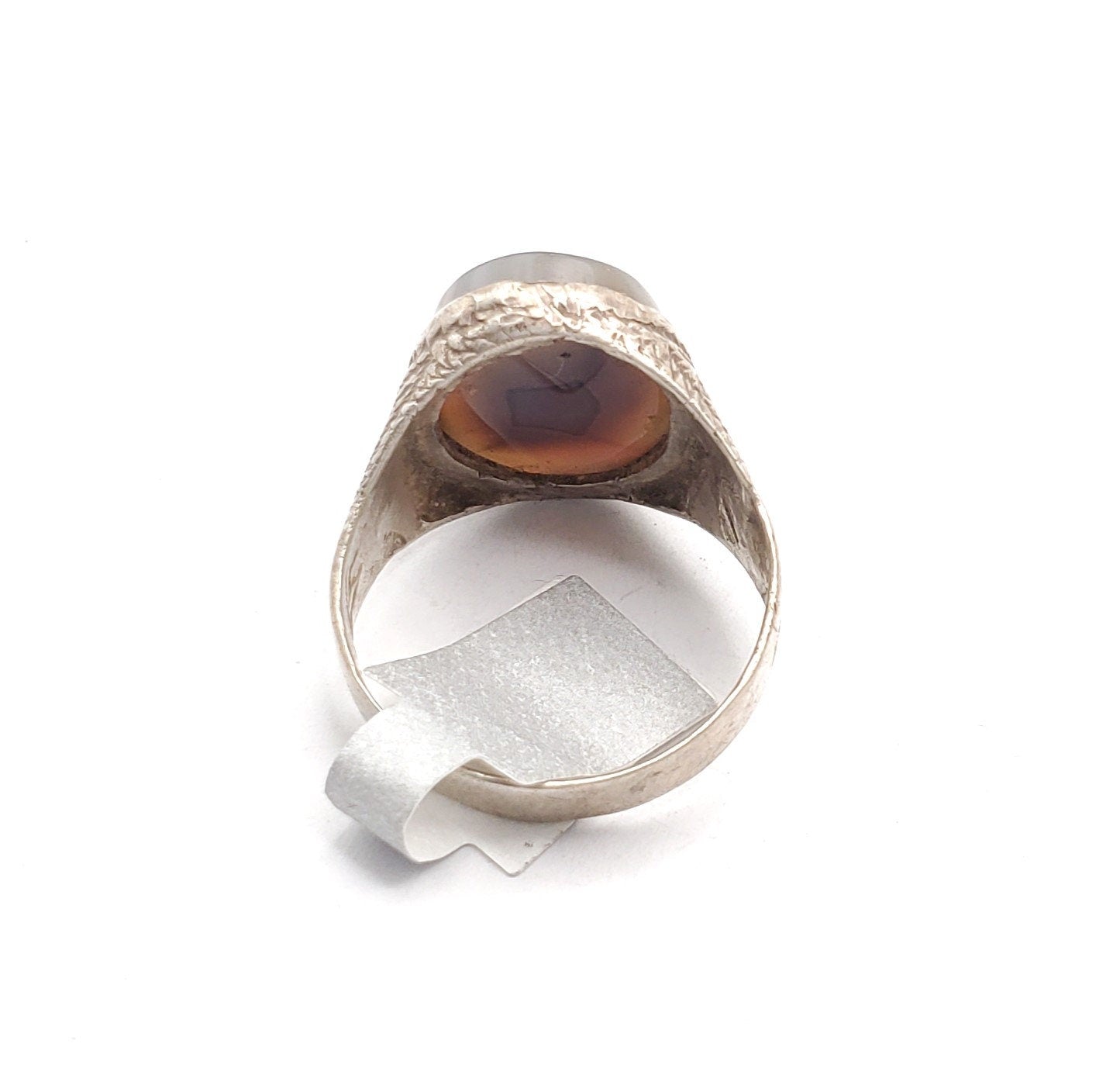 Antique Yemen Carnelian Silver Ring - Tribal Wedding Jewelry, Size 8.5