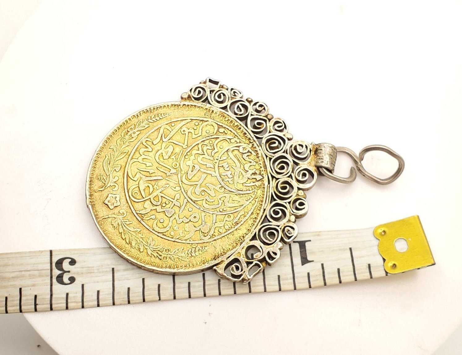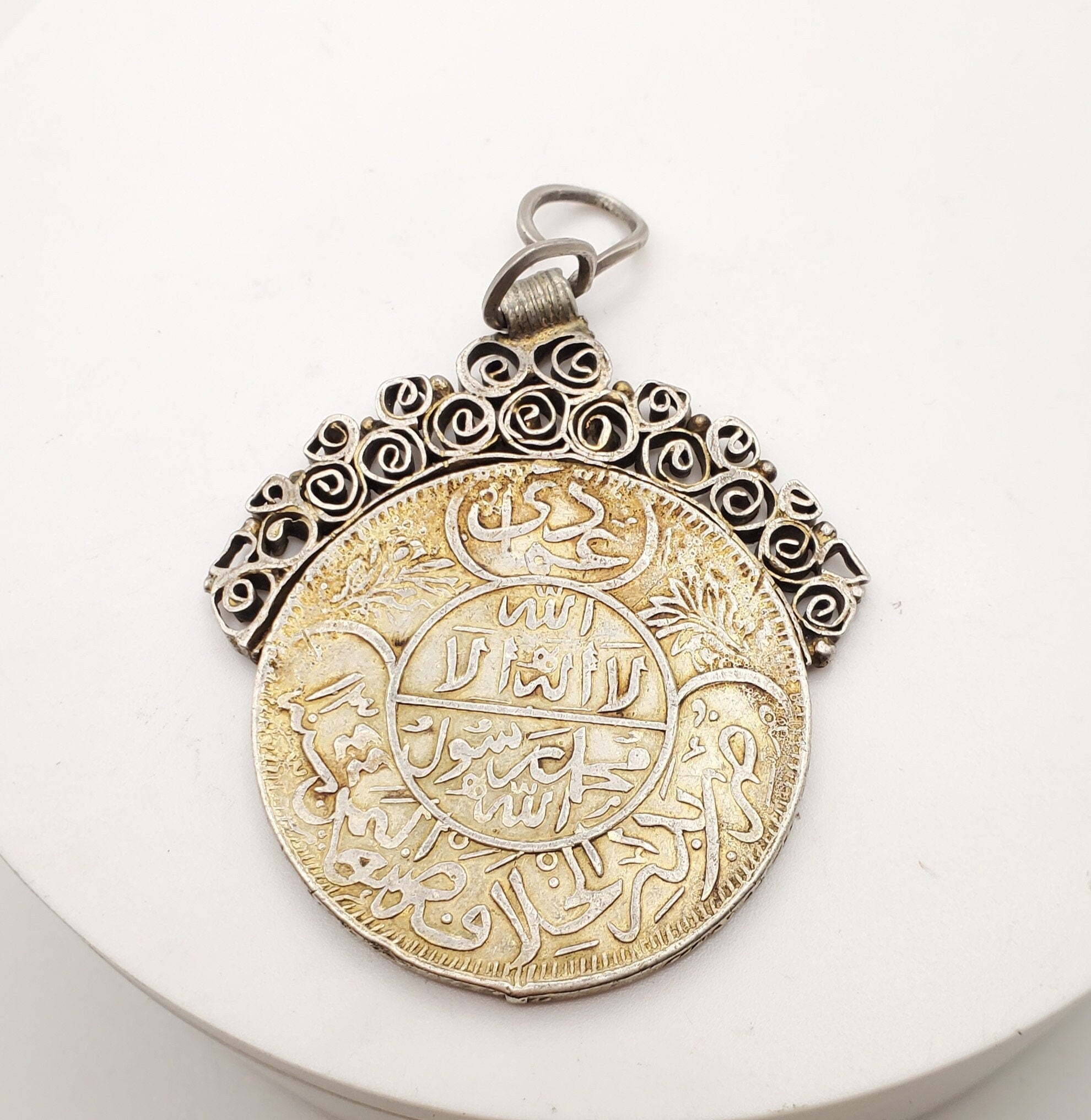 Antique Yemen Rare silver coin traditional Pendant This is a very beautiful old handmade coin pendant made of 925 silver and gold The world`s most famous silver coins. Measures approximately 2" x 3‘‘ long. weights 30 grams Age: over 100 great condition - Collectible. great condition -Feel free to email me for more pictures. Collectible.......africanbazaarus.com