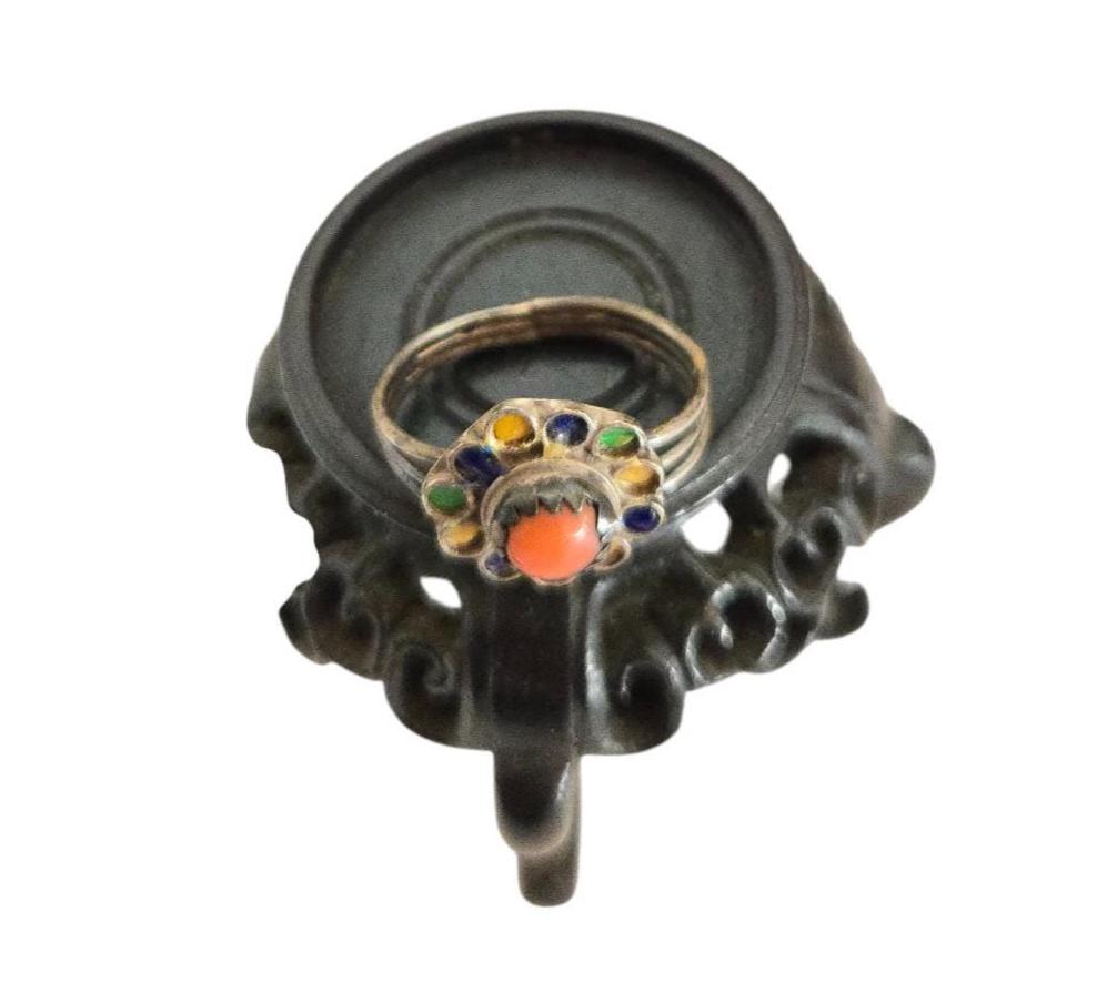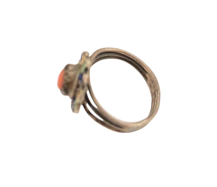 Moroccan Talismanic Berber Silver Enamel Coral Ring size 5 This is a classic old design from the Berber their craftsmanship, Talismanic Ring Engraved to Increase Power and Authority