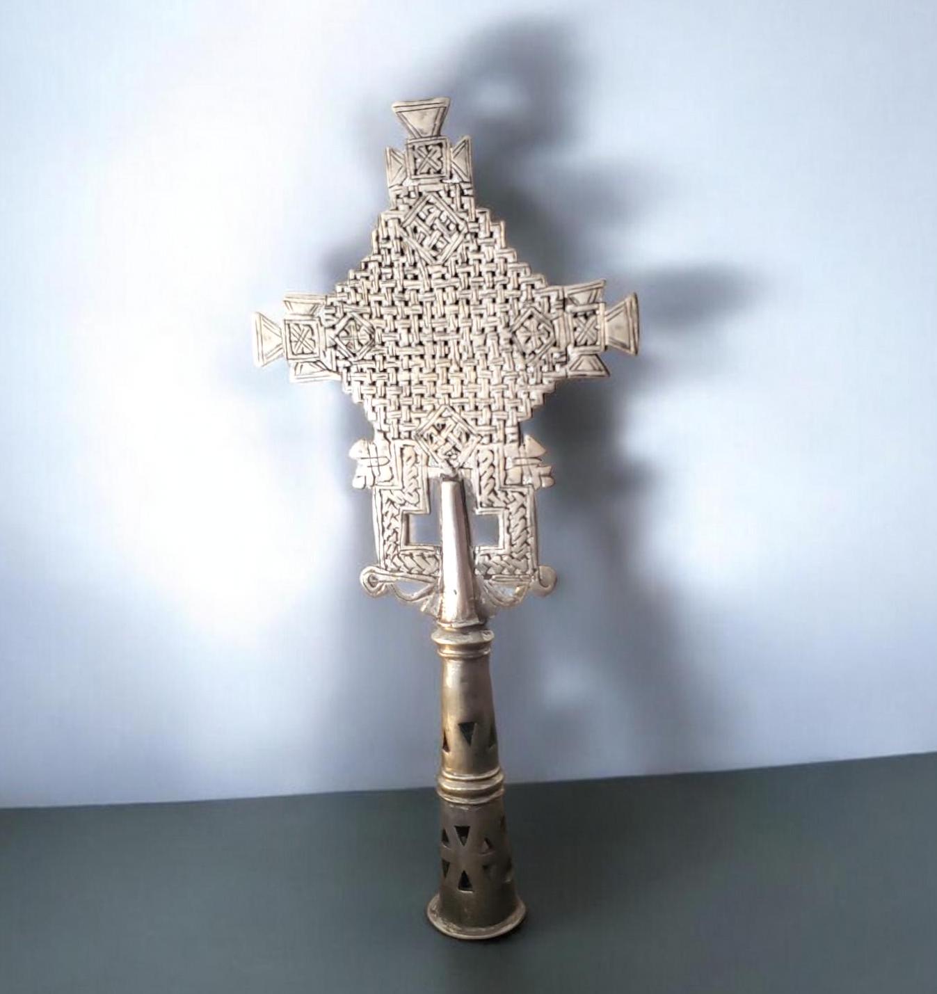 Ethiopian Orthodox Processional Cross: Handmade Nickel Coptic Decor