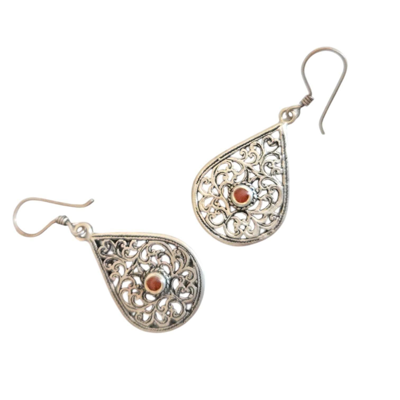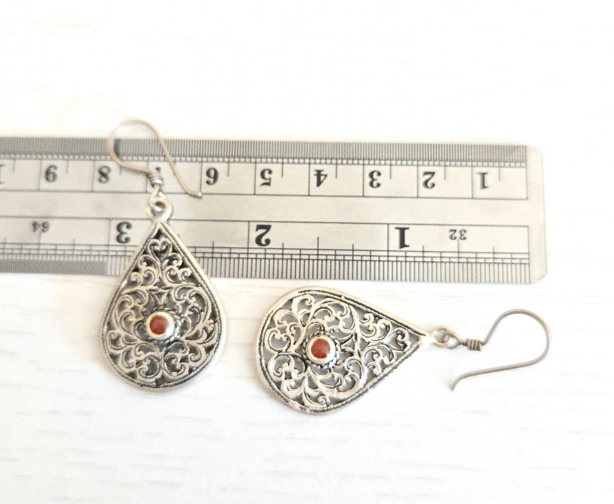 Moroccan Berber Dangle Earrings with Coral Sterling Silver red coral This is a great authentic jewelry from Morocco. Each earring measures just over 2.5" long and just under 1‘‘.5 wide./ 12.gr The workmanship is wonderful. These earrings were hand made sterling silver 925 new high-silver content if you have any questions - Feel free to contact me. . Thank you for visiting my shop All my jewelry has been collected over 20 years ago .I will be listing more pieces shortly as I am constantly always working on posting more. piece to add to the collection .I ship all over the world and price includes a tracking service.