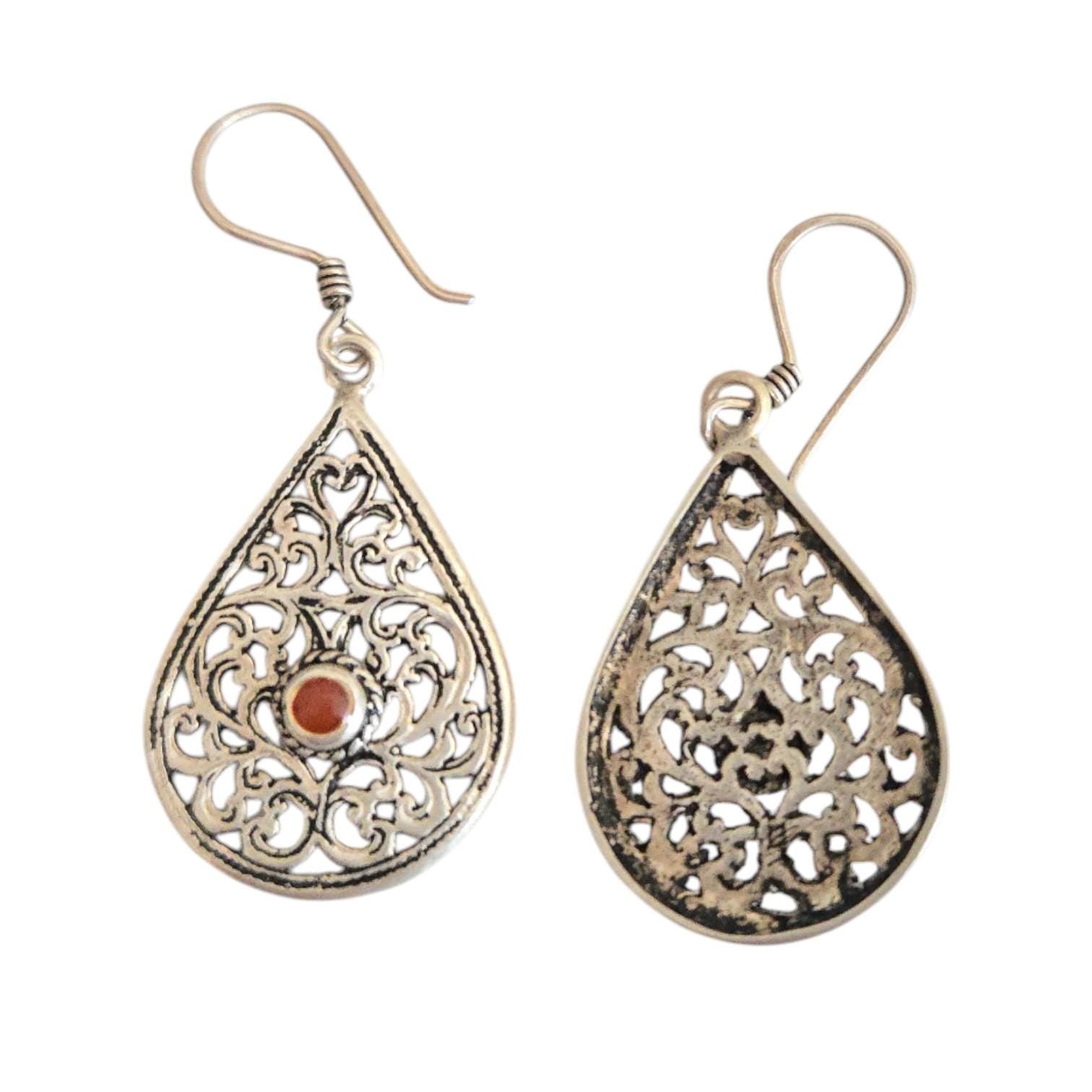 Moroccan Berber Coral Dangle Earrings: Sterling Silver, Handmade