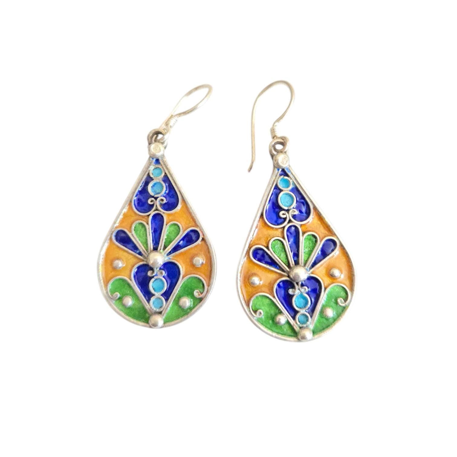 Moroccan Berber Enamel Sterling Silver Dangle Earrings