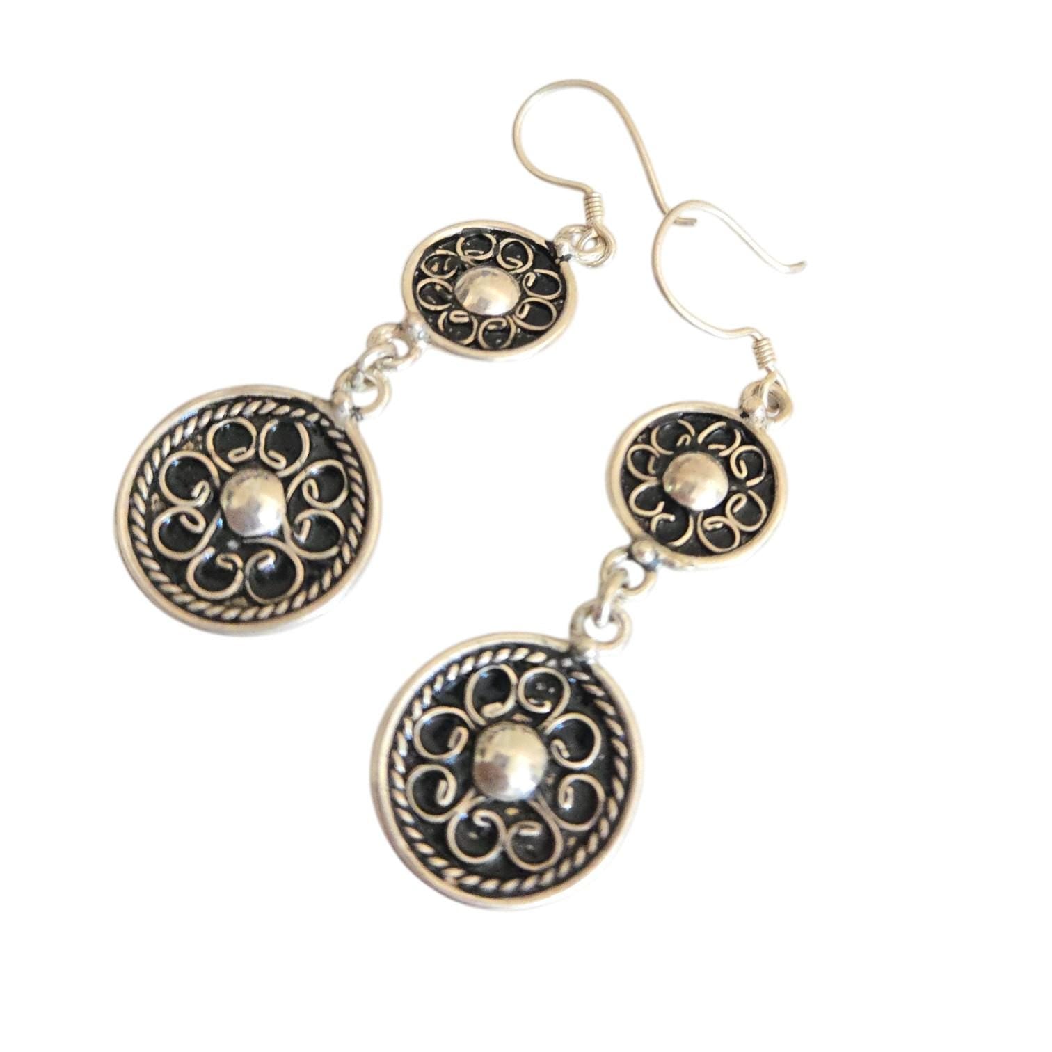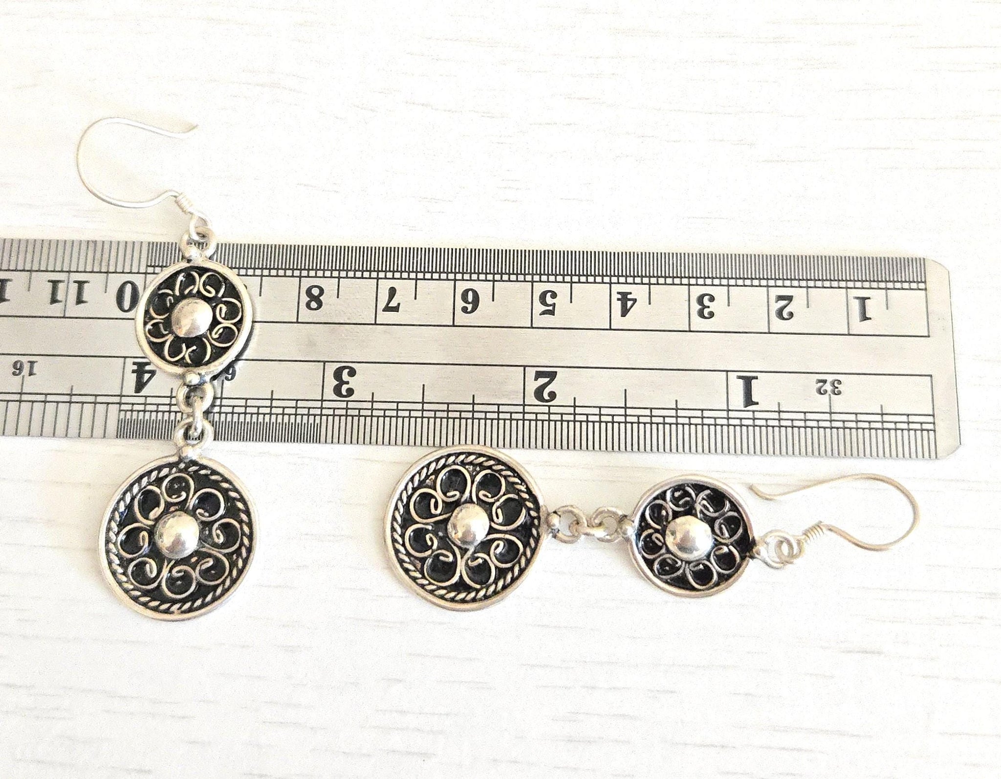 Moroccan Berber Sterling Silver enamels Dangle Earrings, Berber Jewelry, sliver Earrings, Dangle & Drop Earrings, this is a great authentic jewelry from Morocco. Each earring measures just over 3" long and just under 1‘‘. wide. / 28.gr the workmanship is wonderful. These earrings were handmade sterling silver 925 new high-silver content if you have any questions - Feel free to contact me. Thank you for visiting my shop All my jewelry has been collected over 20 years ago. will be listing more pieces shortly as I am constantly always working on posting more. piece to add to the collection. ship all over the world and price includes a tracking service.