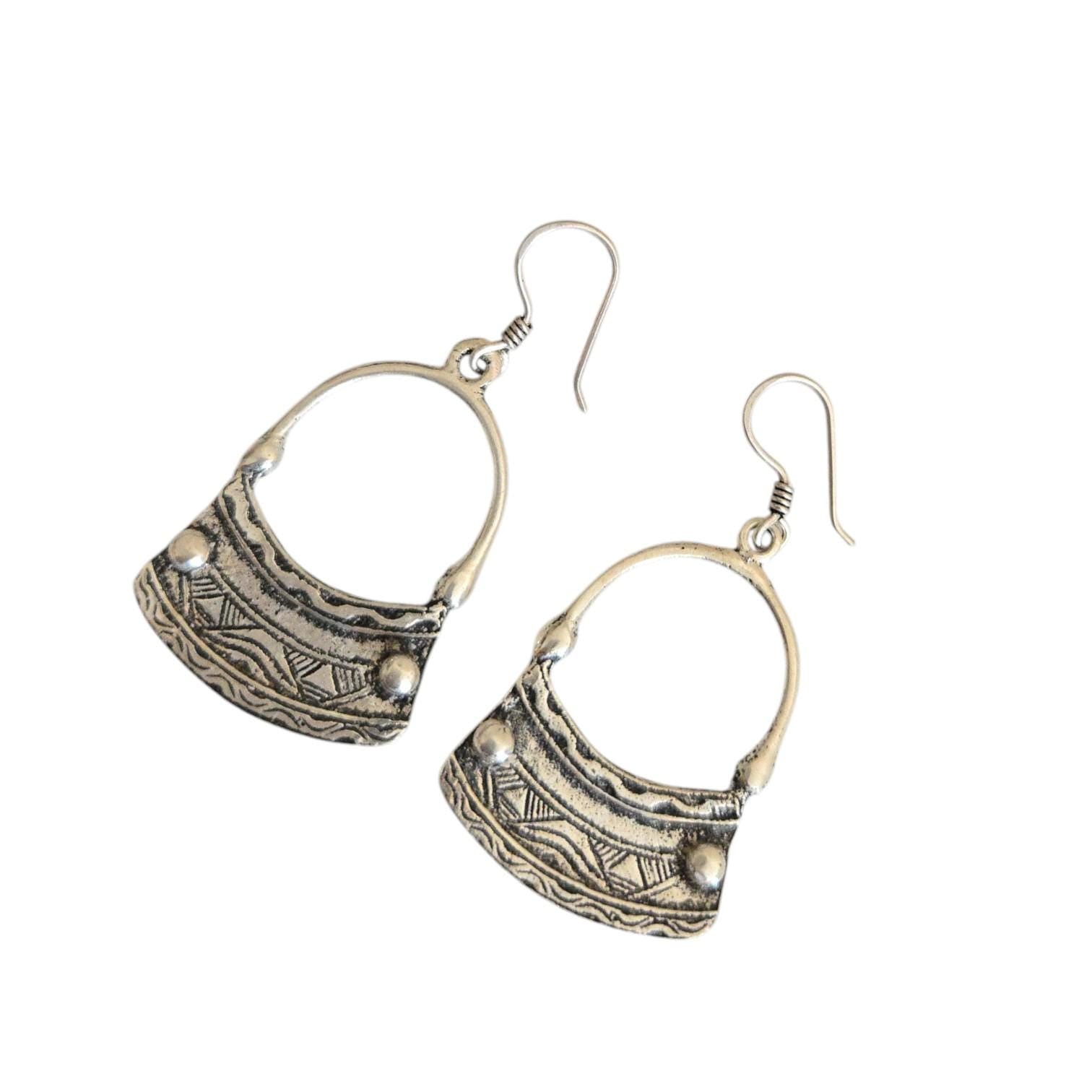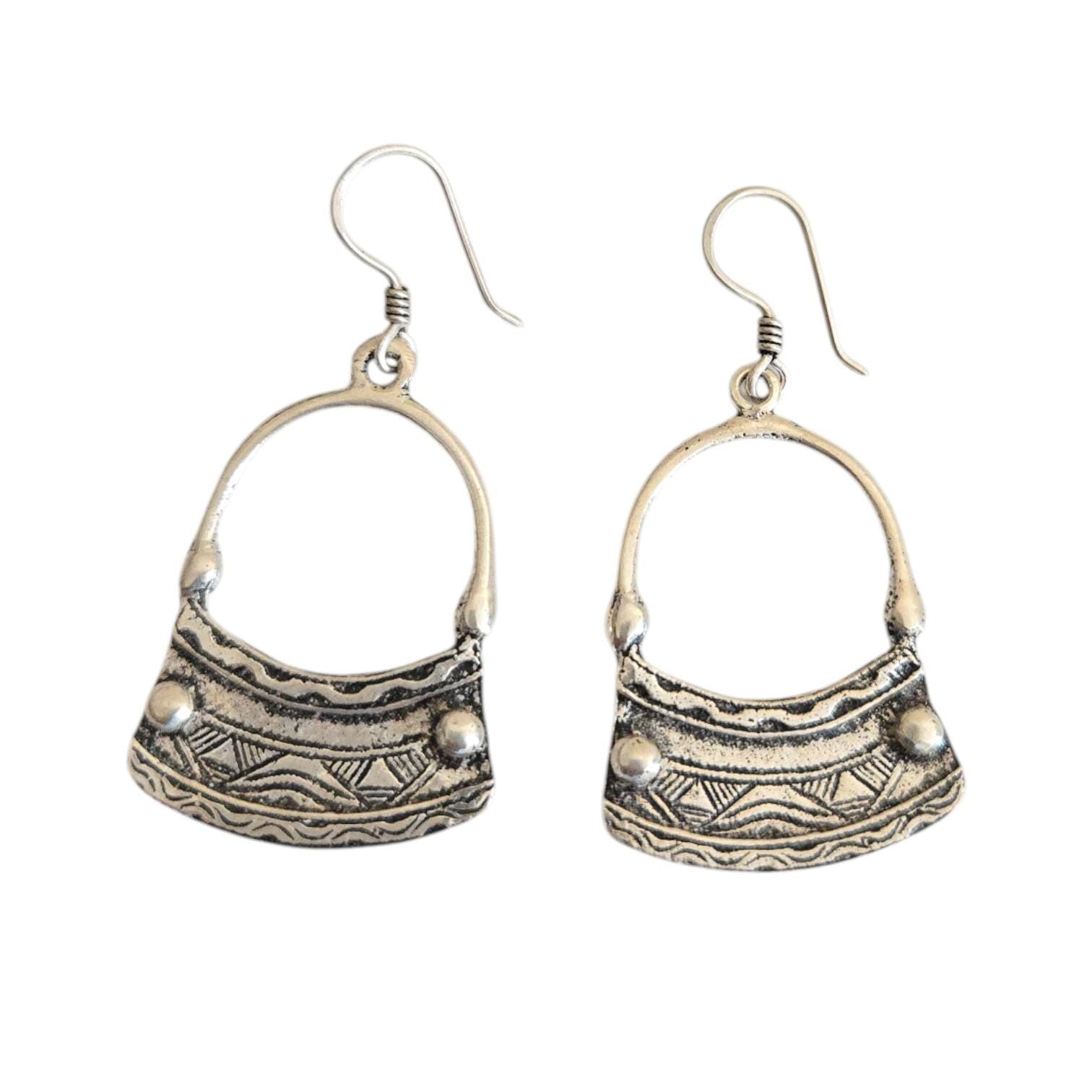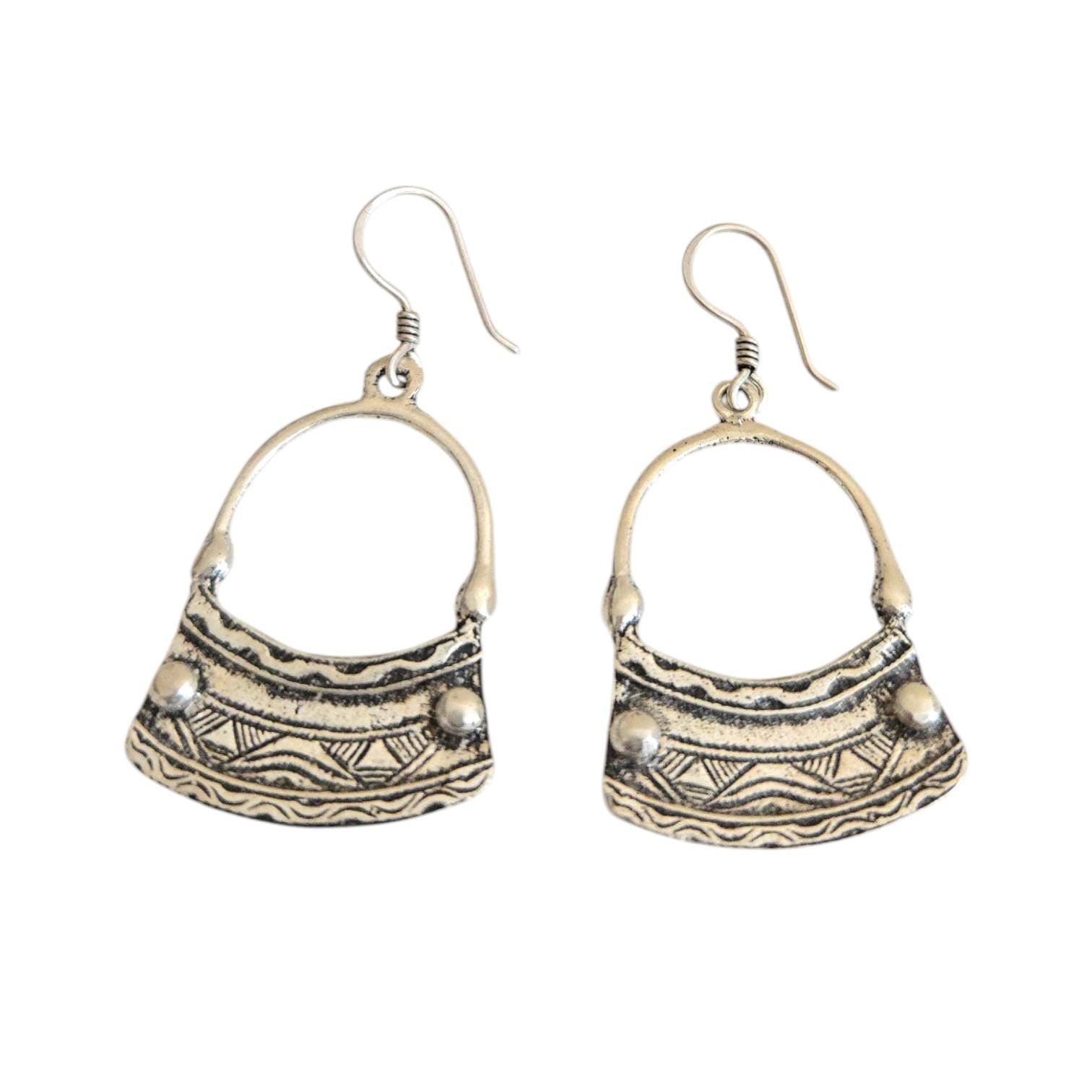 Moroccan Berber Sterling Silver Dangle Filigree Earrings This is a great authentic jewelry from Morocco. Each earring measures just over 2" long and just under 1‘‘ wide./ 12.gr The workmanship is wonderful .These earrings were hand made sterling silver 925 if you have any questions - Feel free to contact me. . Thank you for visiting my shop All my jewelry has been collected over 20 years ago. I will be listing more pieces shortly as I am constantly always working on posting more. piece to add to the collection .I ship all over the world and price includes a tracking service........africanbazaarus.com