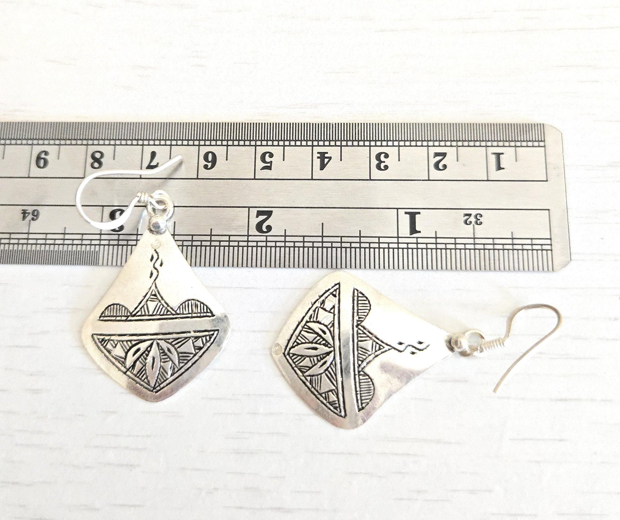 Moroccan Berber Sterling Silver Dangle Filigree Earrings This is a great authentic jewelry from Morocco. Each earring measures just over 2" long and just under 1‘‘ wide./ 12.gr The workmanship is wonderful .These earrings were hand made sterling silver 925 if you have any questions - Feel free to contact me. . Thank you for visiting my shop All my jewelry has been collected over 20 years ago. I will be listing more pieces shortly as I am constantly always working on posting more. piece to add to the collection .I ship all over the world and price includes a tracking service........africanbazaarus.com