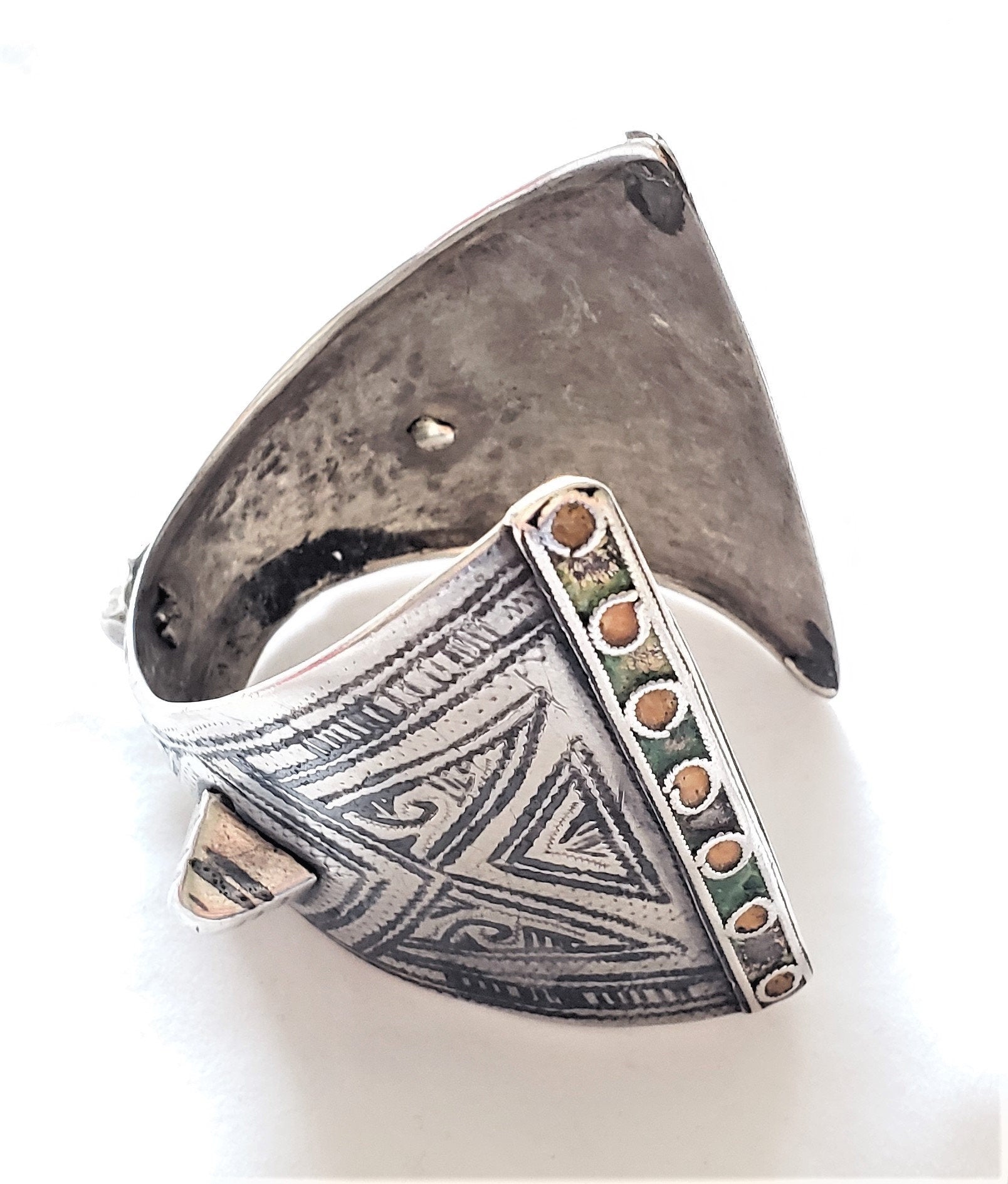 Antique SILVER Enamel Moroccan Berber Ida ou Nadif BRACELET,ethnic tri