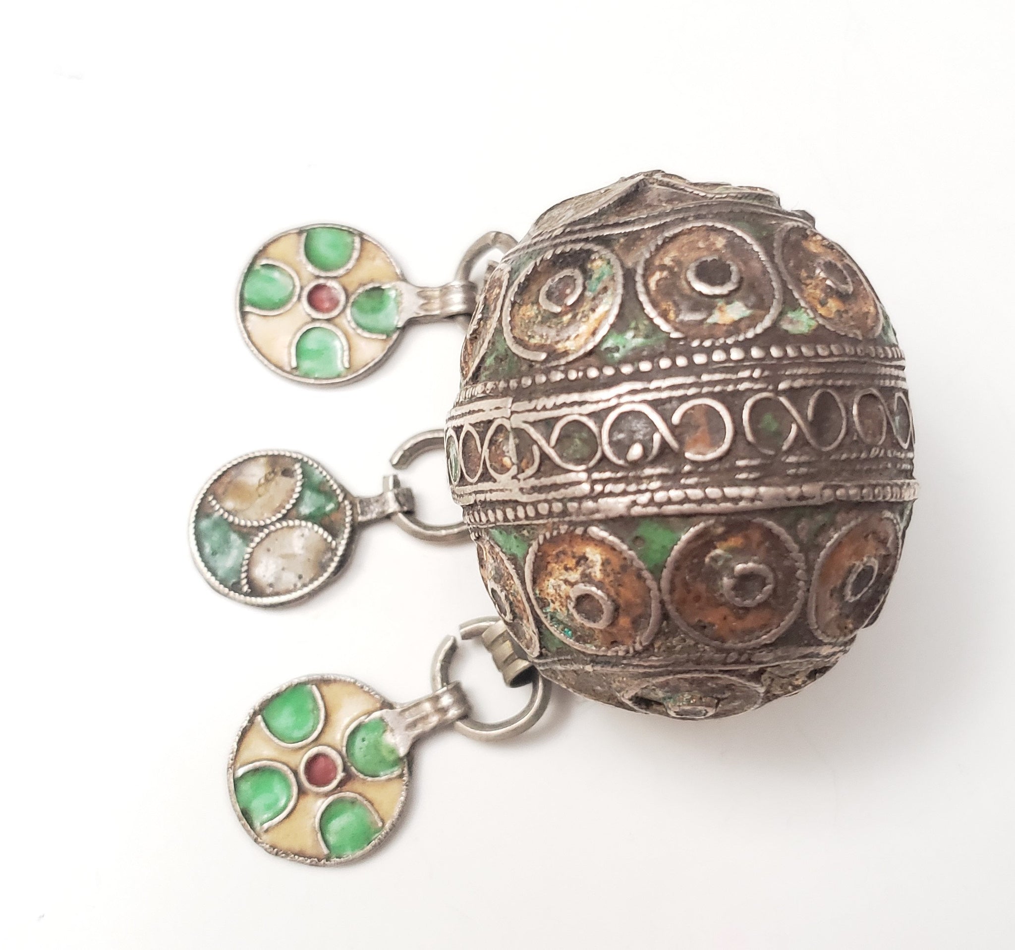 Antique Moroccan Enameled Silver Ball Pendent with Enameled/PendantHan