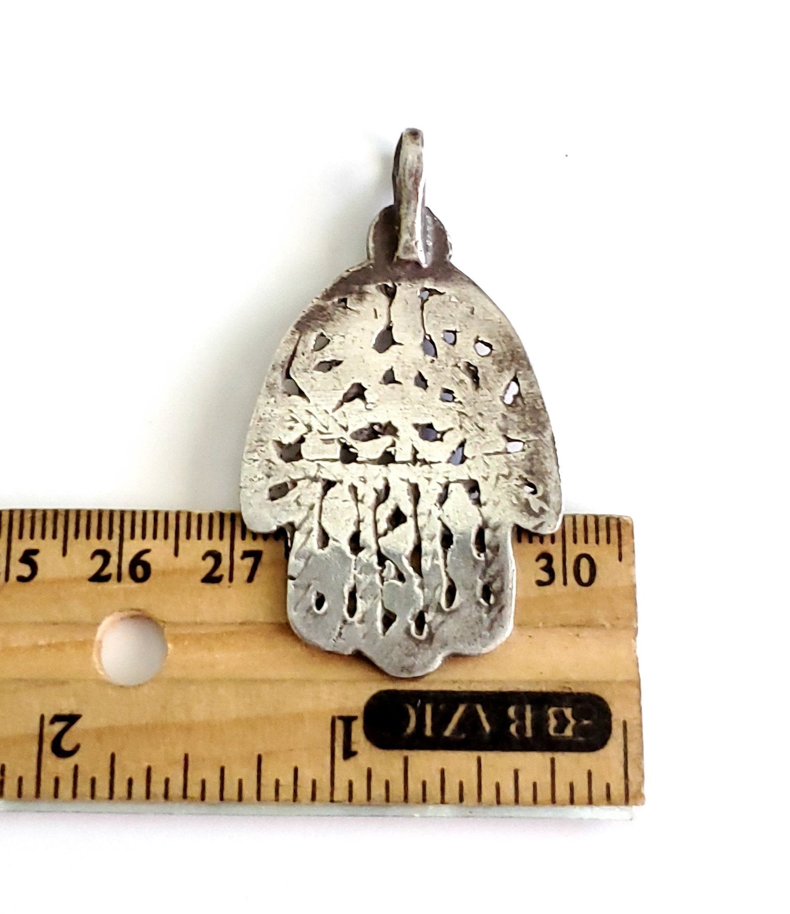 Moroccan Old silver Hand of Fatima Hamsa Pendant silver 925, Amulet,Berber Jewelry,African Jewelry,Moroccan Jewelry,Hand of Fatima Charm,