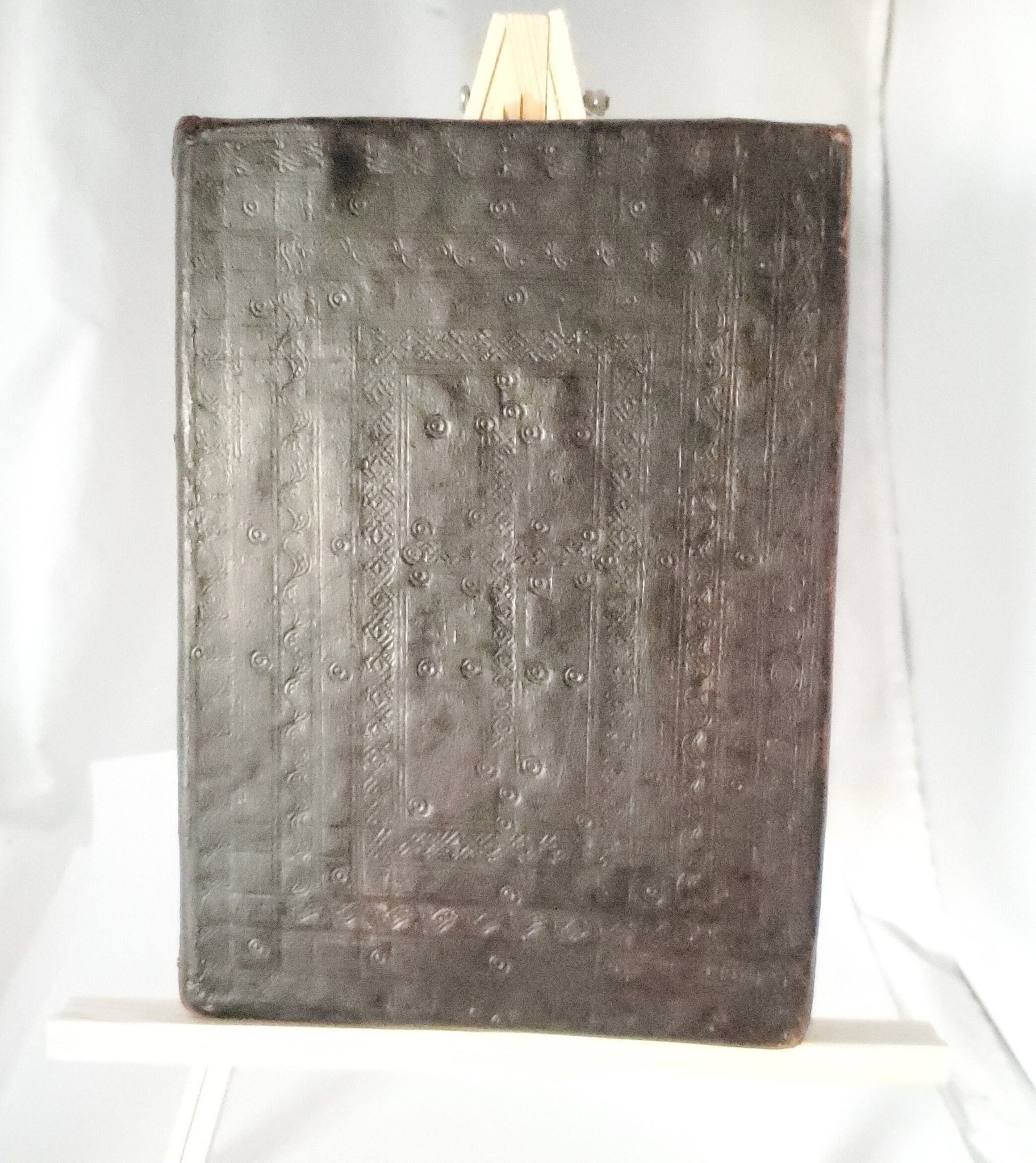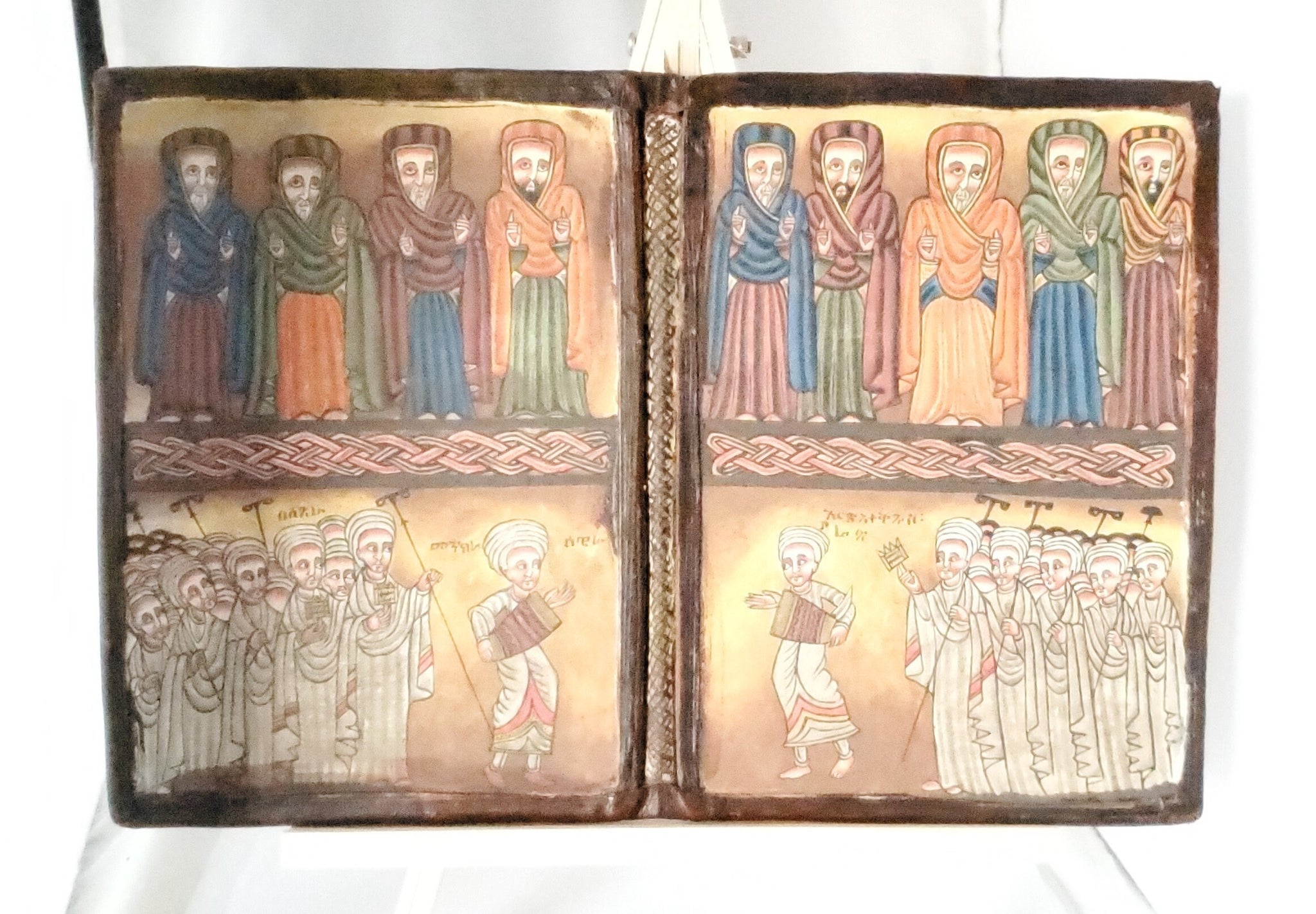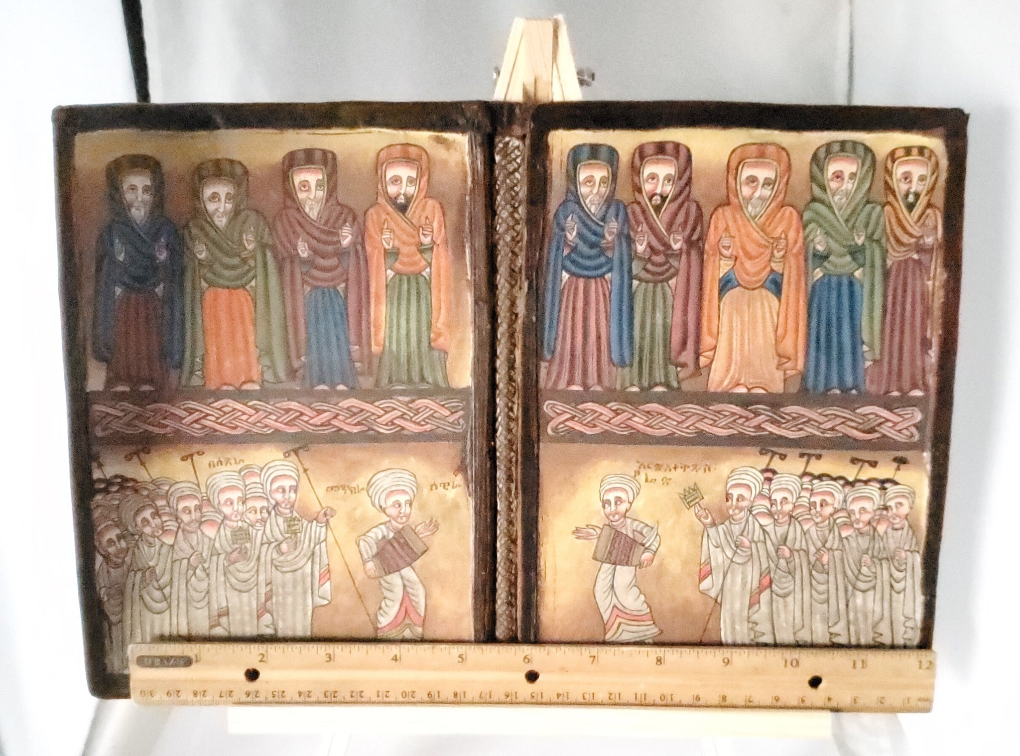 antique Ethiopian Coptic Christian Orthodox Leather cover Wood Painted