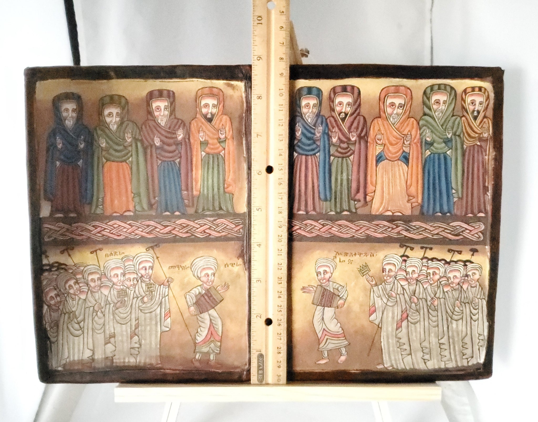 antique gorgeous Ethiopia: Hand-painted Ethiopian Tempera on Wood and bonded with leather,