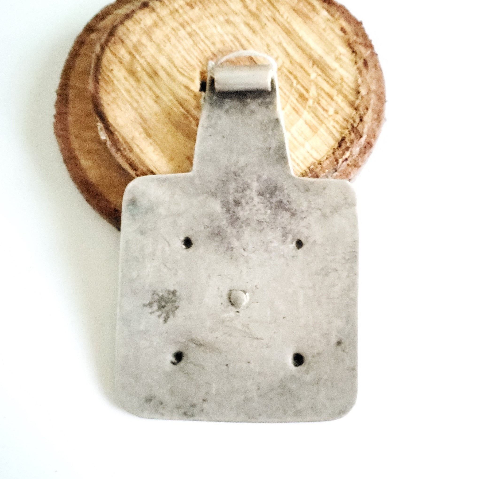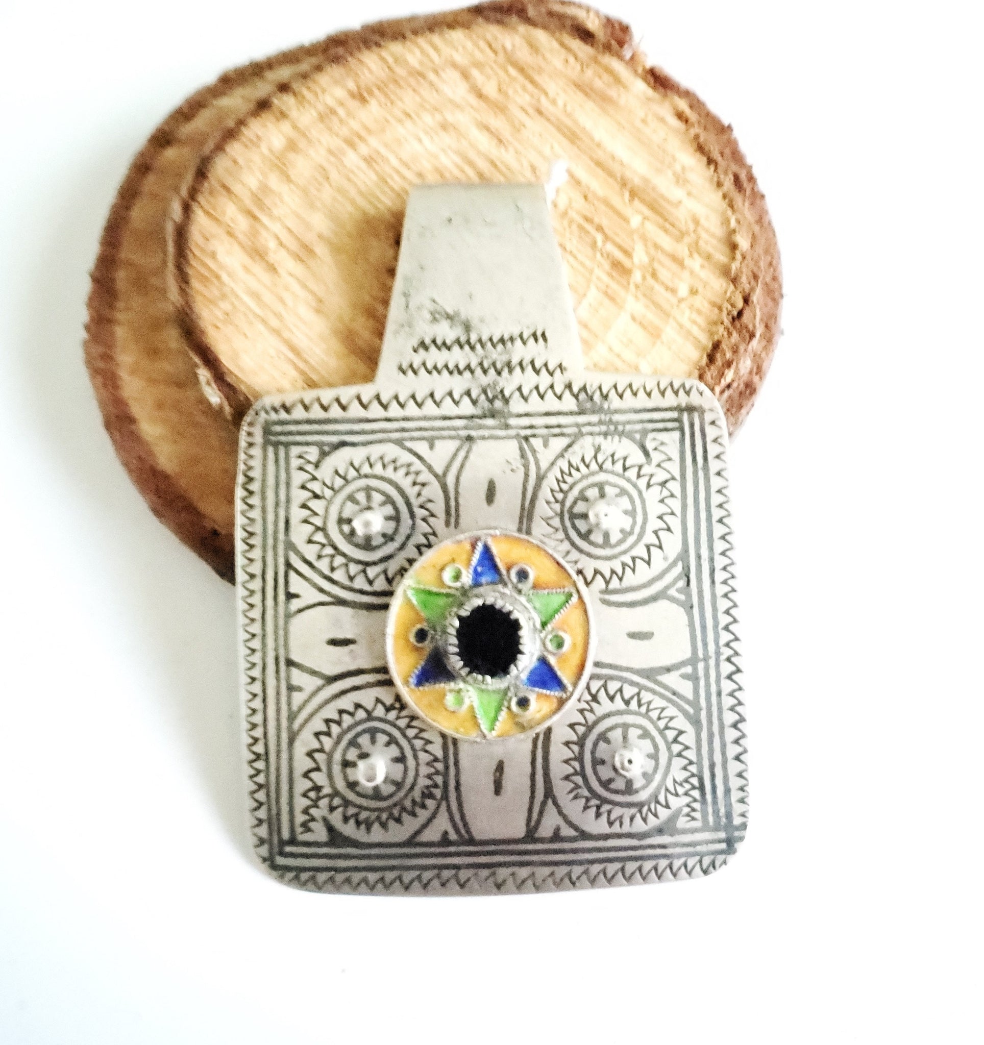 Antique Moroccan Silver Enamel and Glass cabochon Berber Pendant, Berber Amulet,Berber Jewelry,African Jewelry,Charm Pendant,