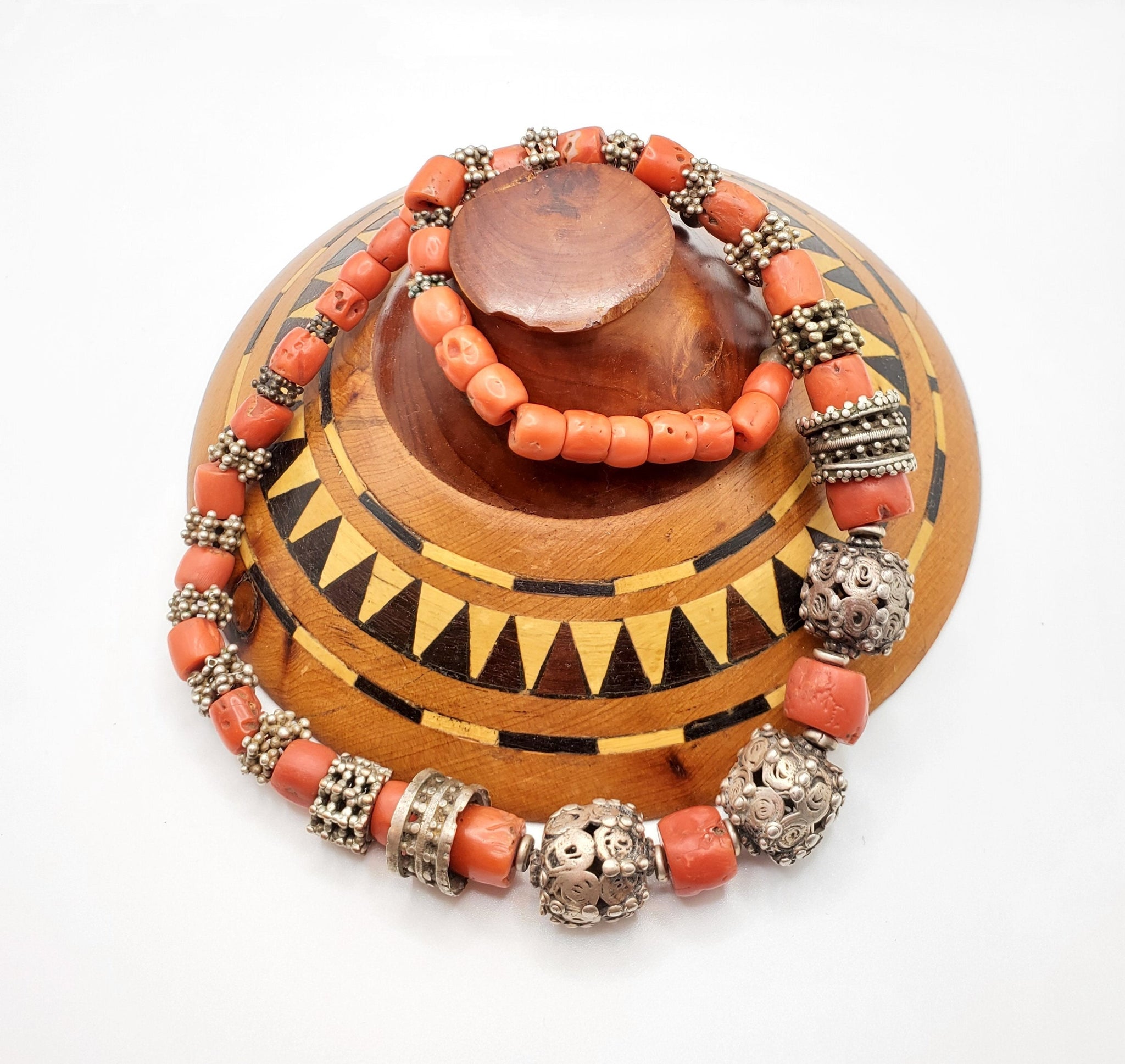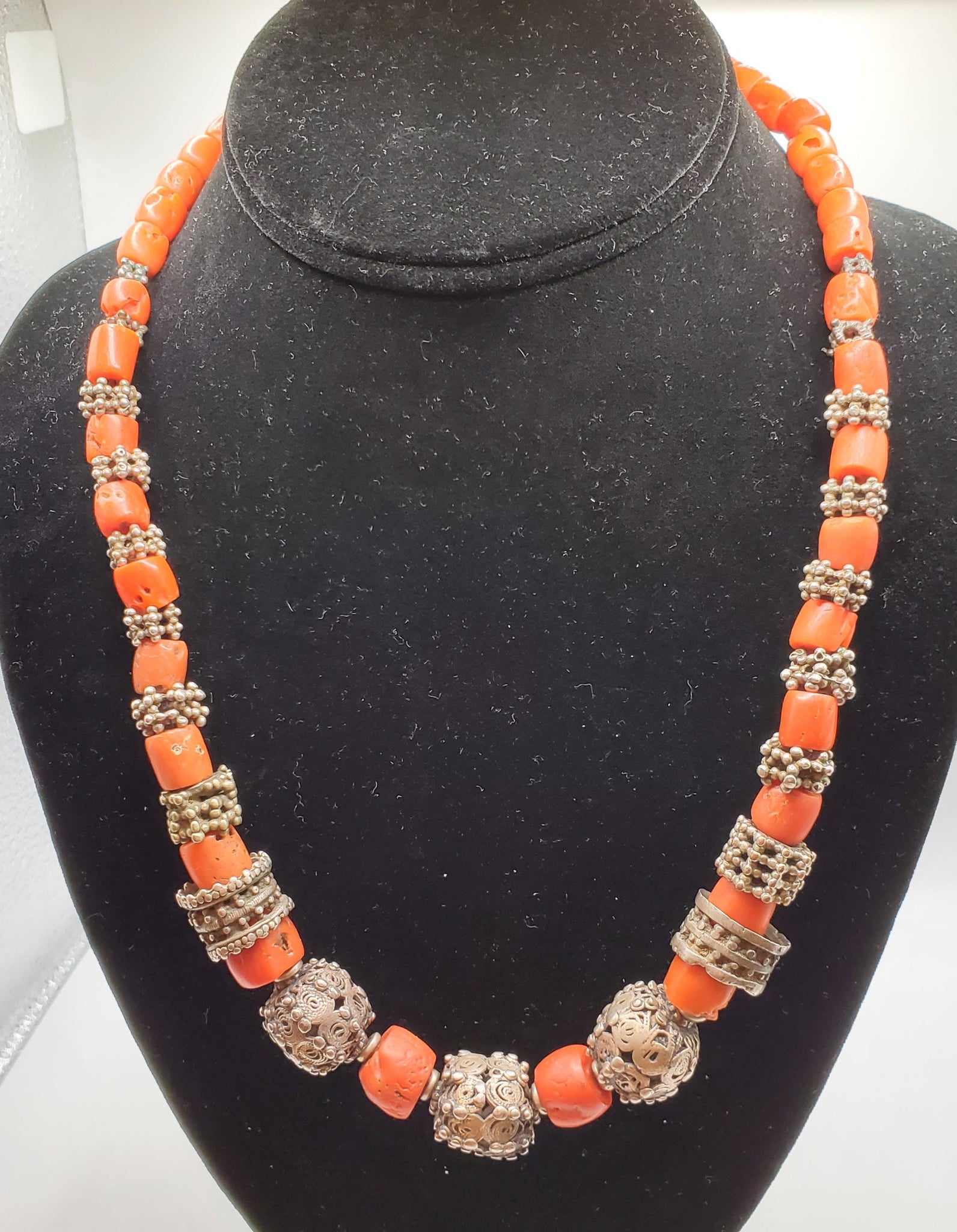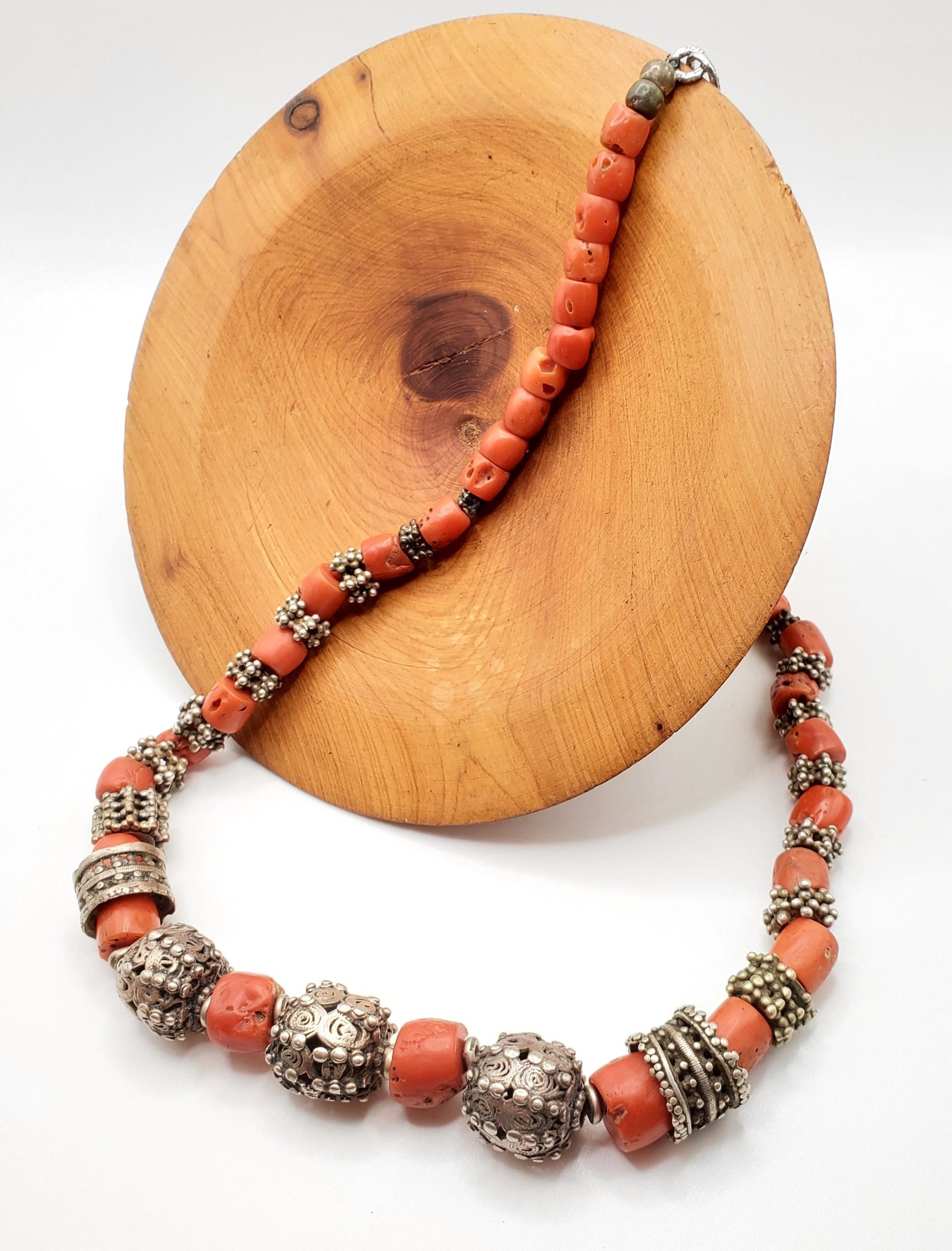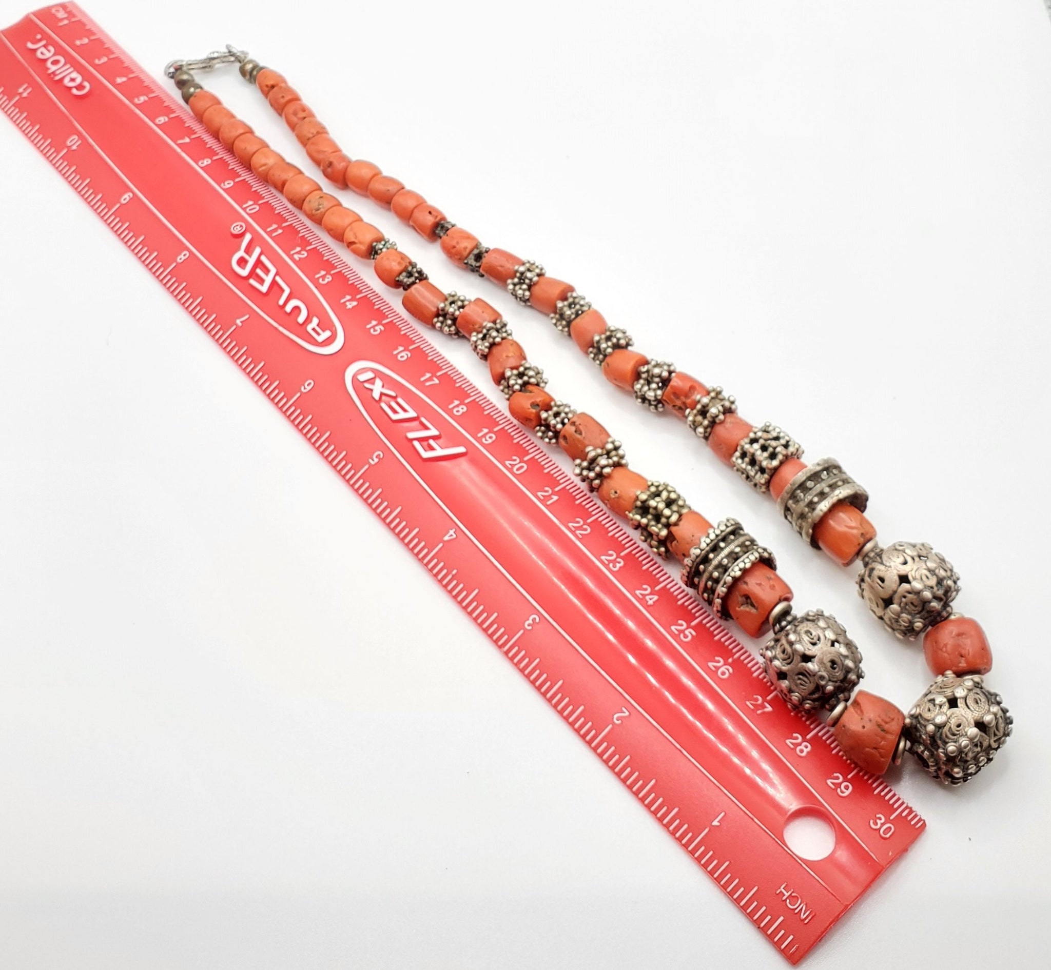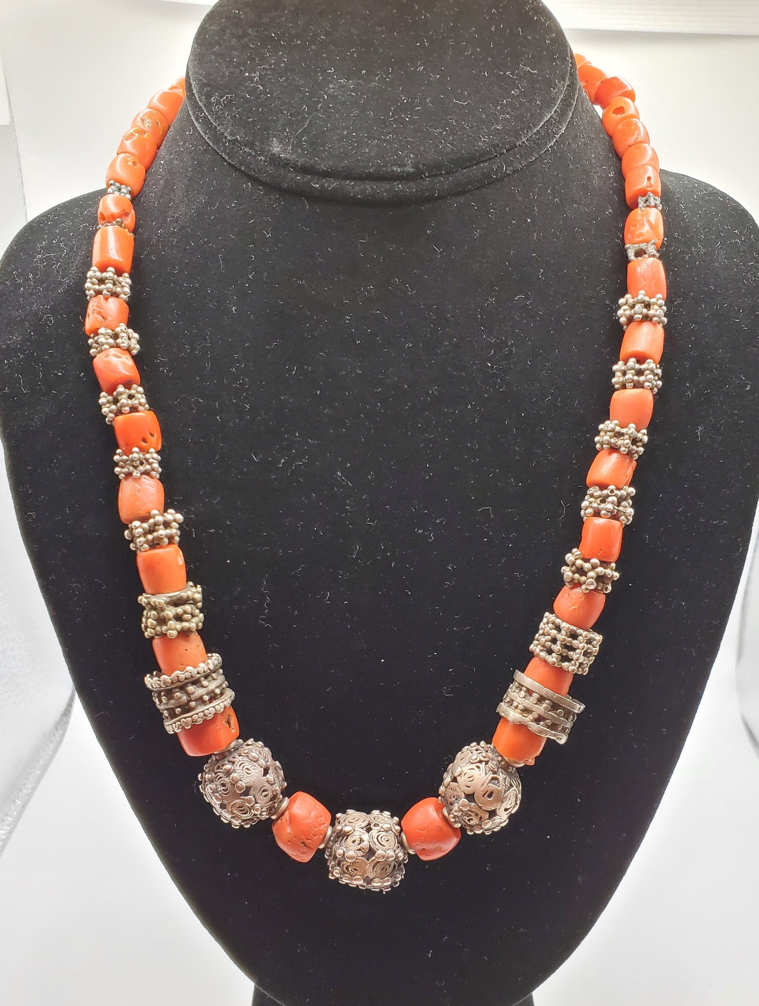 Antique Silver Bawsani filigree coral beads Necklace form Yemen tribal