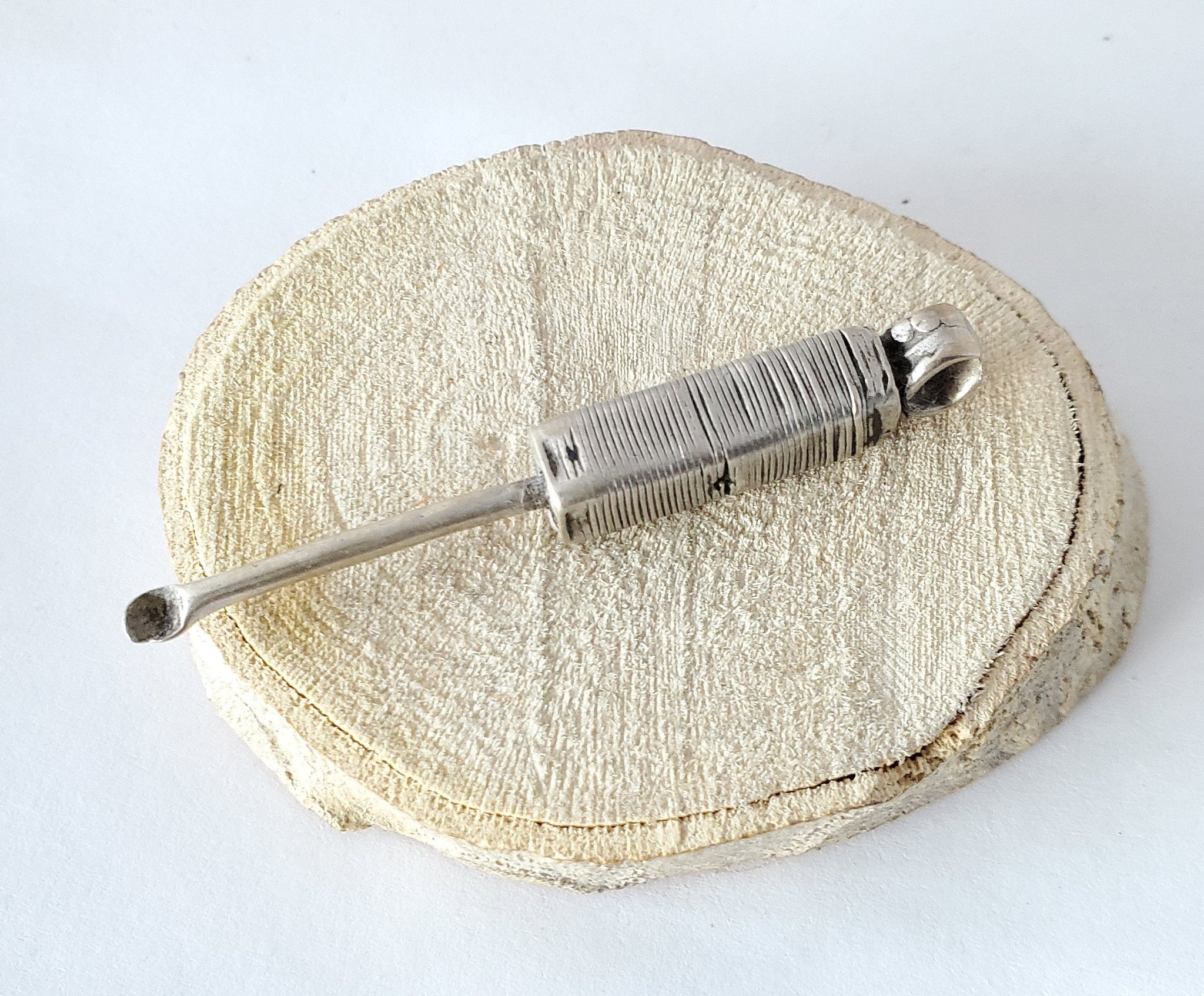 Antique silver grooming tool from Ethiopia or Yemen which would have been worn as a pendant and used to clean ears as needed. High silver content and over 100 years old! 2.5 long x .5"wide x 8mm thick with a large 22mm loop for stringing .very collectible and would be perfect for every day wear on a necklace or adding to your Ethiopian collection. CONTACT ME IF YOU WANT TO SEE MORE PIC I DO HAVE MORE THANK YOU