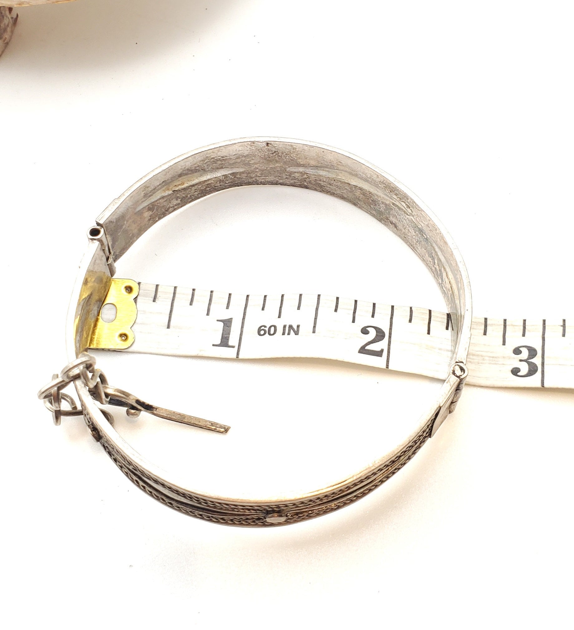 silver bracelet is a unique piece of Moroccan jewelry that showcases the intricate craftsmanship of the Berber tribe. traditional charm make it a timeless accessory that complements any outfit. The bracelet is made of fine sterling silver . This ethnic tribal bangle is a vintage item that is handmade in Morocco, making it an original and authentic piece of jewelry. Its features include ethnic, regional, and tribal themes, making it a perfect addition to any jewelry collection. This unisex bracelet is perfect for fashion enthusiasts who appreciate the beauty and elegance of antique jewelry. Measures just under 2''.5 wide (at the widest) and has an inner diameter of just over 7''x.22mm 40gr The bracelet is in excellent condition feature detailed wire-work high grade alloy of silver with wonderful wear
