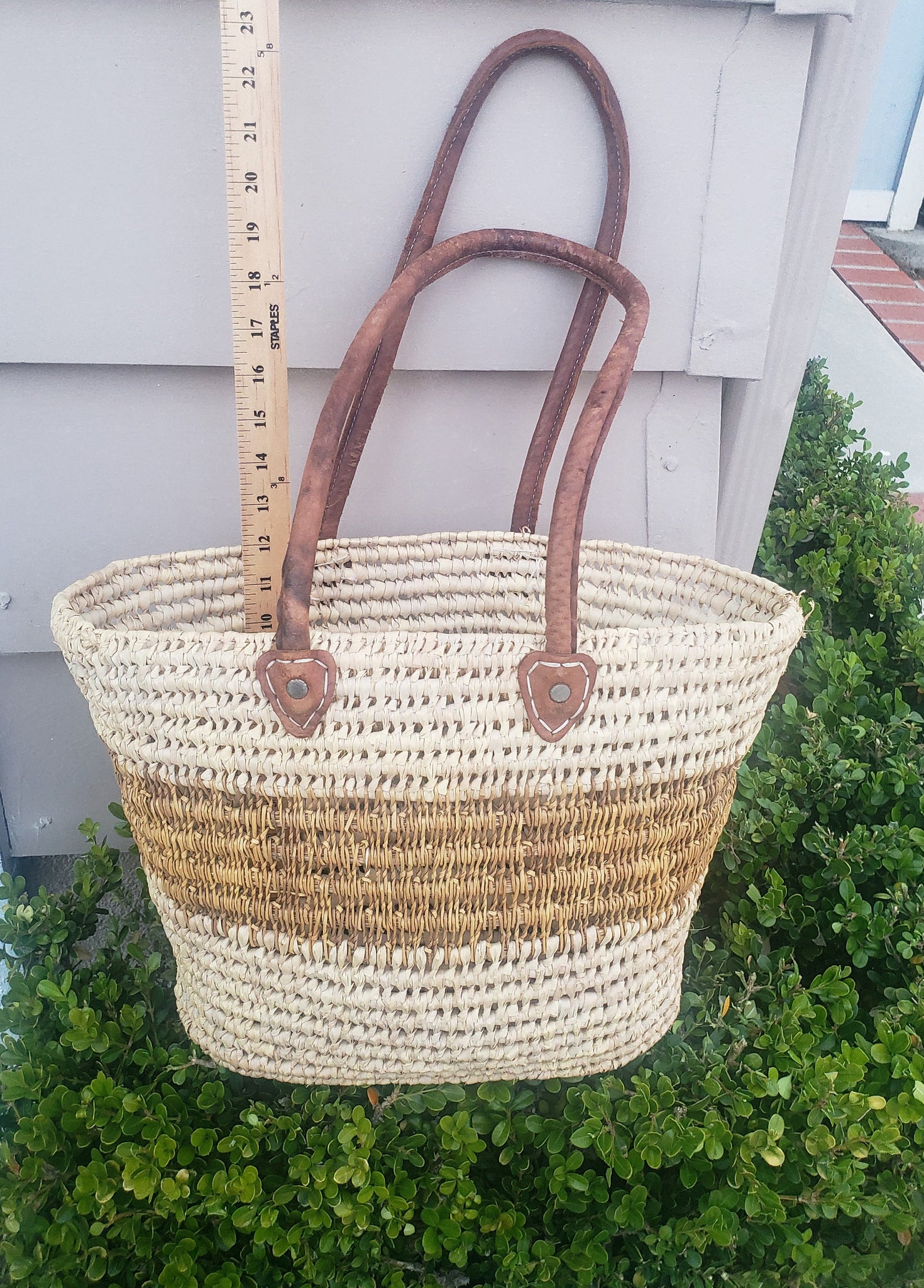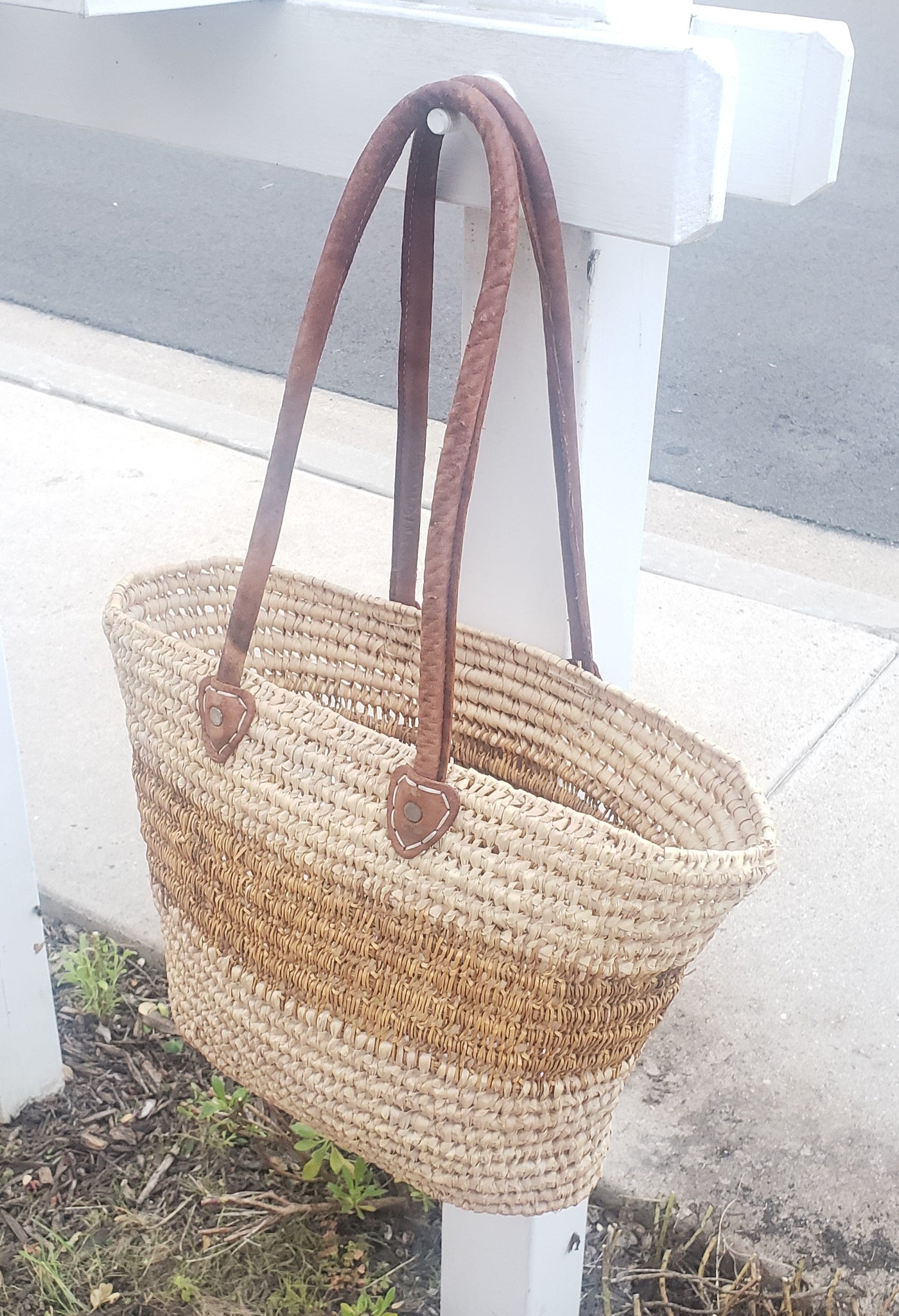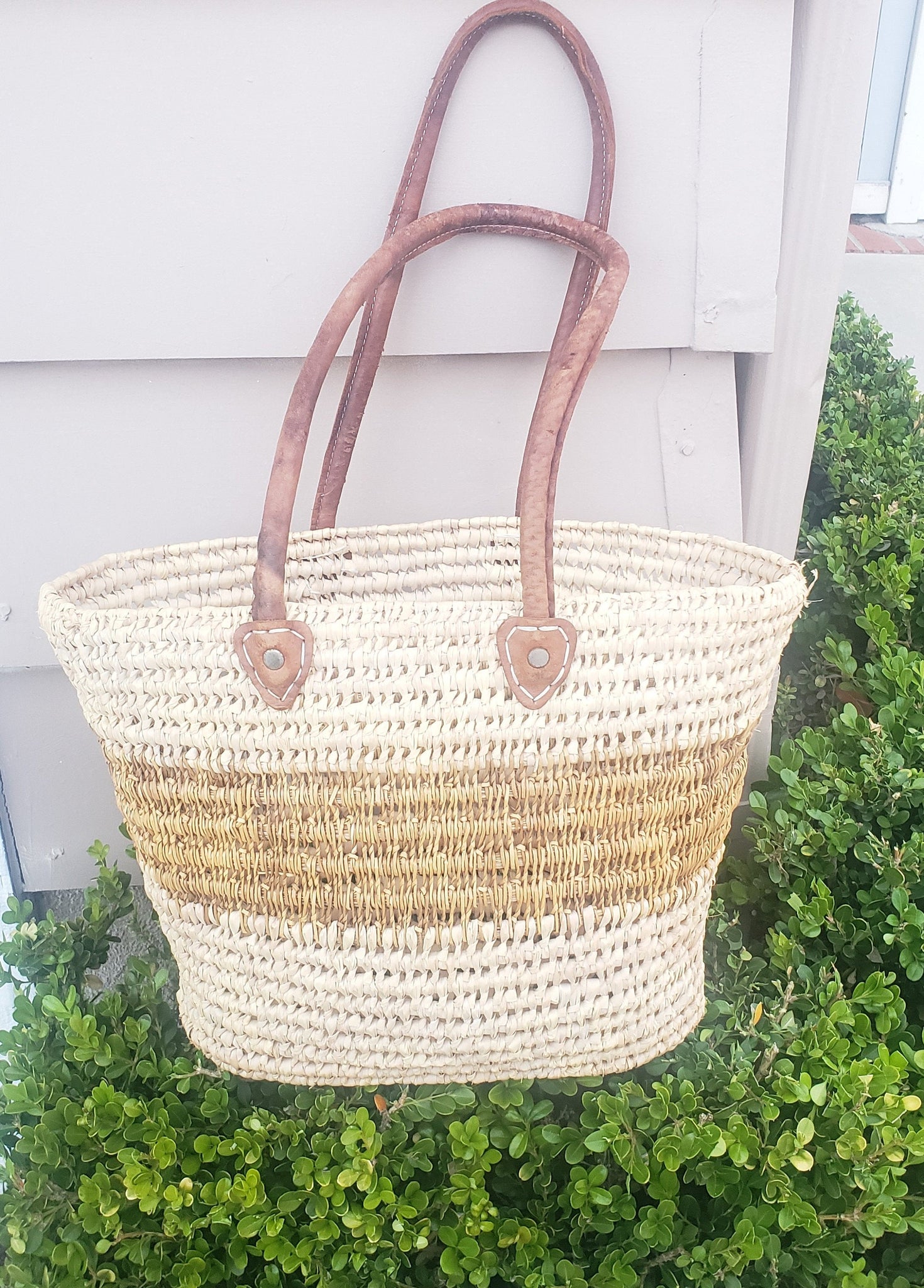 Handmade Moroccan Natural French Basket Leather Handle ,African Straw