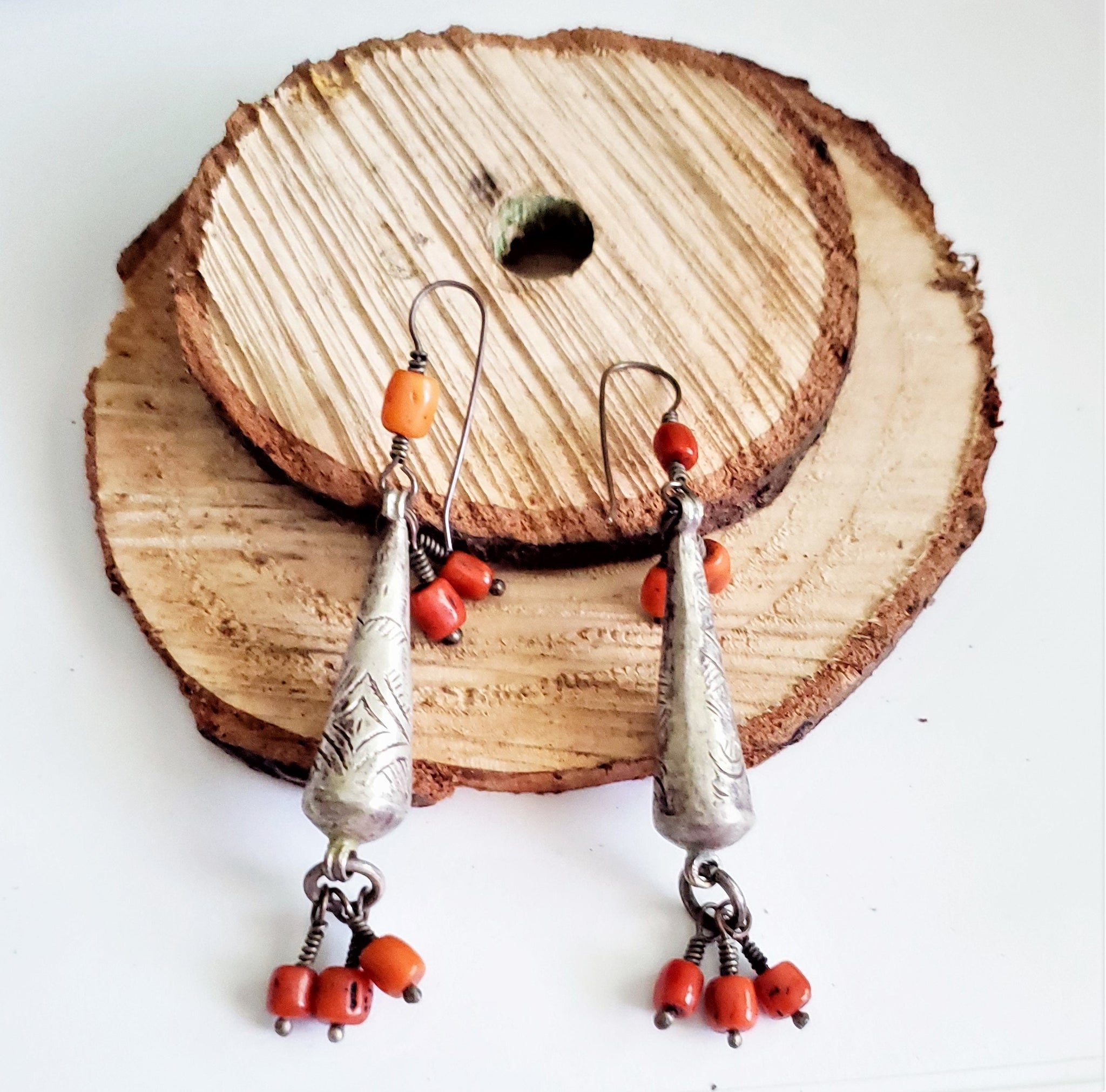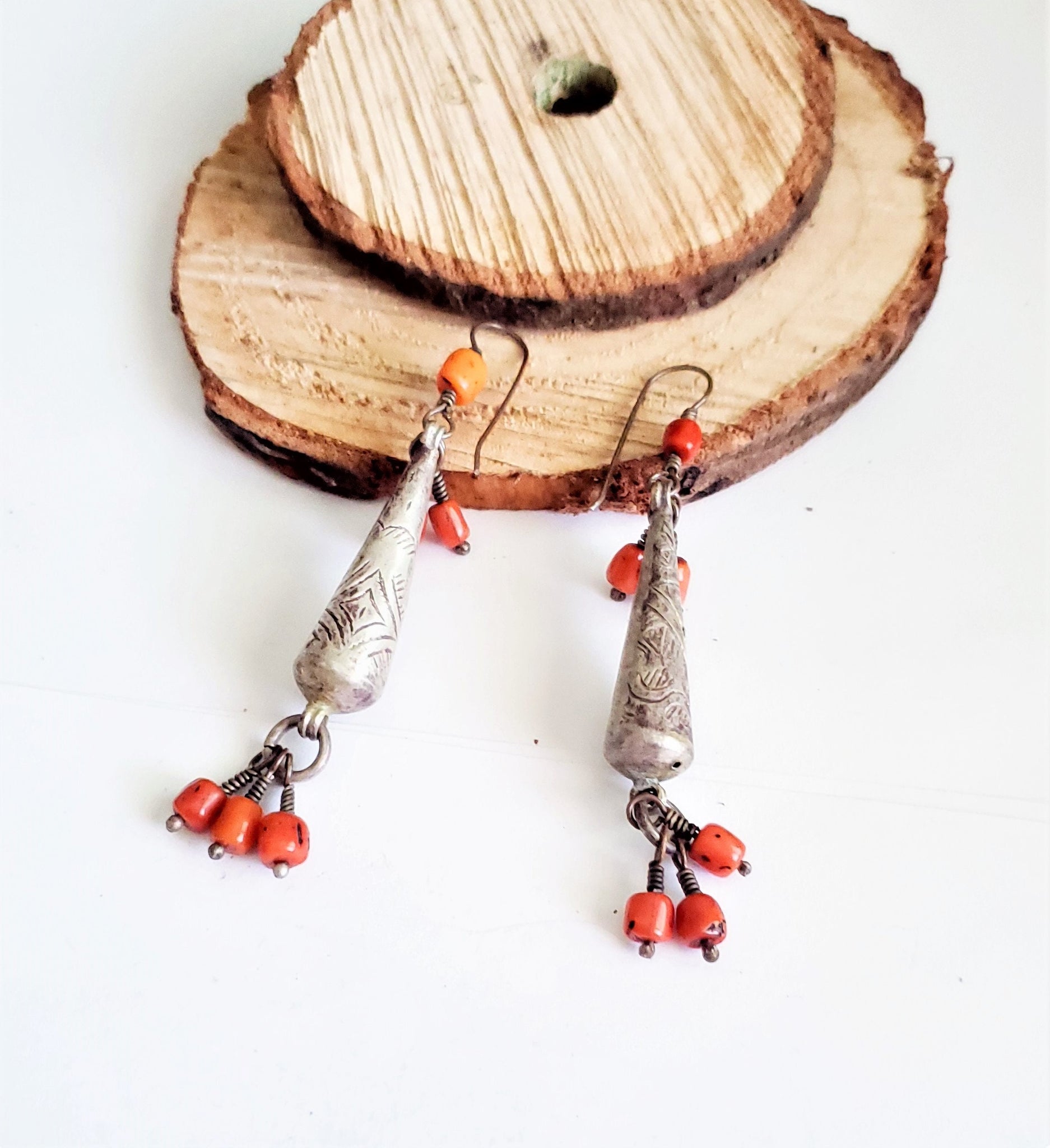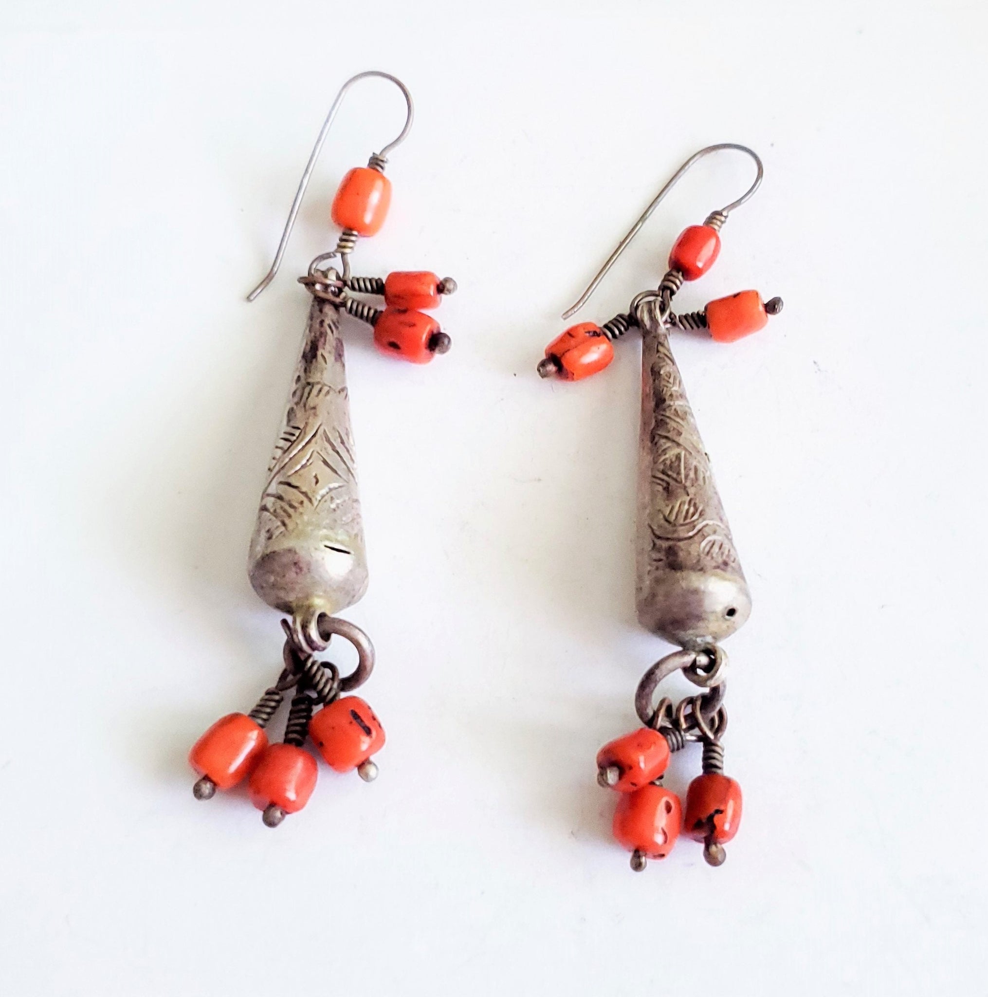 Moroccan Berber Filigree Sterling Silver Dangle Earrings This is a great authentic Filigree jewelry from Morocco. Each earring measures just over 3" long and just under 1'' .5 wide./ 19.gr The workmanship is wonderful .These earrings were hand made sterling silver 925 new high-silver content if you have any questions - Feel free to contact me. . Thank you for visiting my shop All my jewelry has been collected over 20 years ago.I will be listing more pieces shortly as I am constantly always working on posting more. piece to add to the collection.I ship all over the world and price includes a tracking service.