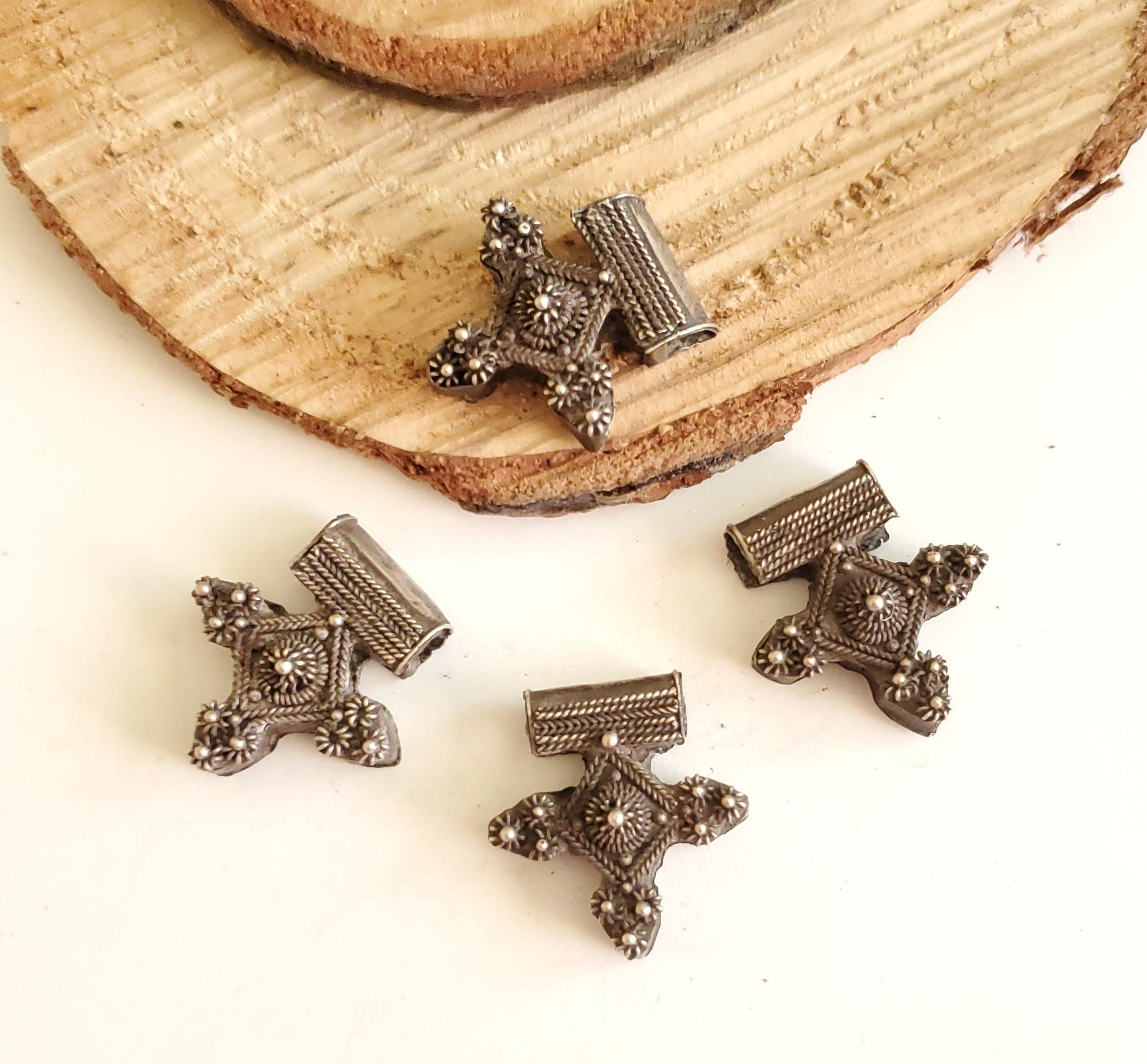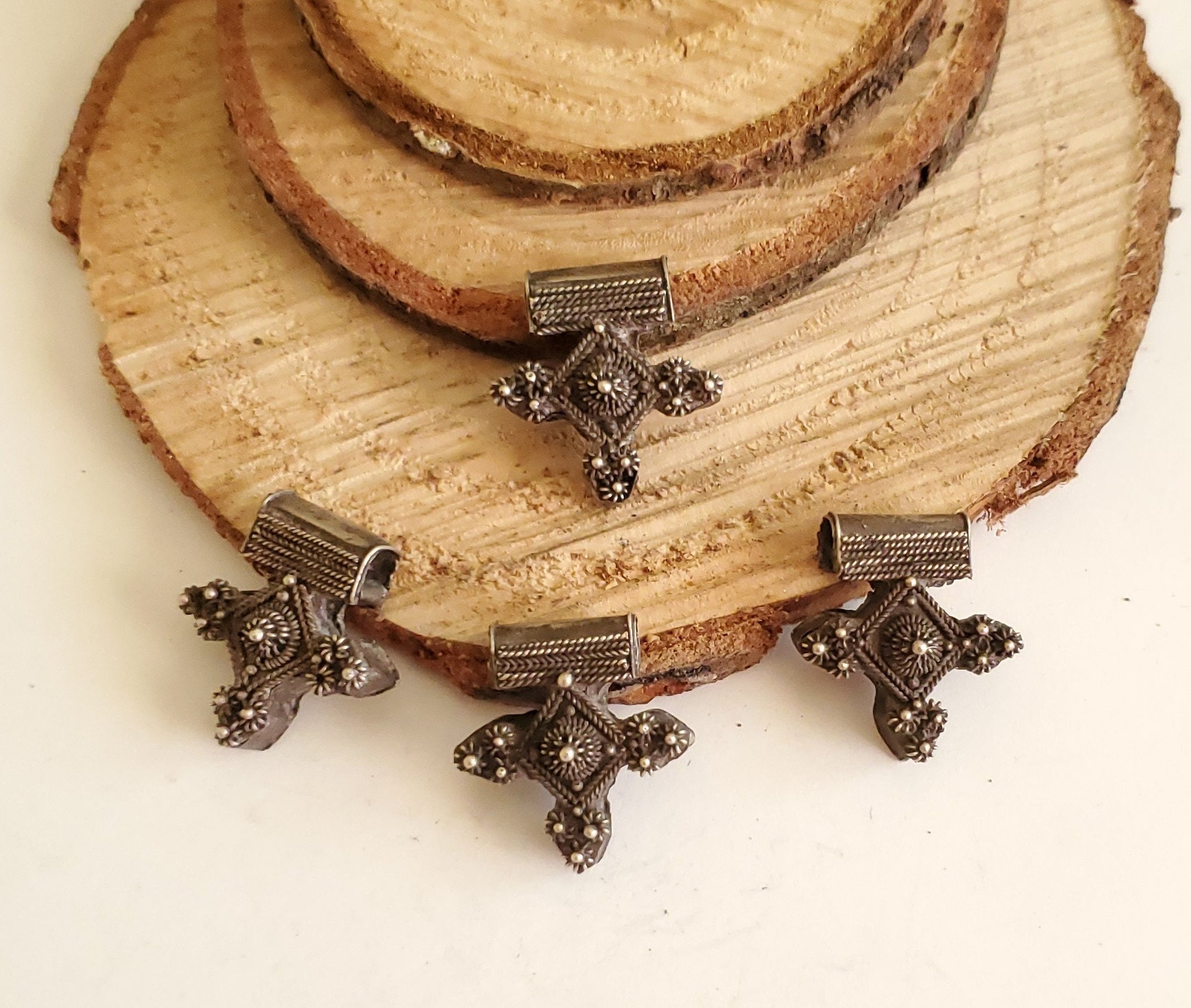 Moroccan very Old traditional silver cross from the Berbers of south Morocco. This kind of Moroccan crosses Very rare in not easy to come by. Good condition with some dents (see pictures). Collectible and useful as jewelry supplies.Measures: 1"by 1'' in weight is 7grams $ 29 EA Feel free to email me for more pictures. other shop https://www.etsy.com/shop/Africanbazar2US?ref=seller-platform-mcnav.......africanbazaarus.com