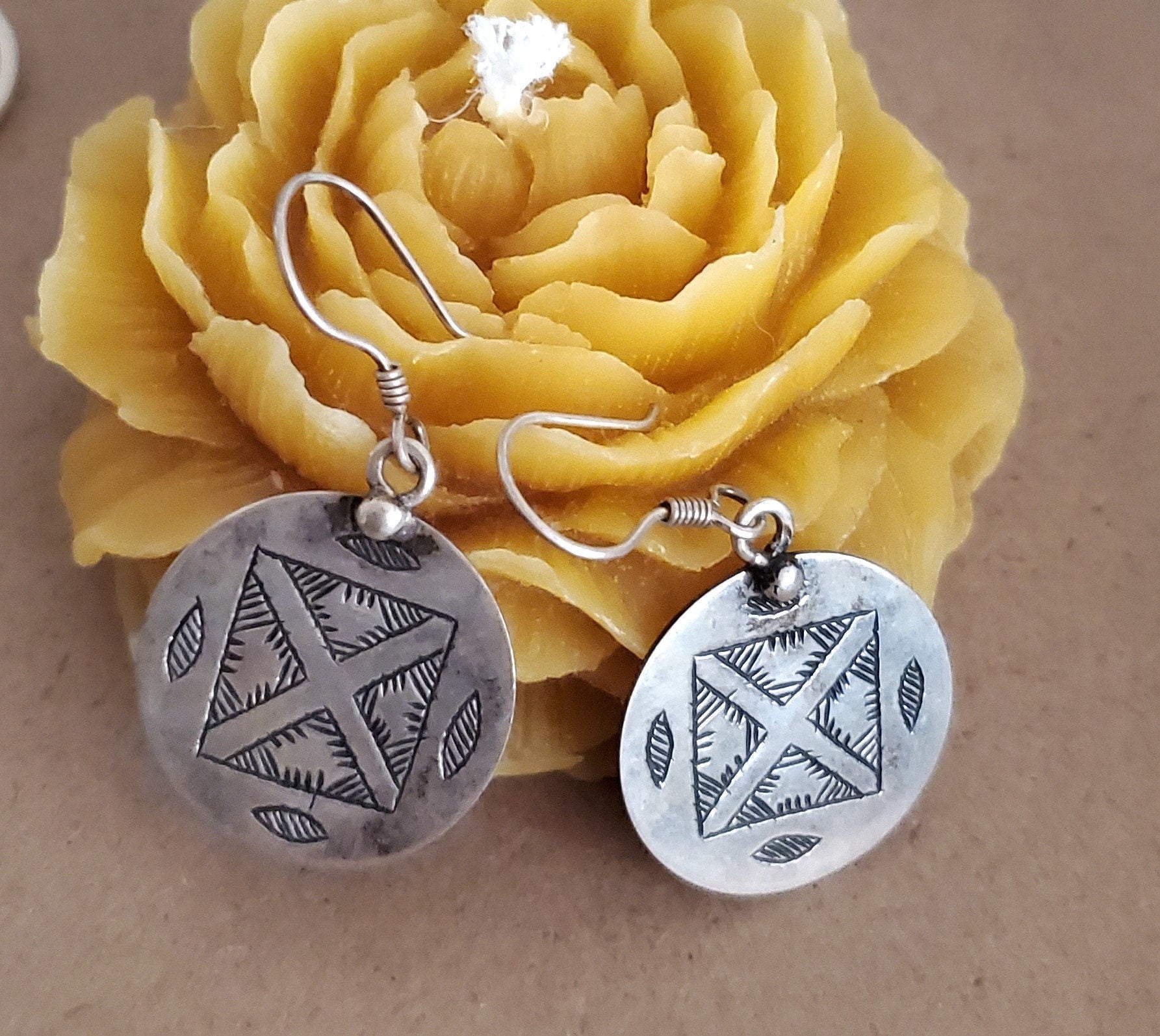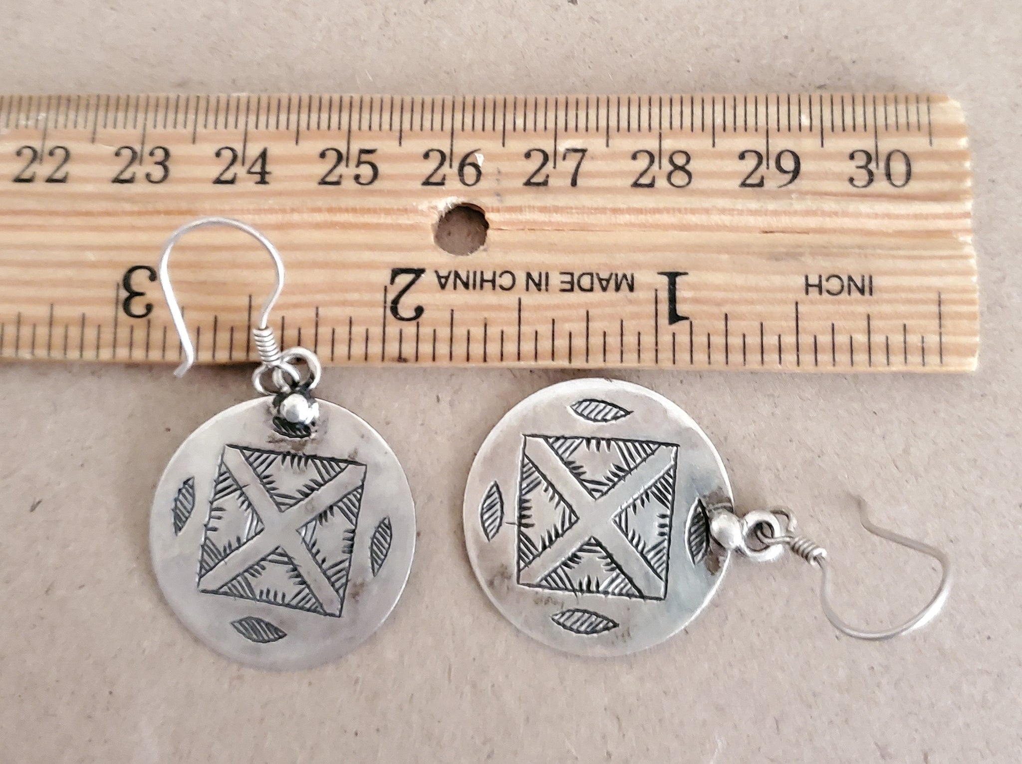 Moroccan Berber Sterling Silver Dangle Earrings This is a great authentic jewelry from Morocco. Each earring measures just over 2" .5 long and just under 1‘‘ wide./ 8.gr The workmanship is wonderful .These earrings were hand made sterling silver 925 if you have any questions - Feel free to contact me. . Thank you for visiting my shop All my jewelry has been collected over 20 years ago.I will be listing more pieces shortly as I am constantly always working on posting more. piece to add to the collection.I ship all over the world and price includes a tracking service........africanbazaarus.com