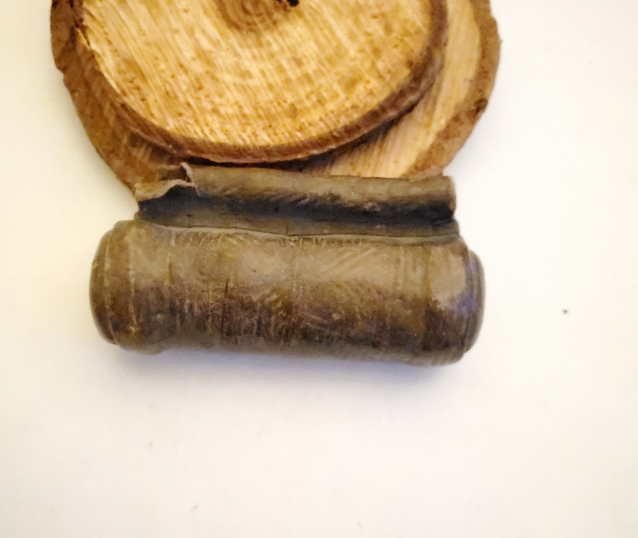 an antique Ethiopian scroll which has been encased and sewn into a leather talisman amulet for the purpose of every day wearable protection, healing and blessings. Each protective amulet also known as a Kitabe was made specifically for an individual for a focused reason and usually the scroll was made of goatskin which had been worked into parchment like material called vellum which was rolled or folded before being wrapped and sewn into the leather casing. Usually the writing on the scroll is in handmade black and red paint or ink and is written in Ethiopic Ge'ez a language no longer used except for religious purposes. The scrolls were inscribed by religious scribes, dabtaras (unordained clerics) or priests and contain Christian oriented prayers and / or stories or pertinent text from Ethiopian Christian Manuscripts / Bibles sometimes pictures are added.......africanbazaarus.com