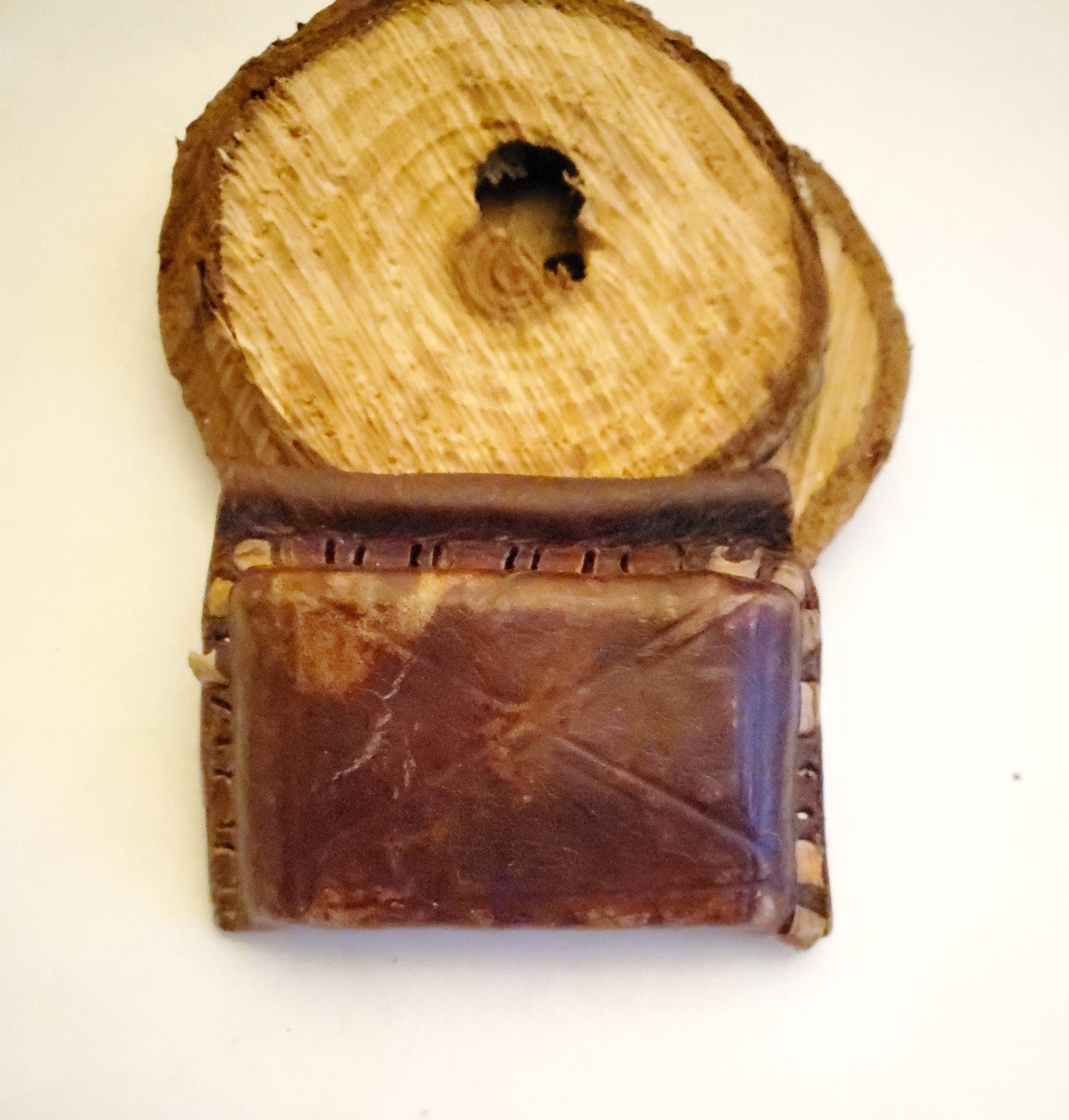 an antique Ethiopian scroll which has been encased and sewn into a leather talisman amulet for the purpose of every day wearable protection, healing and blessings. Each protective amulet also known as a Kitabe was made specifically for an individual for a focused reason and usually the scroll was made of goatskin which had been worked into parchment like material called vellum which was rolled or folded before being wrapped and sewn into the leather casing. Usually the writing on the scroll is in handmade black and red paint or ink and is written in Ethiopic Ge'ez a language no longer used except for religious purposes. The scrolls were inscribed by religious scribes, dabtaras (unordained clerics) or priests and contain Christian oriented prayers and / or stories or pertinent text from Ethiopian Christian Manuscripts / Bibles sometimes pictures are added.......africanbazaarus.com