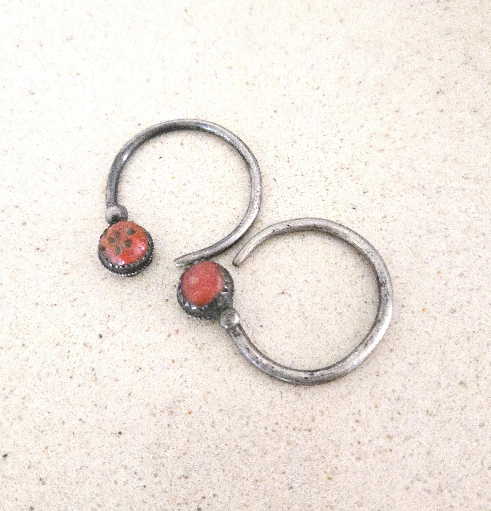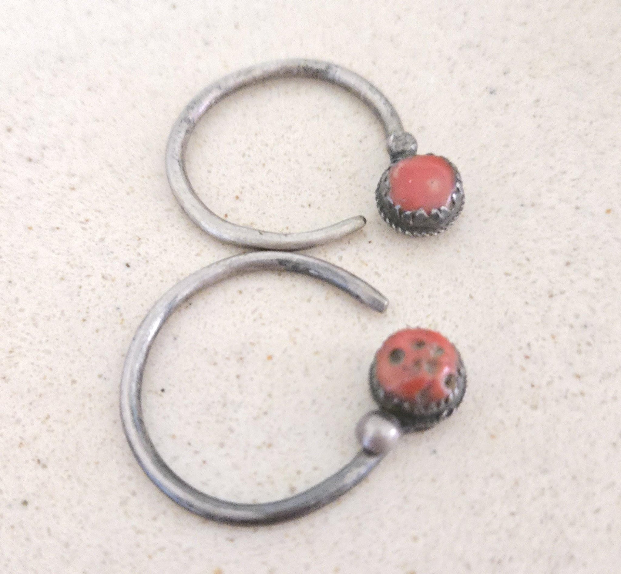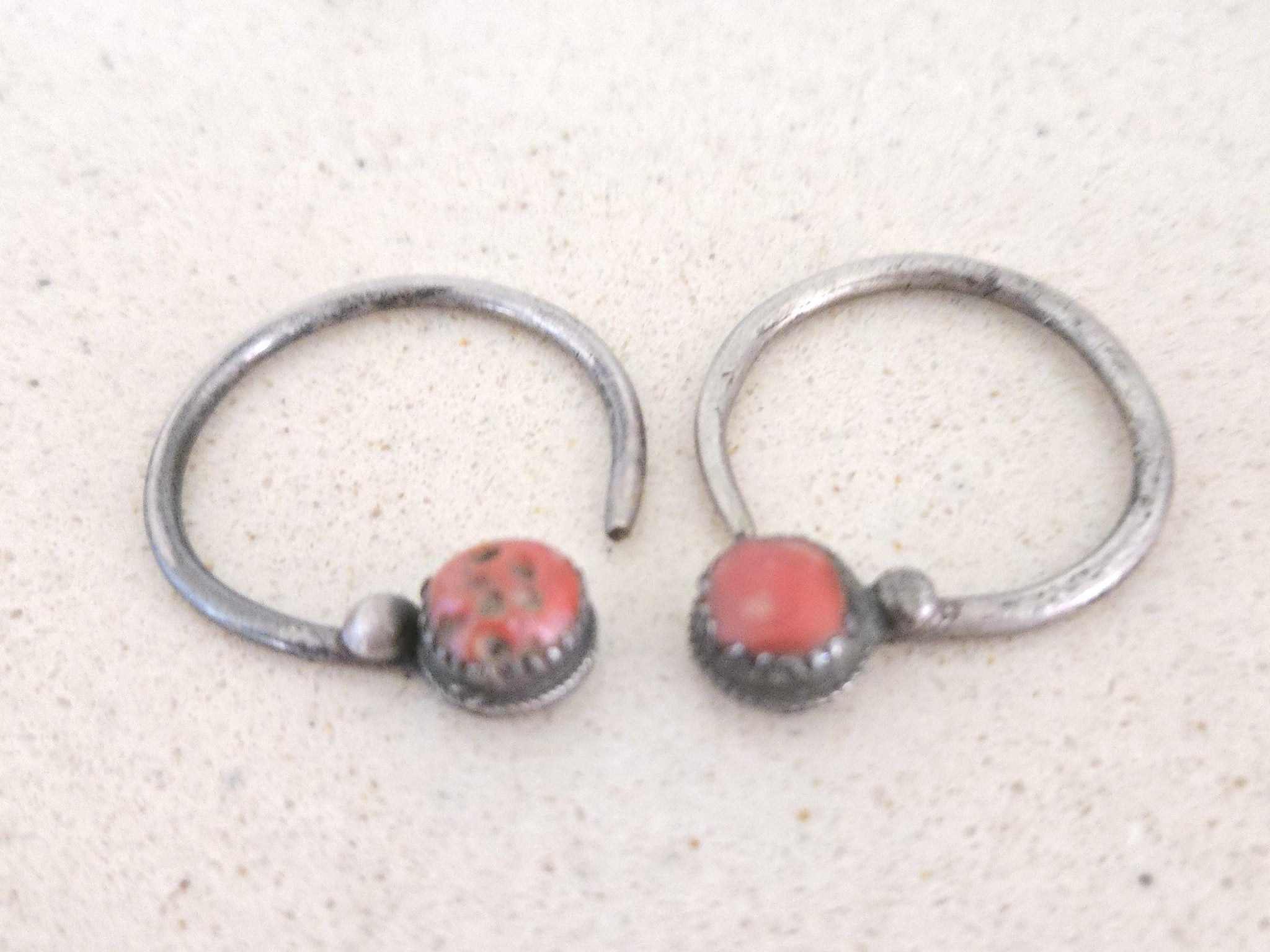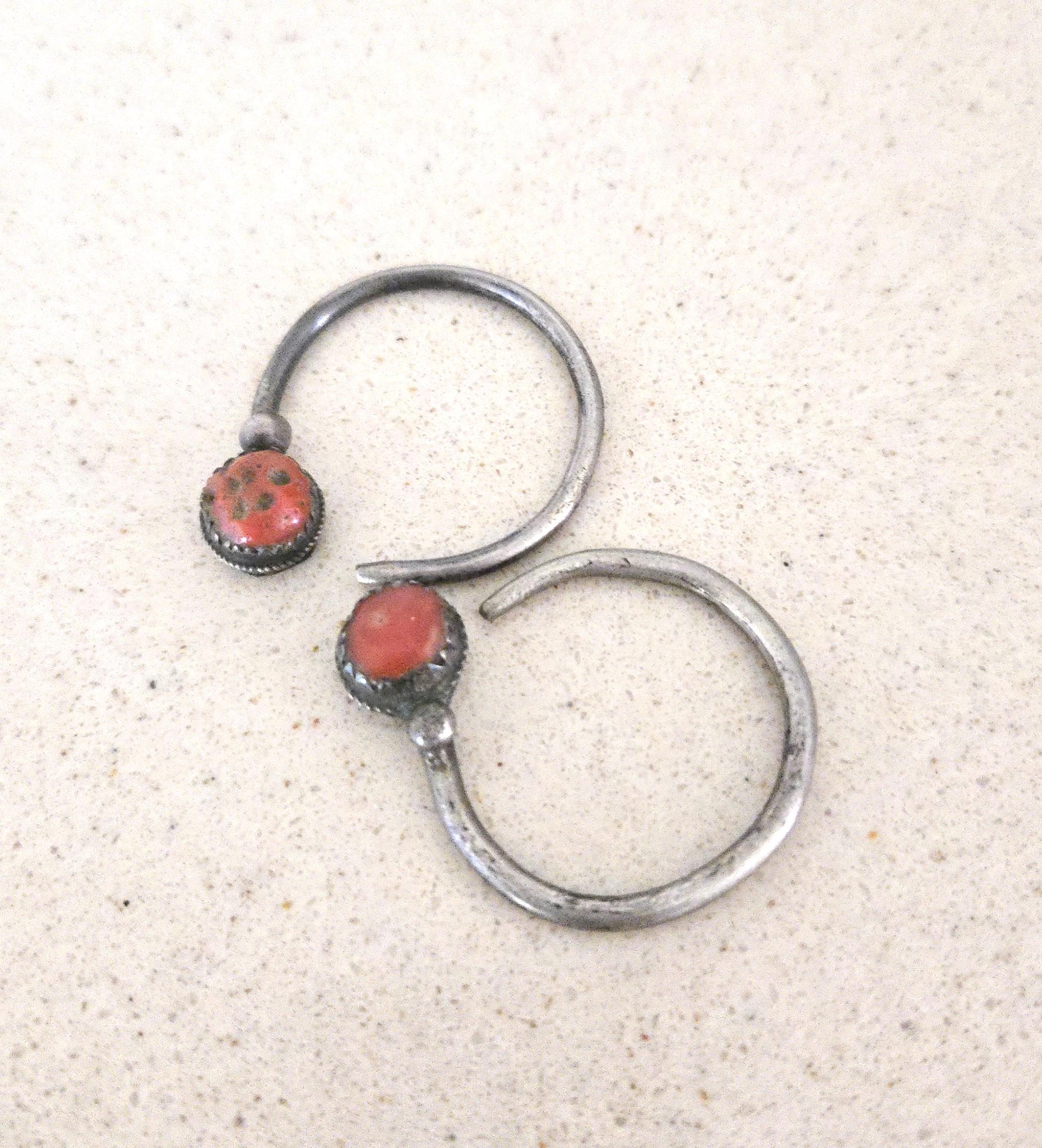 Antique Kabyle Sterling Silver Coral Earrings: Berber Dangle Jewelry