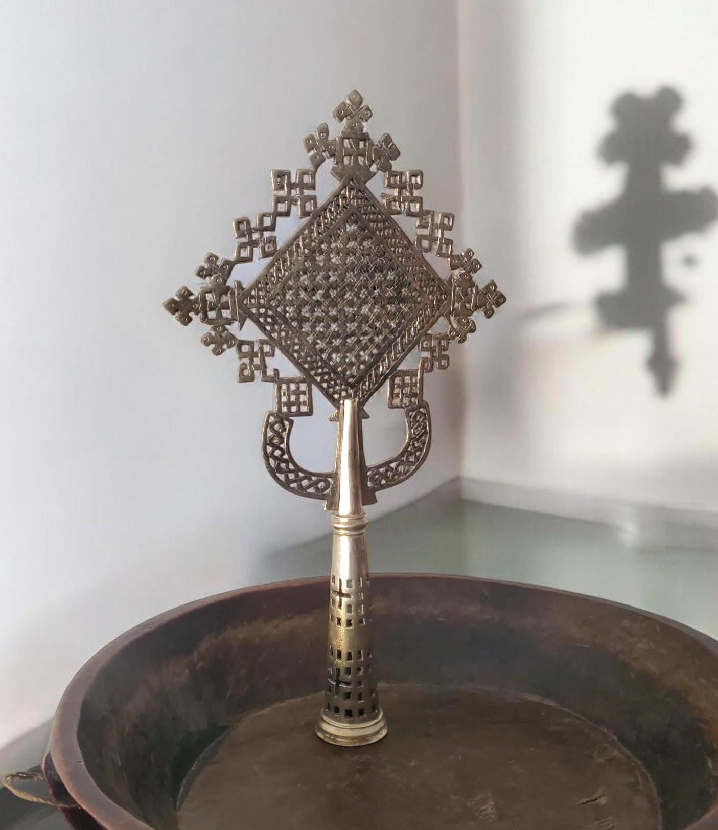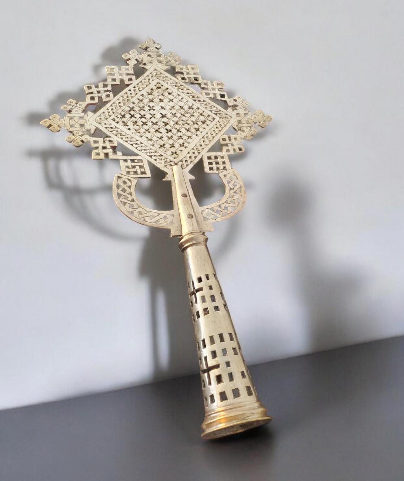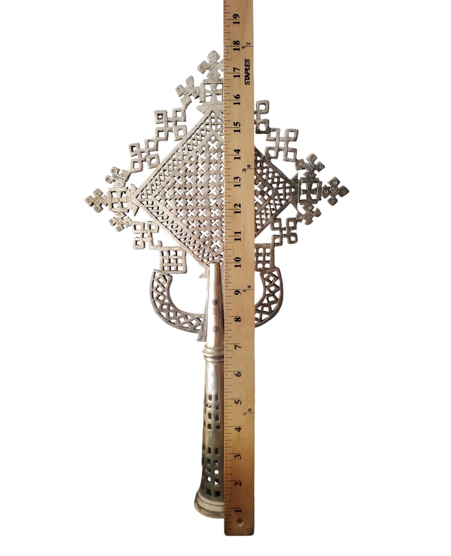 Handmade Ethiopian Orthodox Nickel Cross: Large Coptic Processional Cross