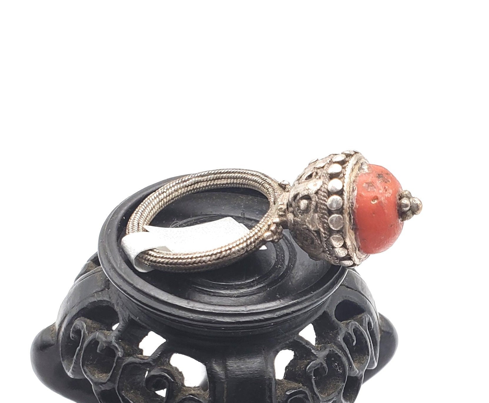 Antique Bawsani Yemen Silver Red Coral Ring size 8 Yemen tribal, tribal jewelry, Hand Crafted Silver, Yemen Jewelry, filigree Jewelry